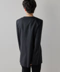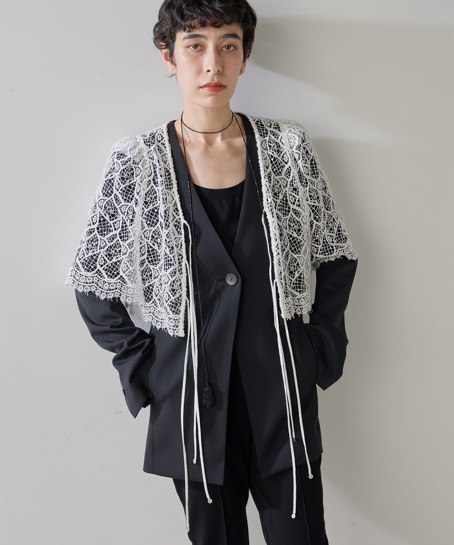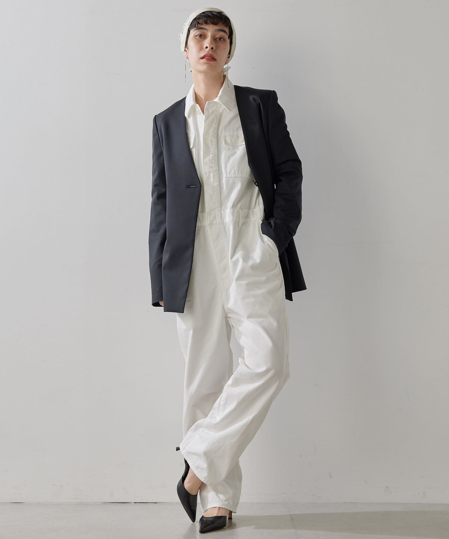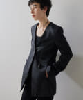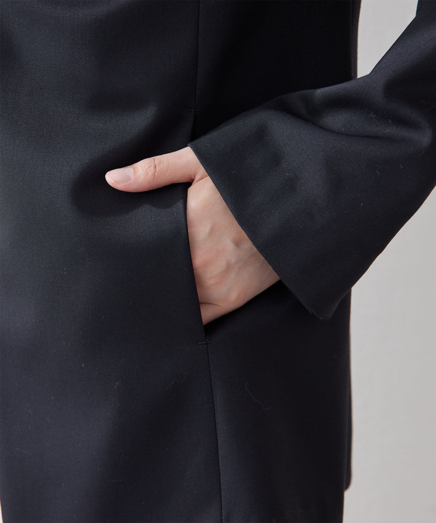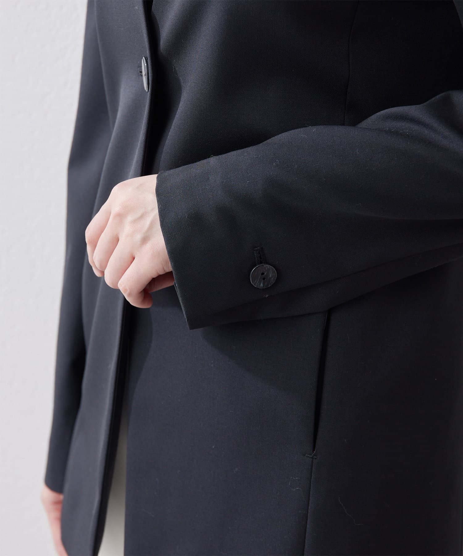 ■ノーカラーがすっきりとした印象のミニマルなジャケット。