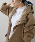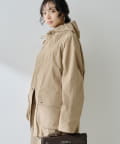 ■綿のような風合いのポリエステル素材を使用したフードブルゾン。