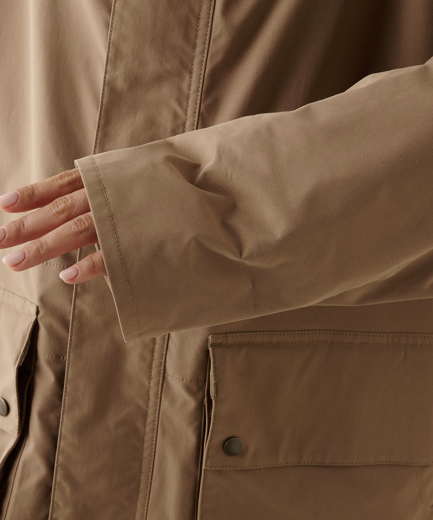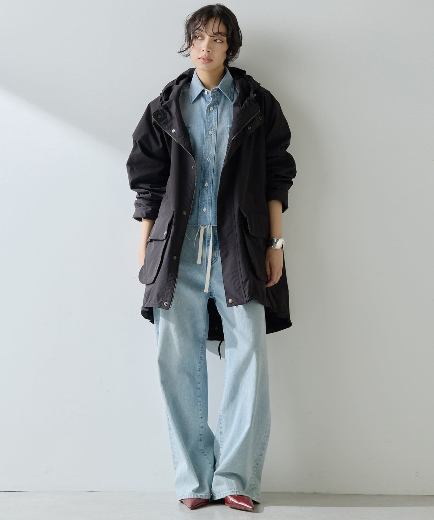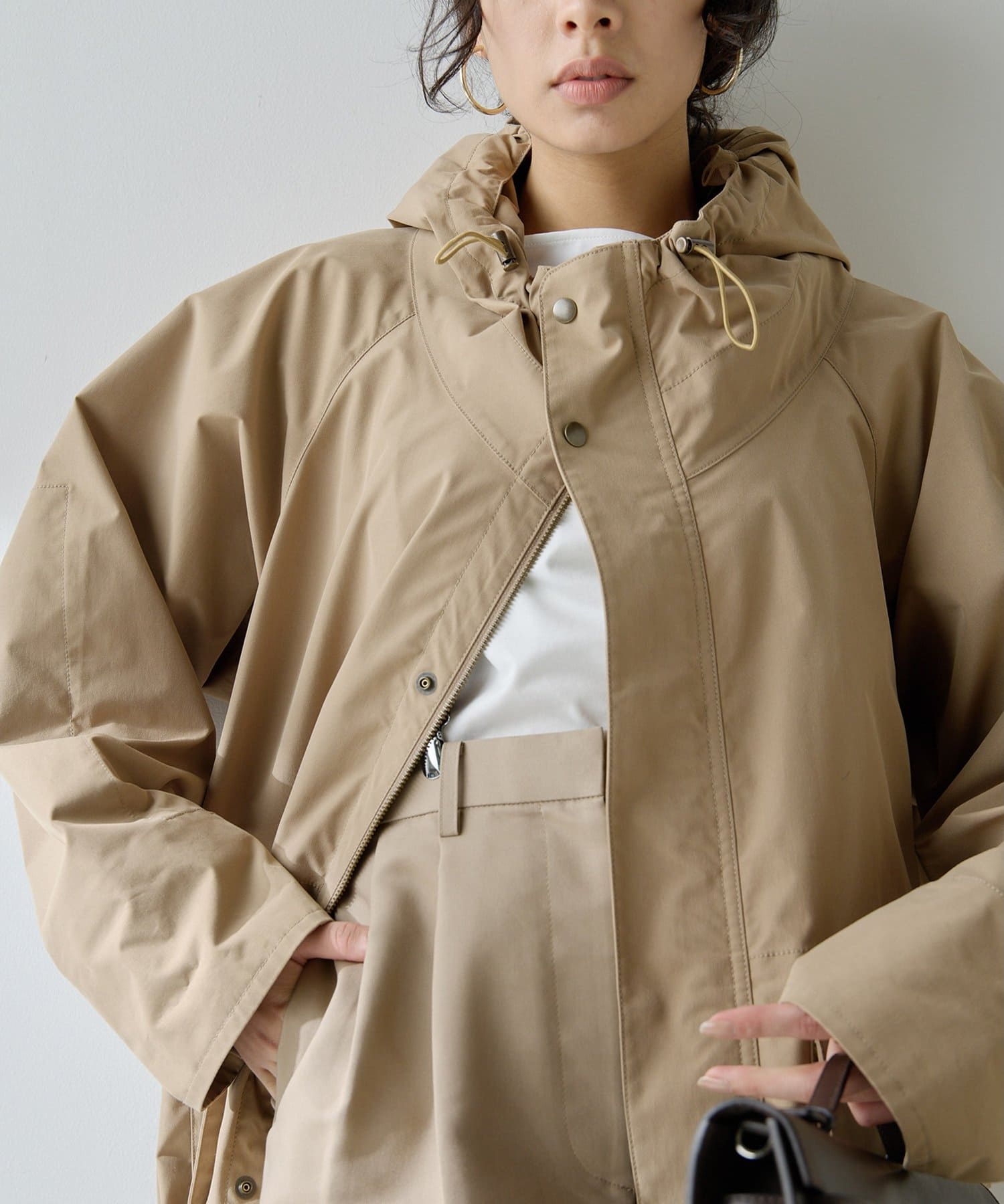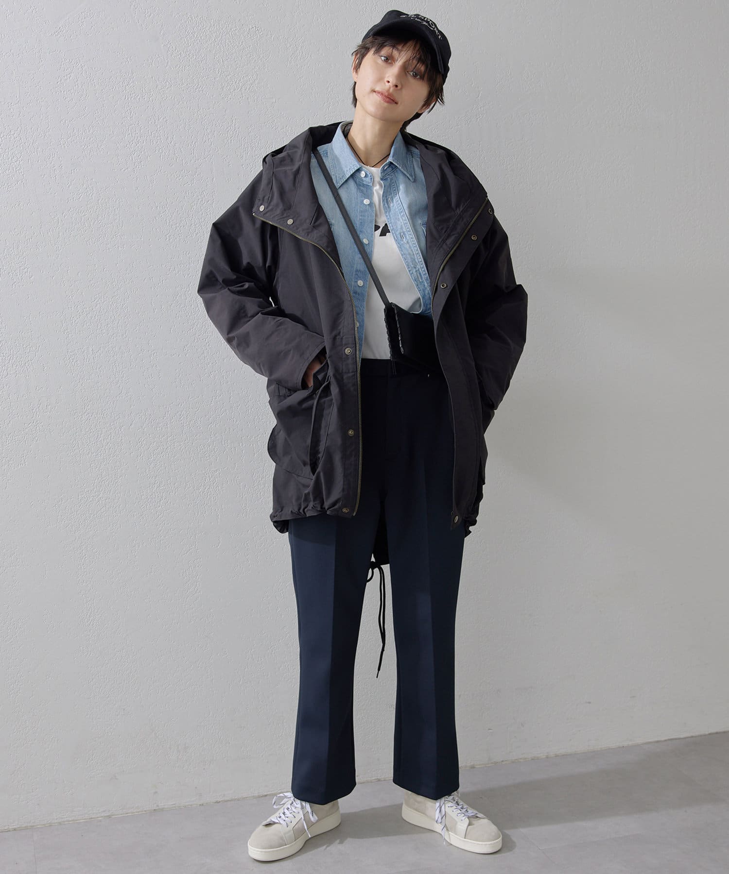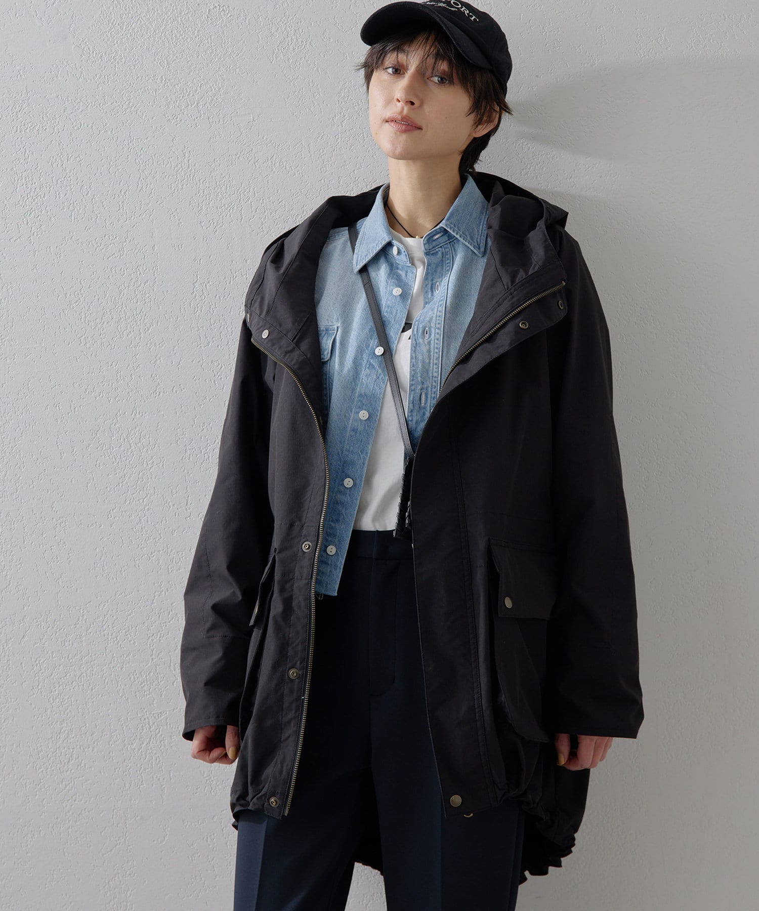 ■後ろがやや長めのシルエットが腰周りをカバーし、裾のコードでシルエットをアレンジ可能。