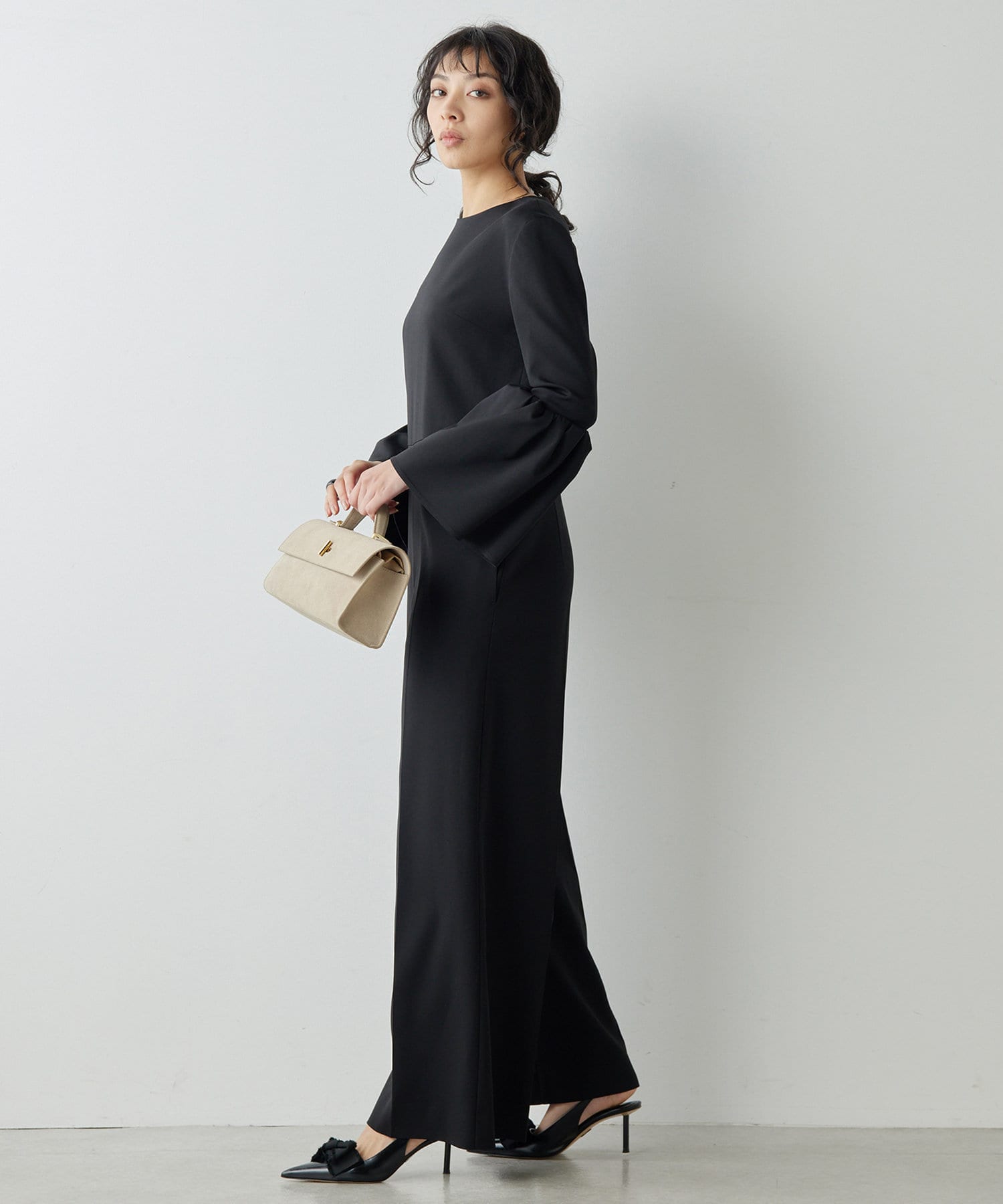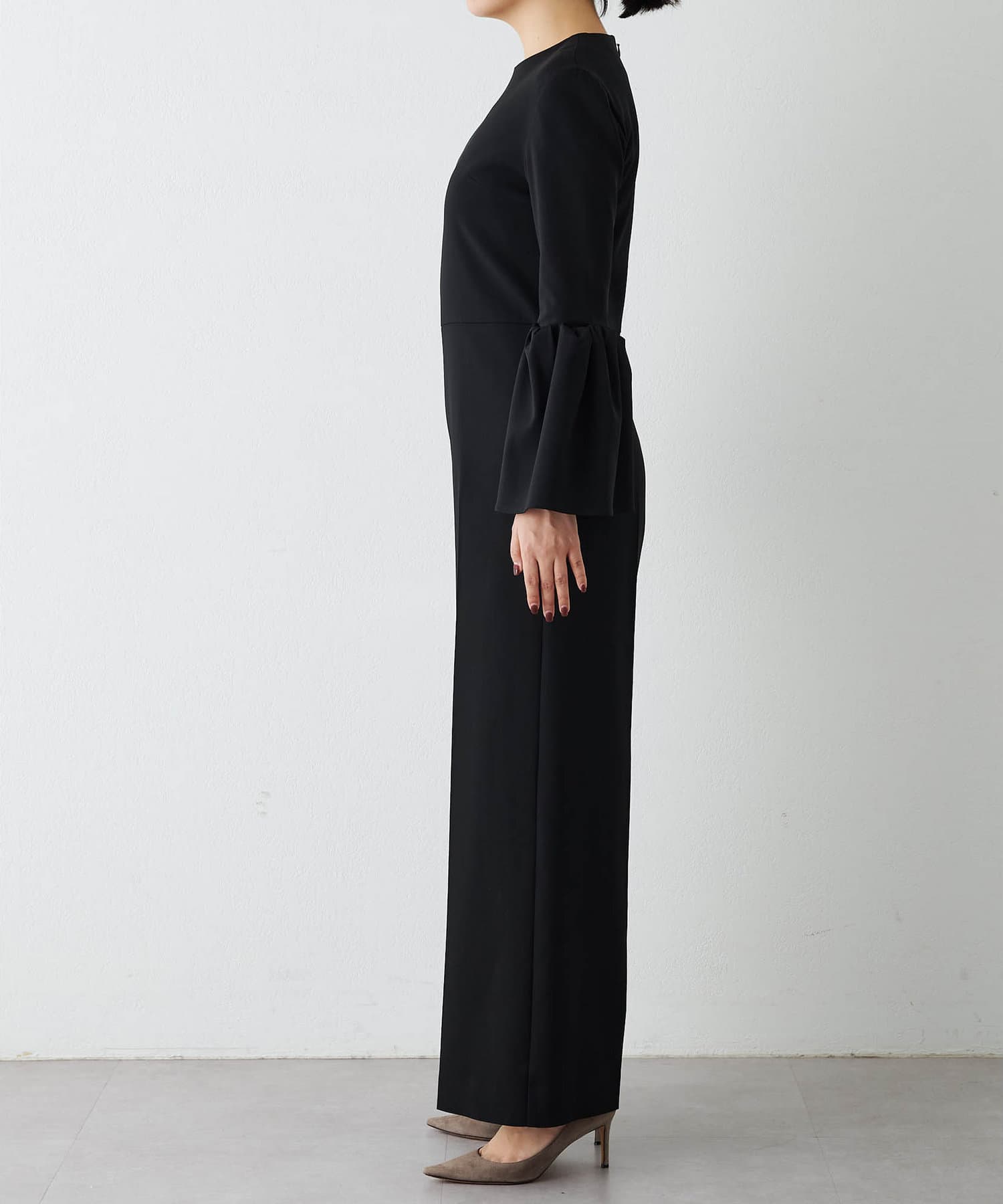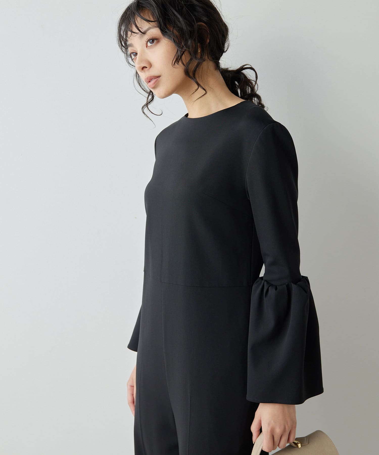 スリーブデザインが際立つ、ミニマルなオールインワン
