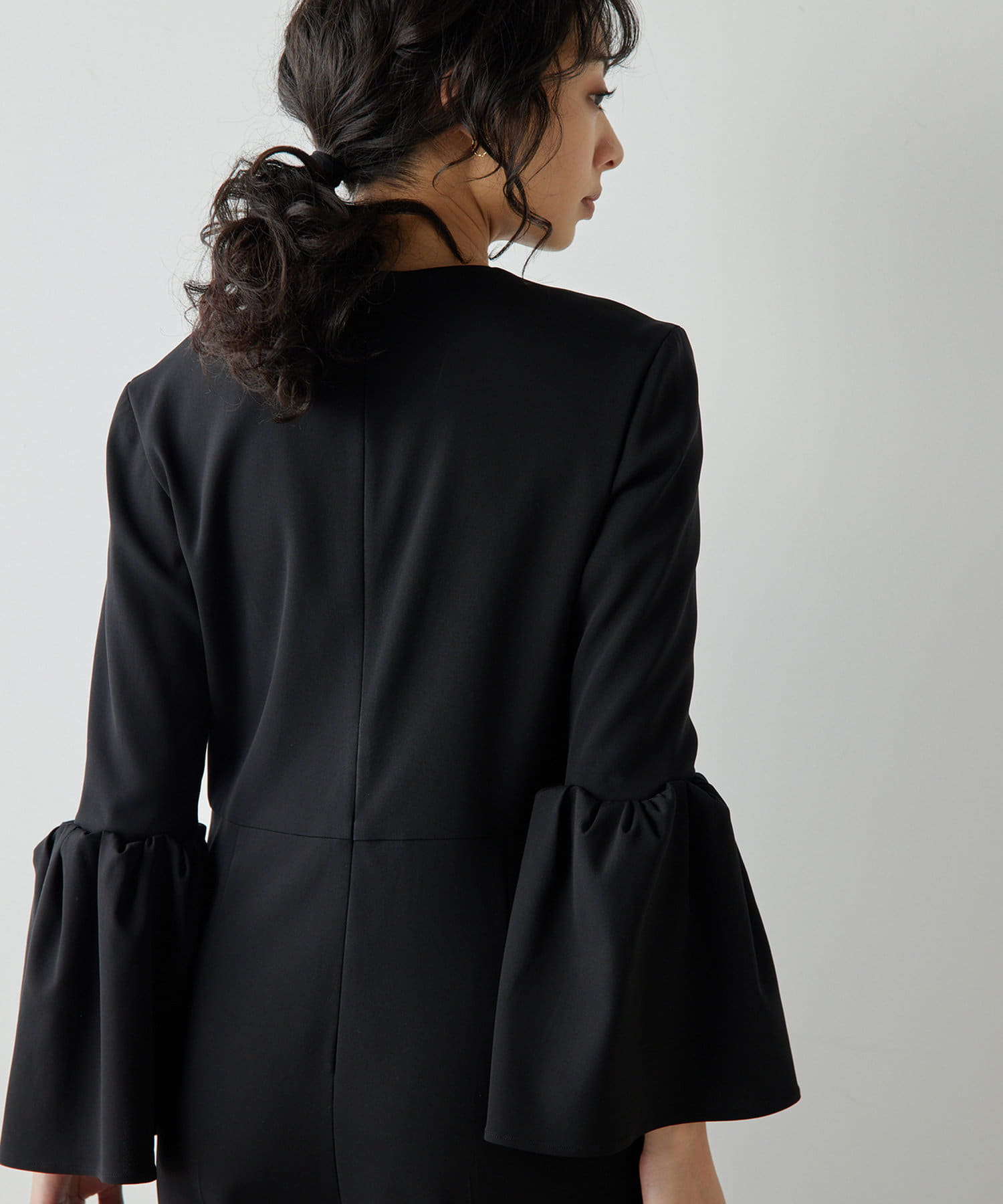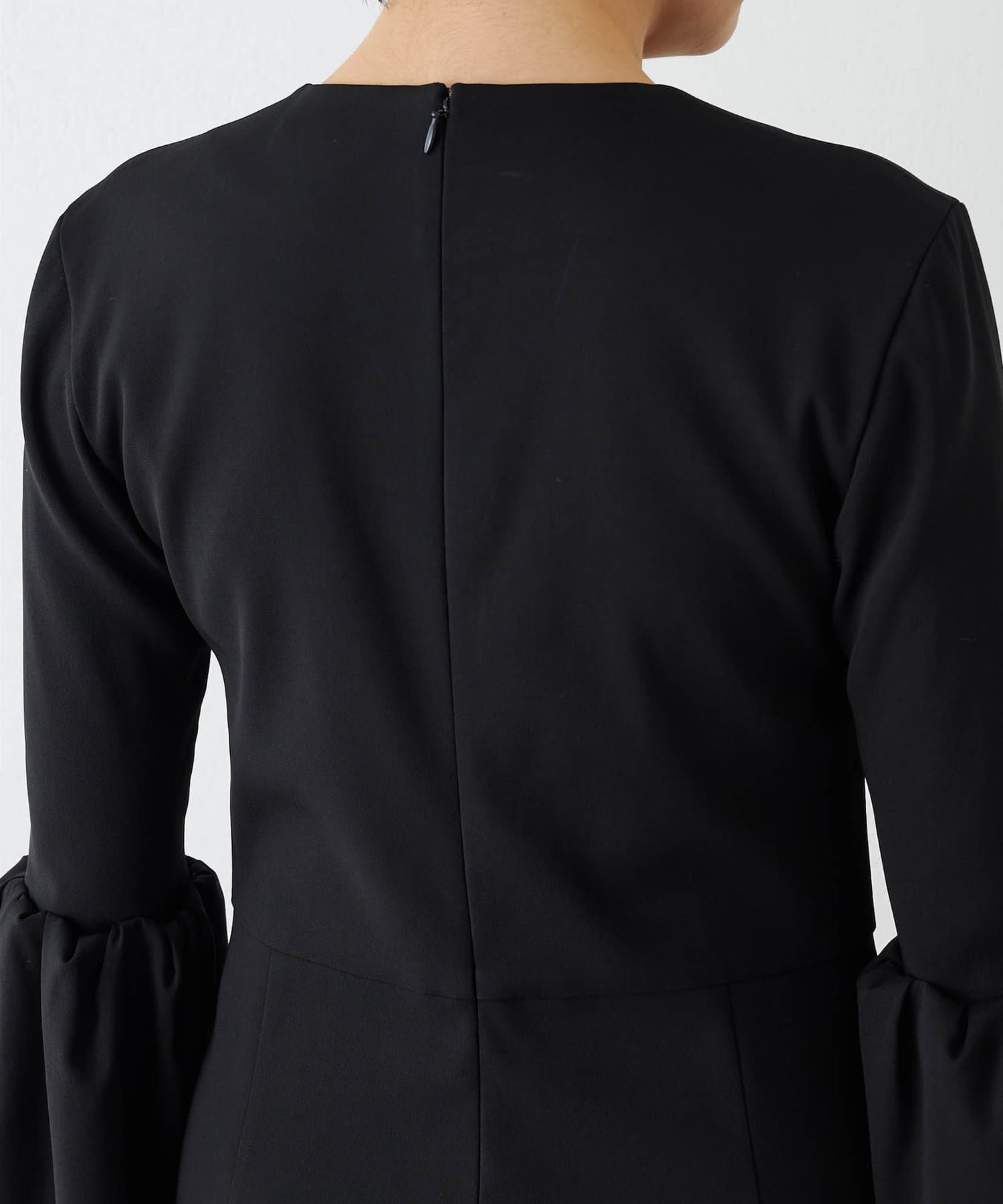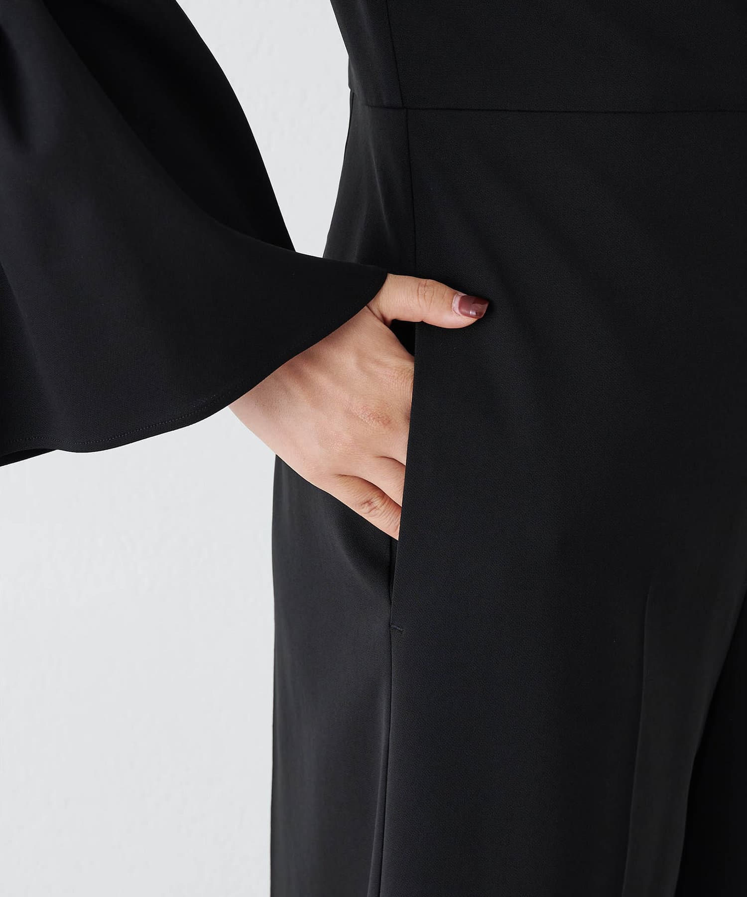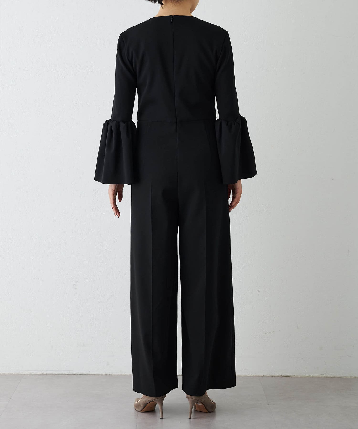 スリーブデザインが際立つ、ミニマルなオールインワン
