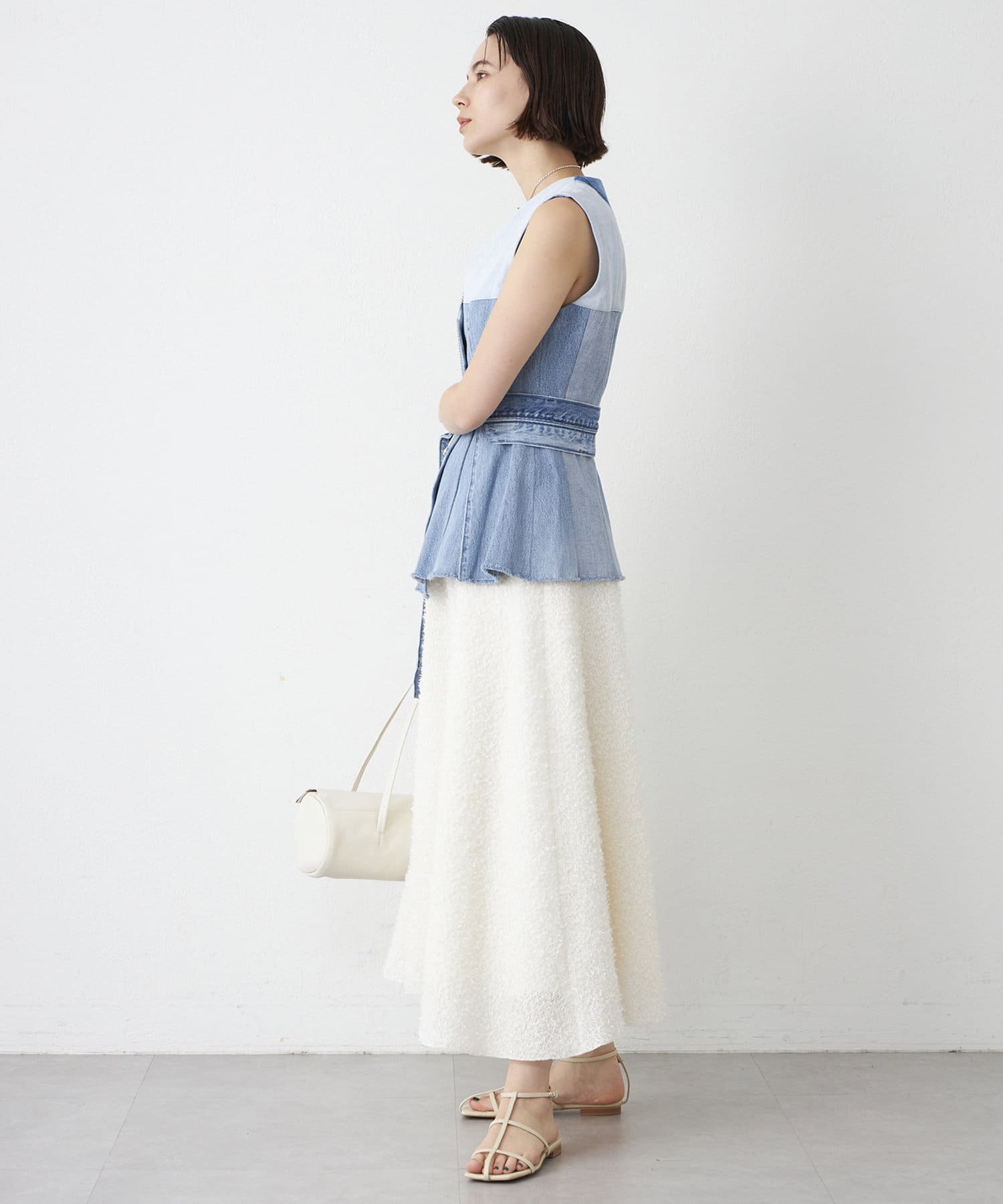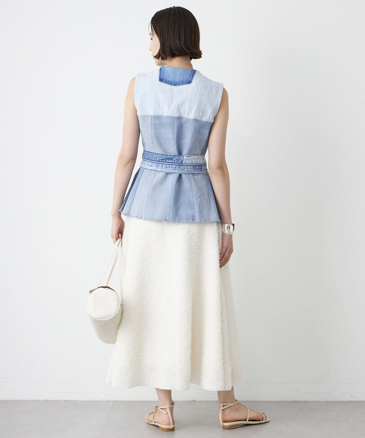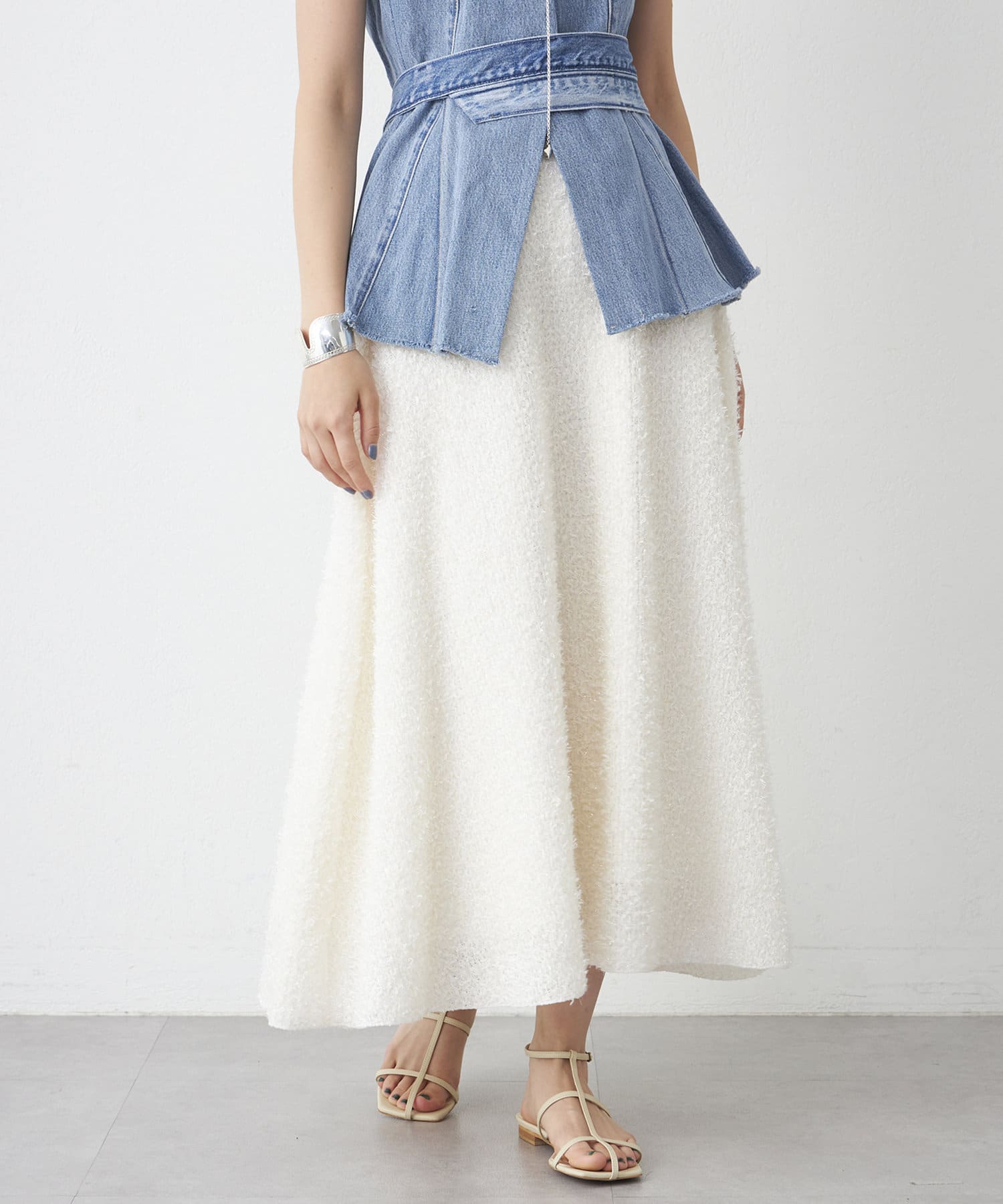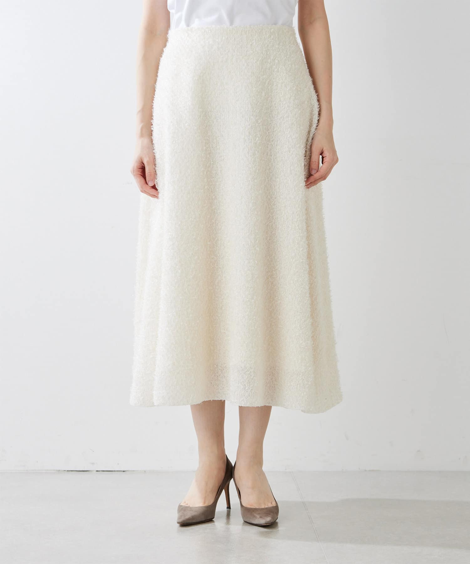 ■軽く華やかなツイード素材がポイントのフレアツイードスカート。