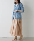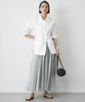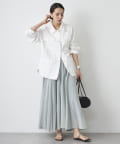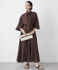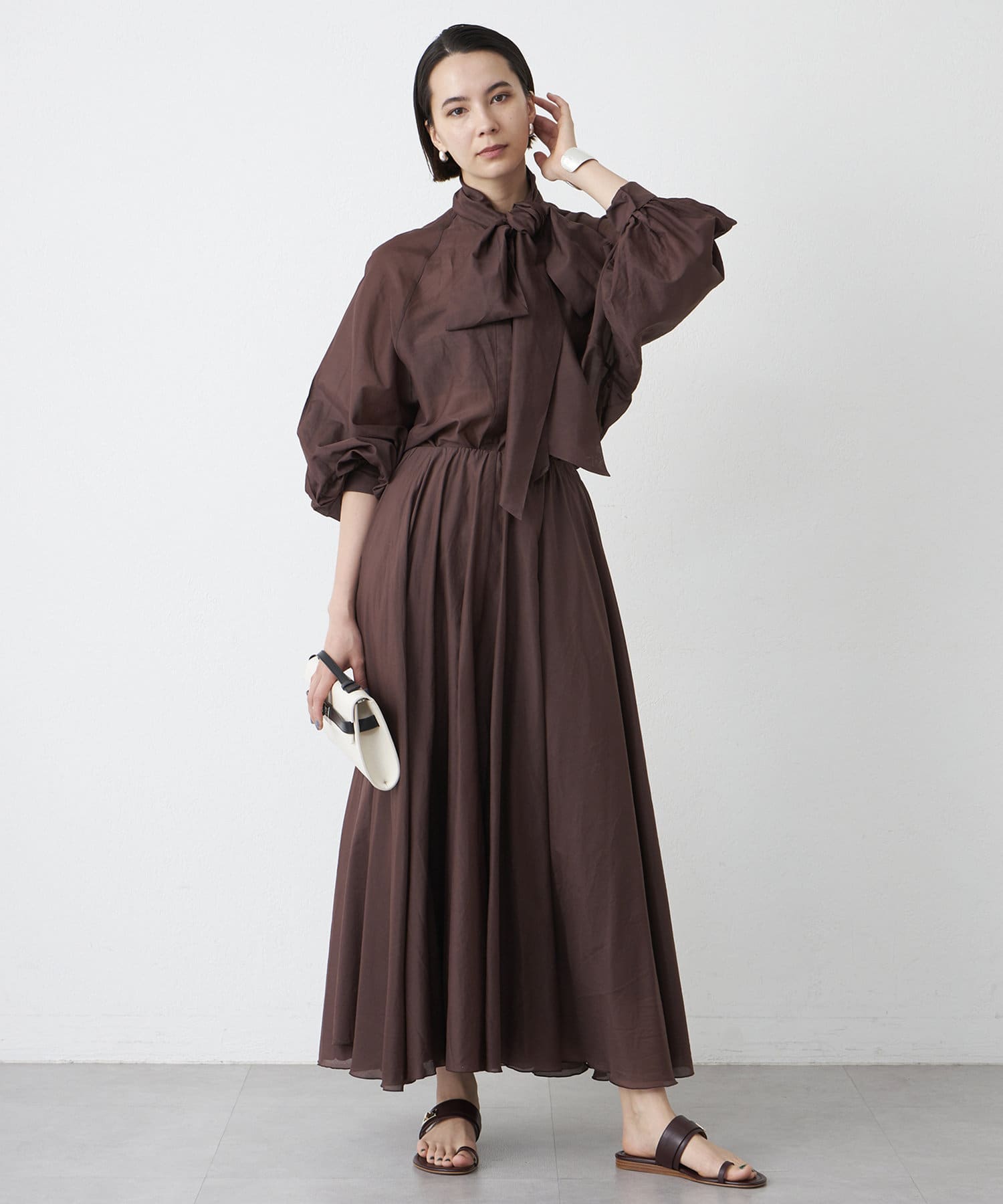 ■同素材のプルオーバーブラウス、ボウタイブラウスとのセットアップを楽しむのもおすすめ。