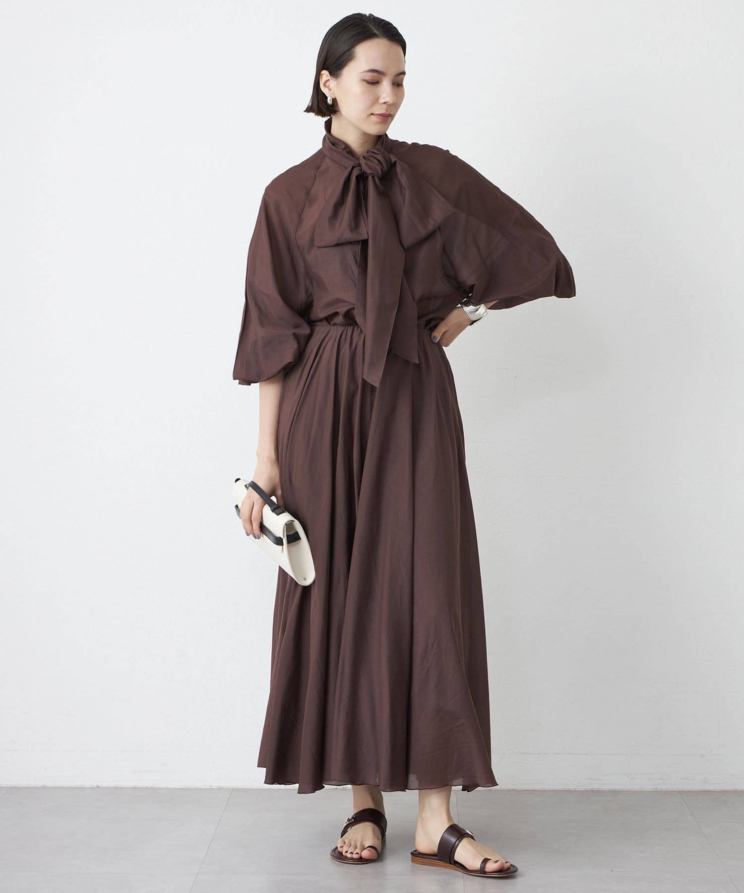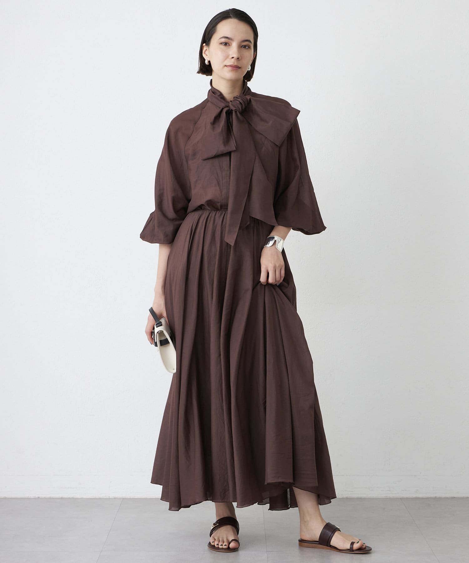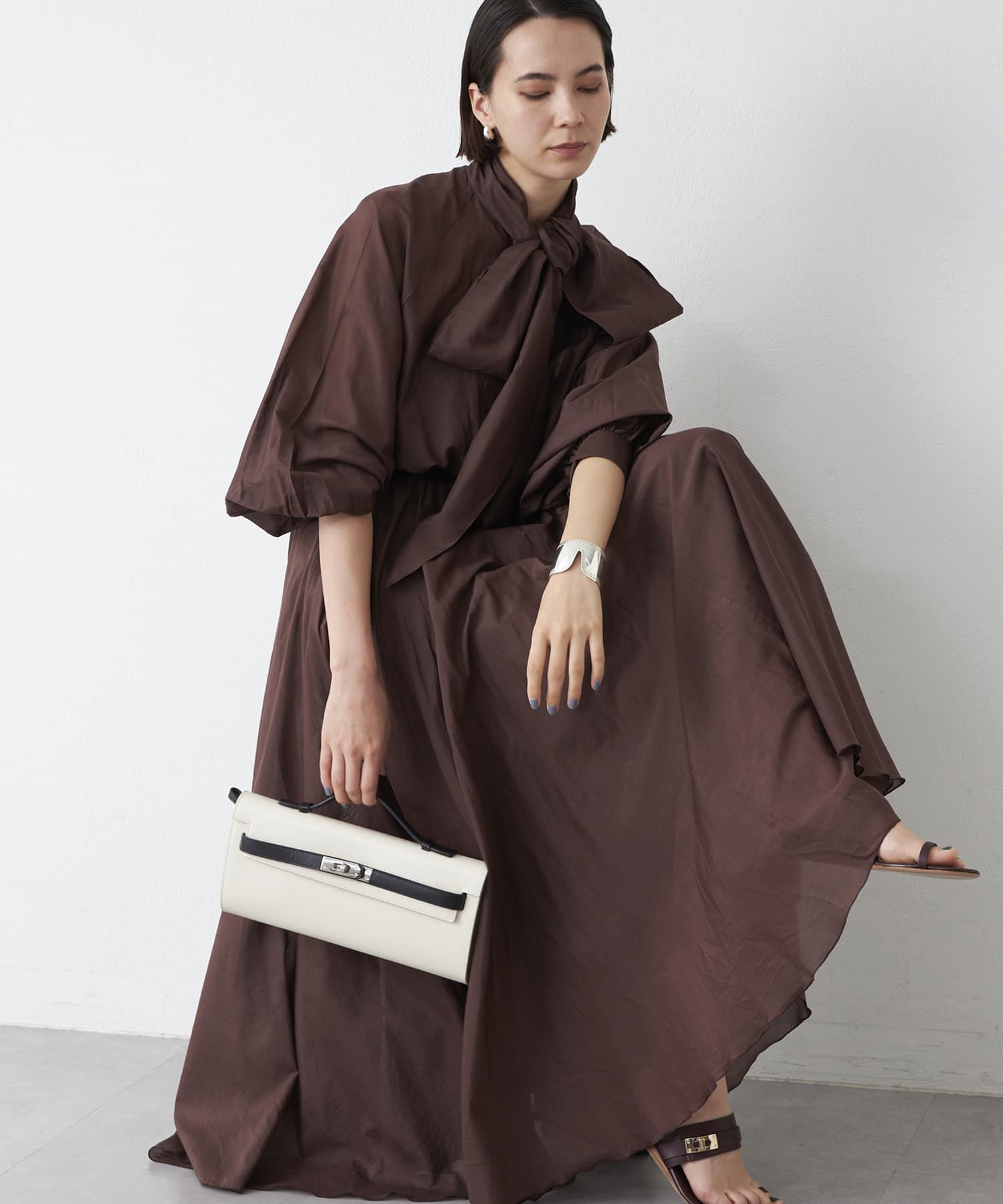 ■裾にたっぷりと分量を入れたフルレングスのシルエットが華やかさを演出。