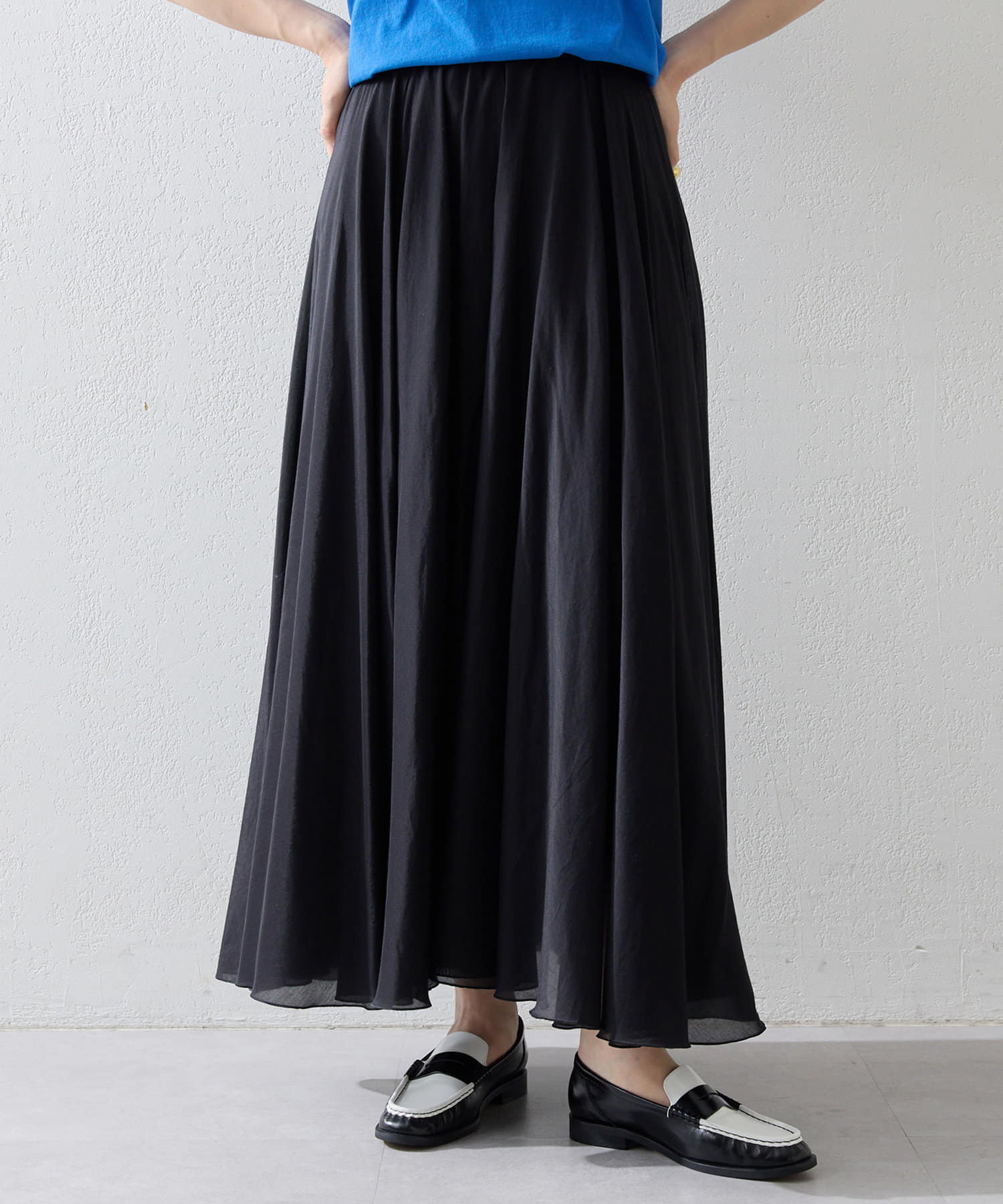 ■優しい光沢のあるシルクコットンで上品に仕上げたギャザースカート。