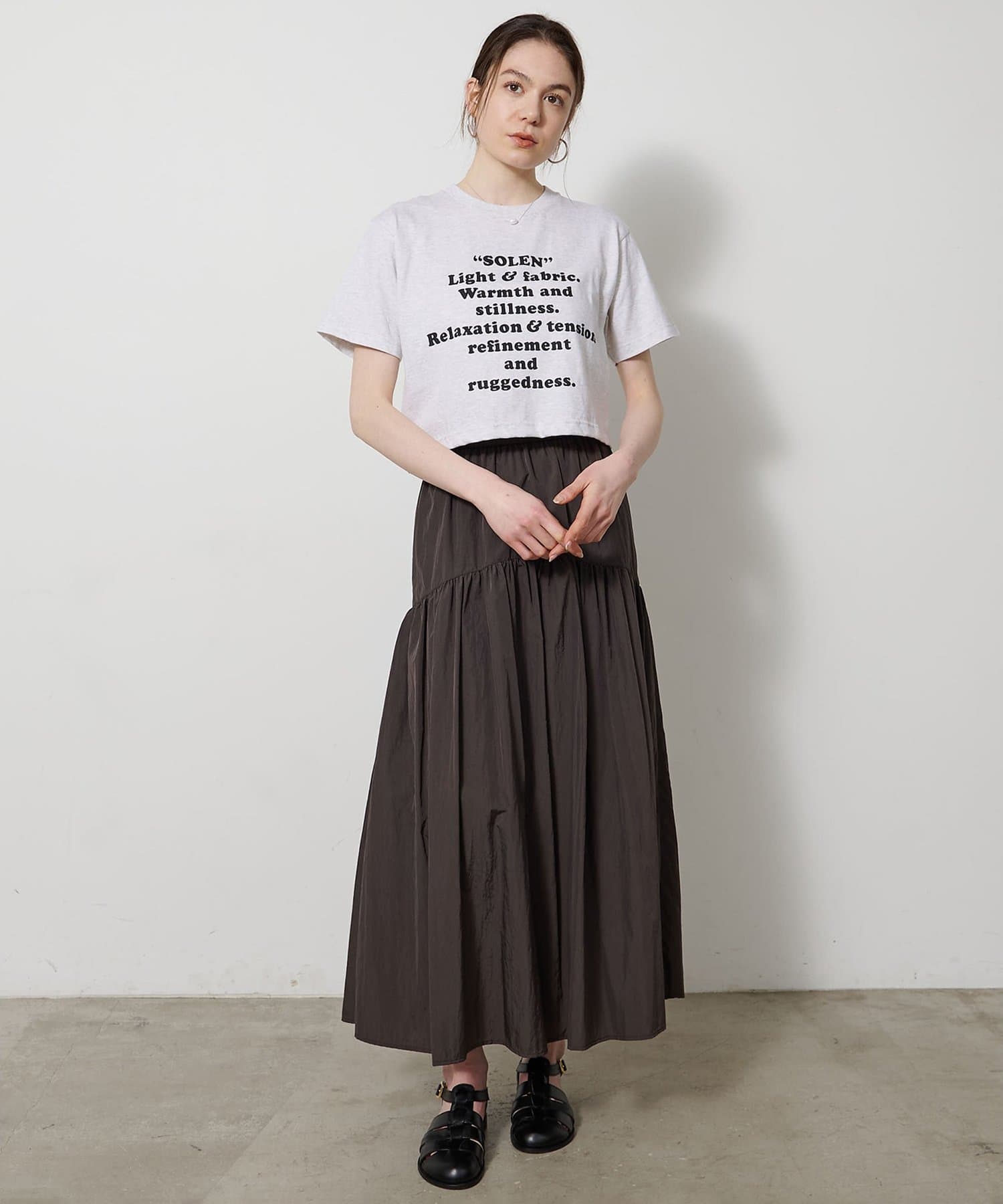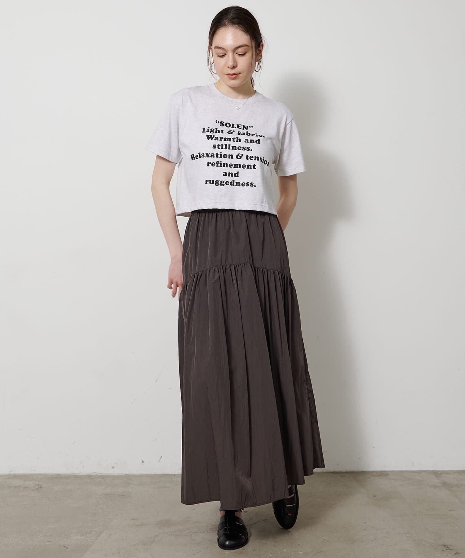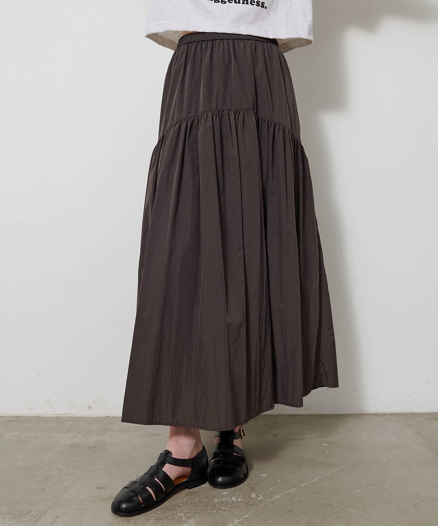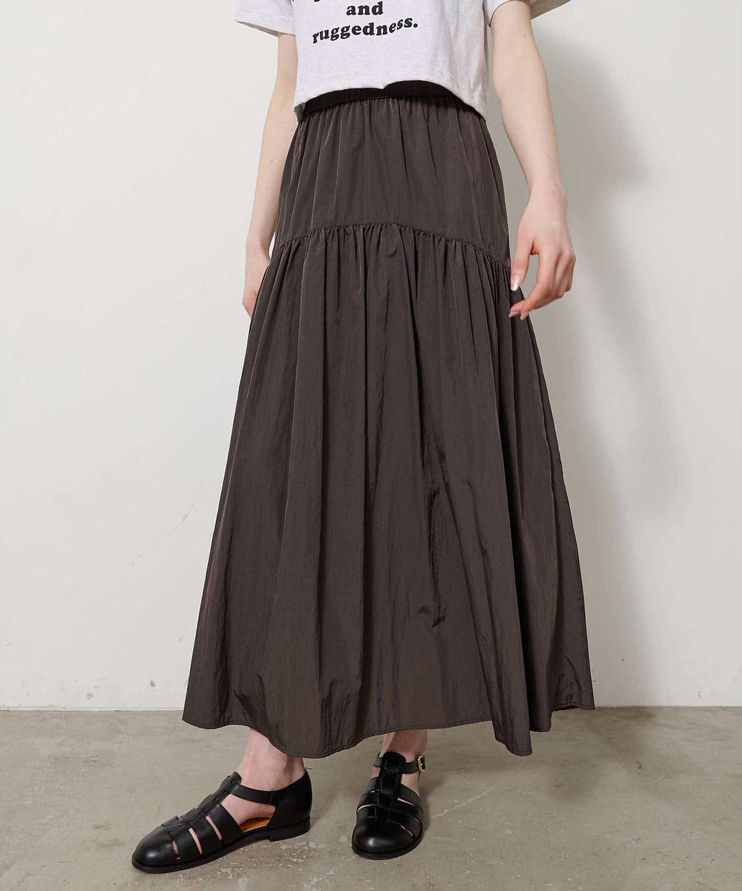 ■たっぷりとしたギャザーで分量をとった切り替えデザインスカート。