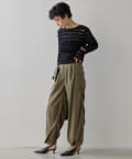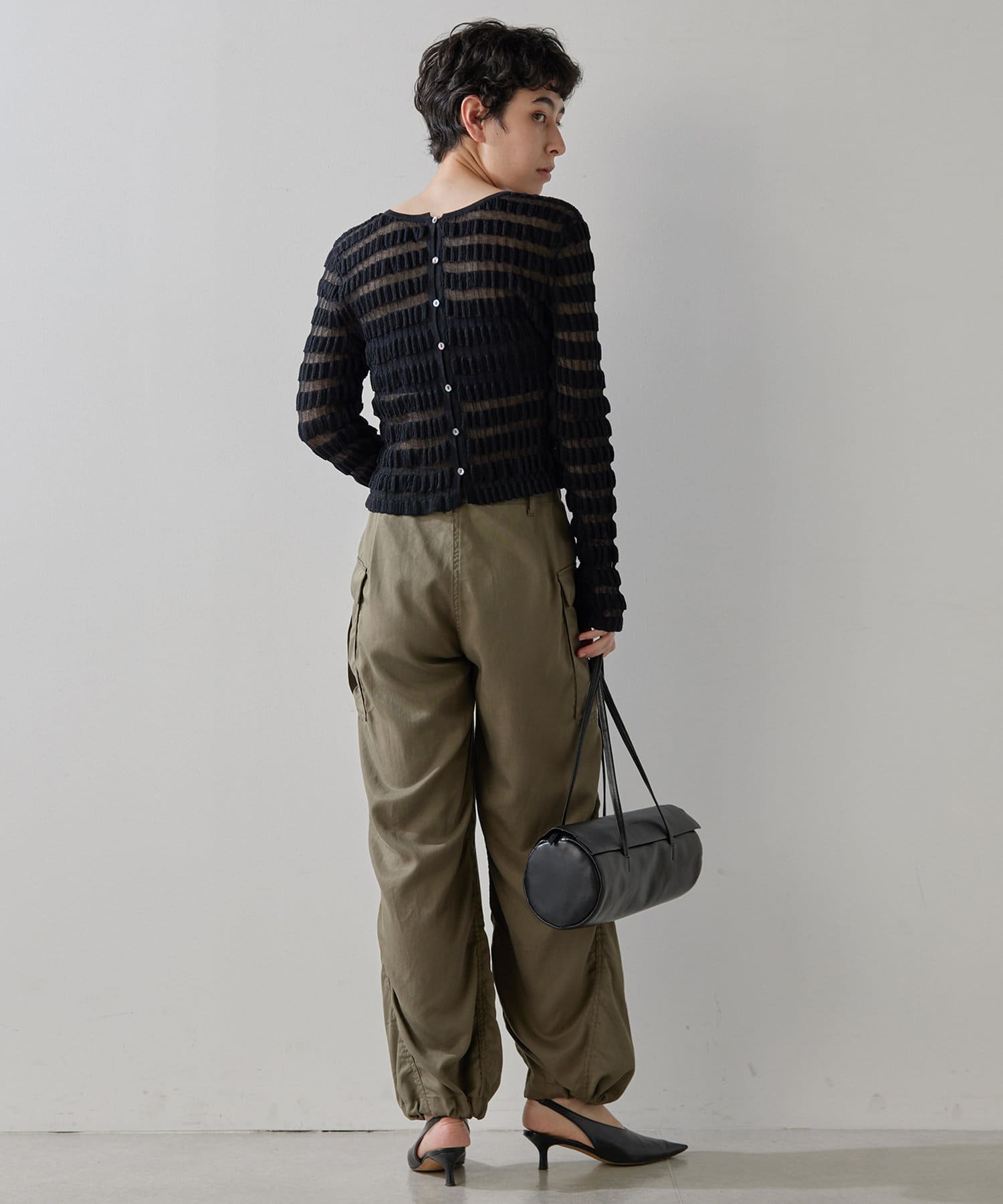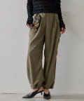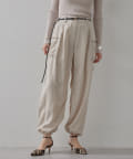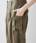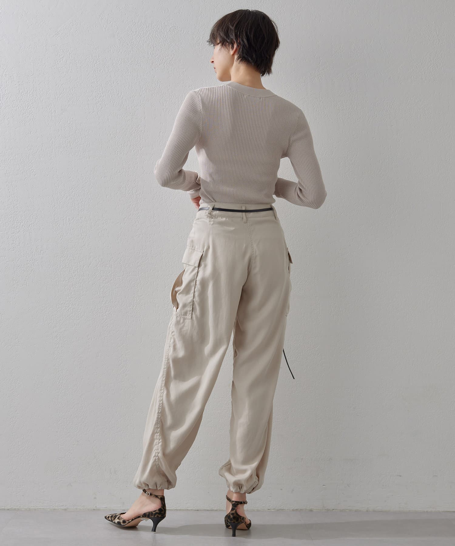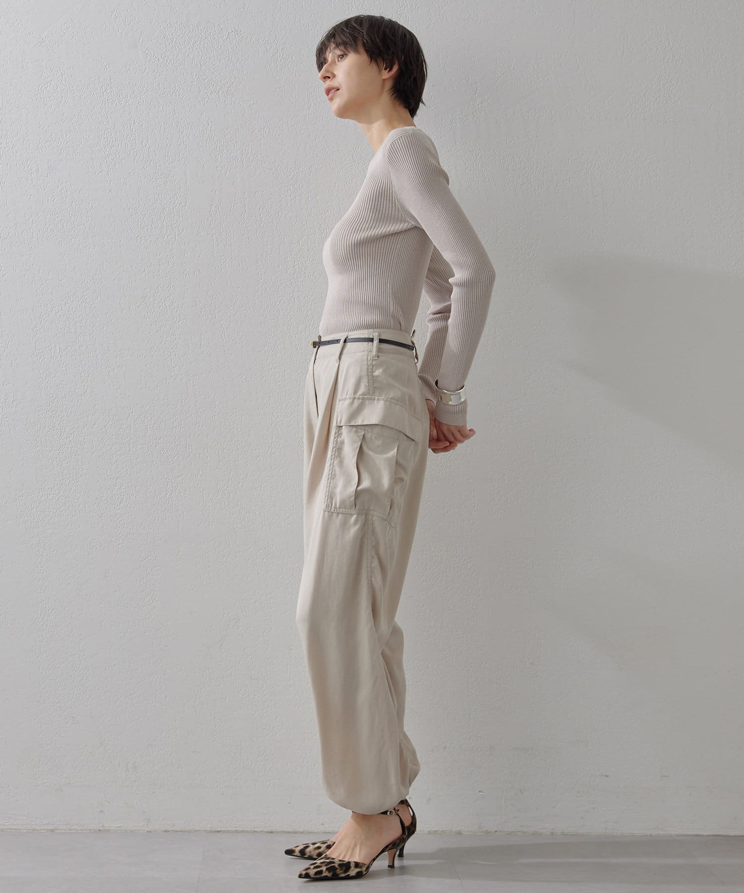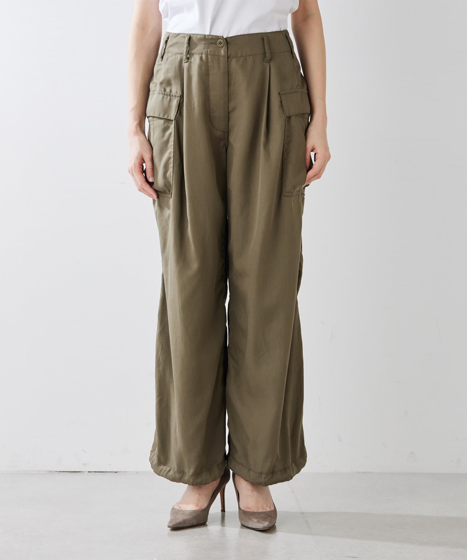 ■フェミニンな素材をあえてミリタリーデザインに落とし込んだカーゴパンツ。