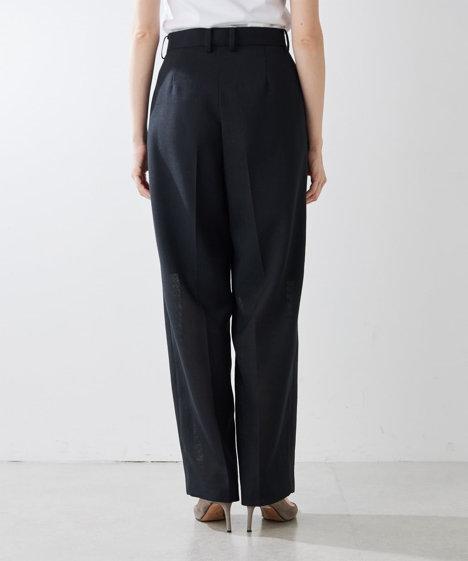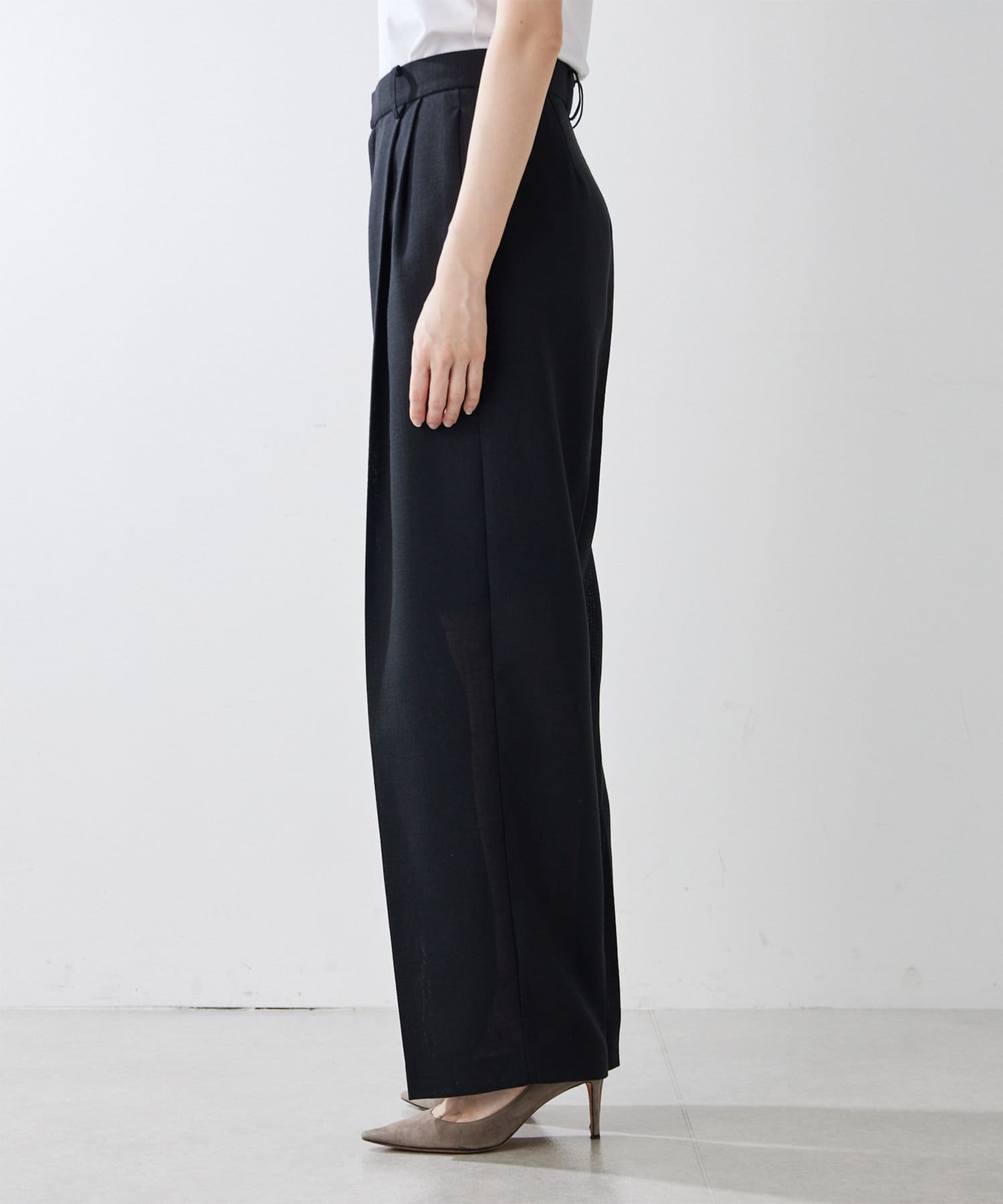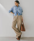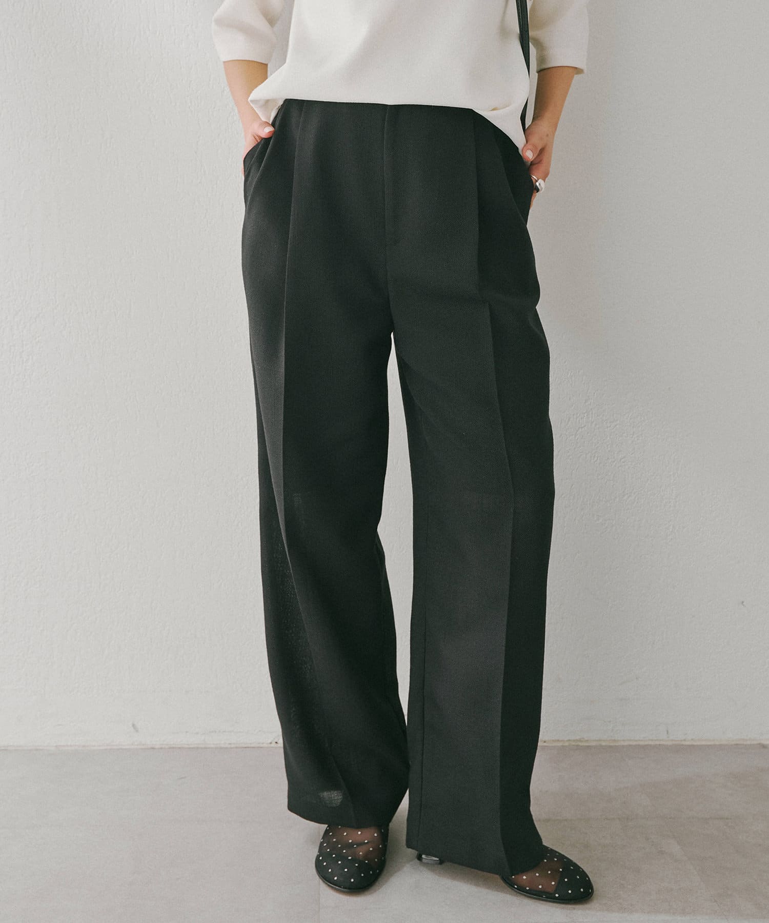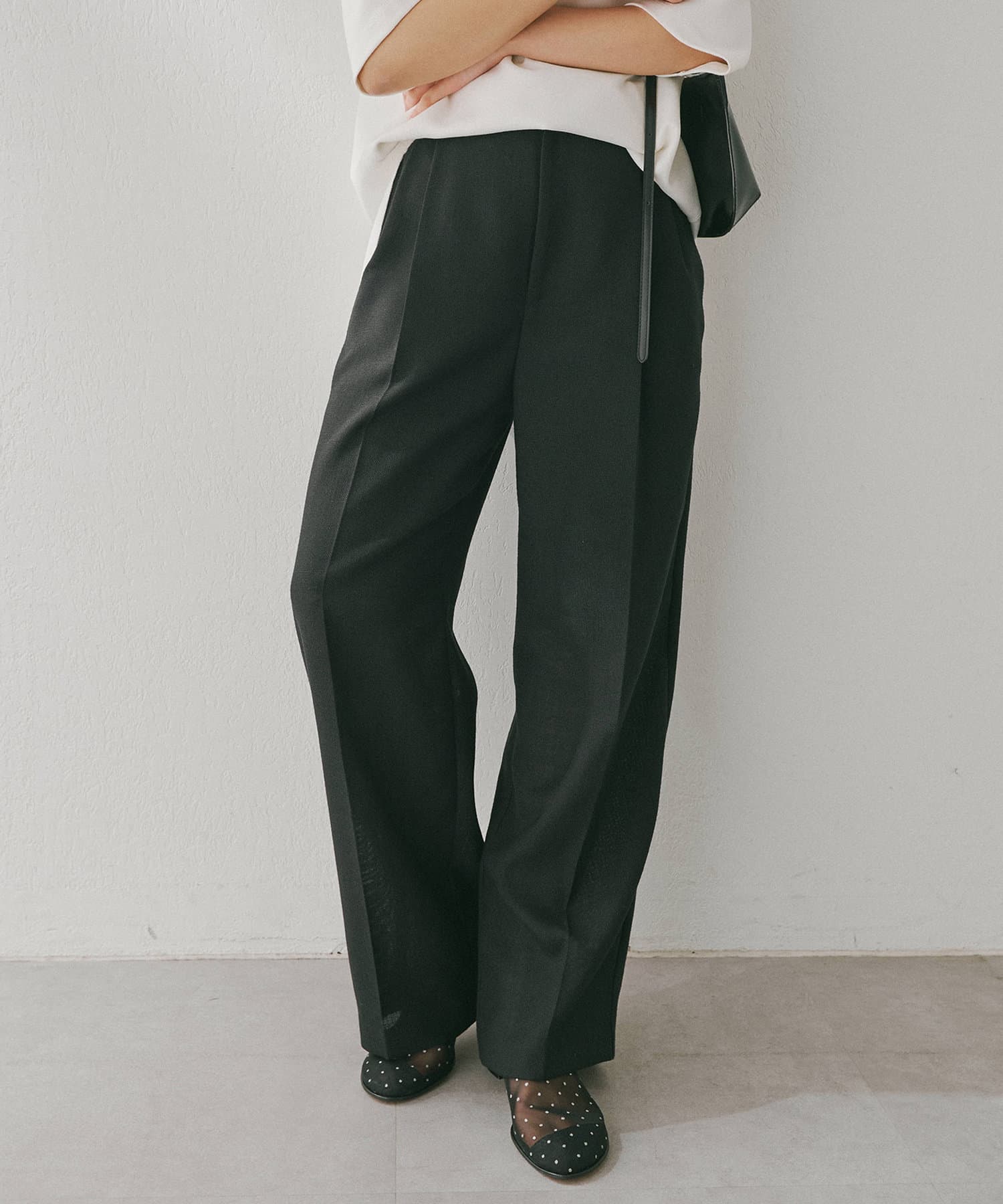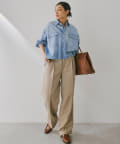 ■フロントの2タックで表現したたっぷりとしたシルエットが抜け感をプラス。