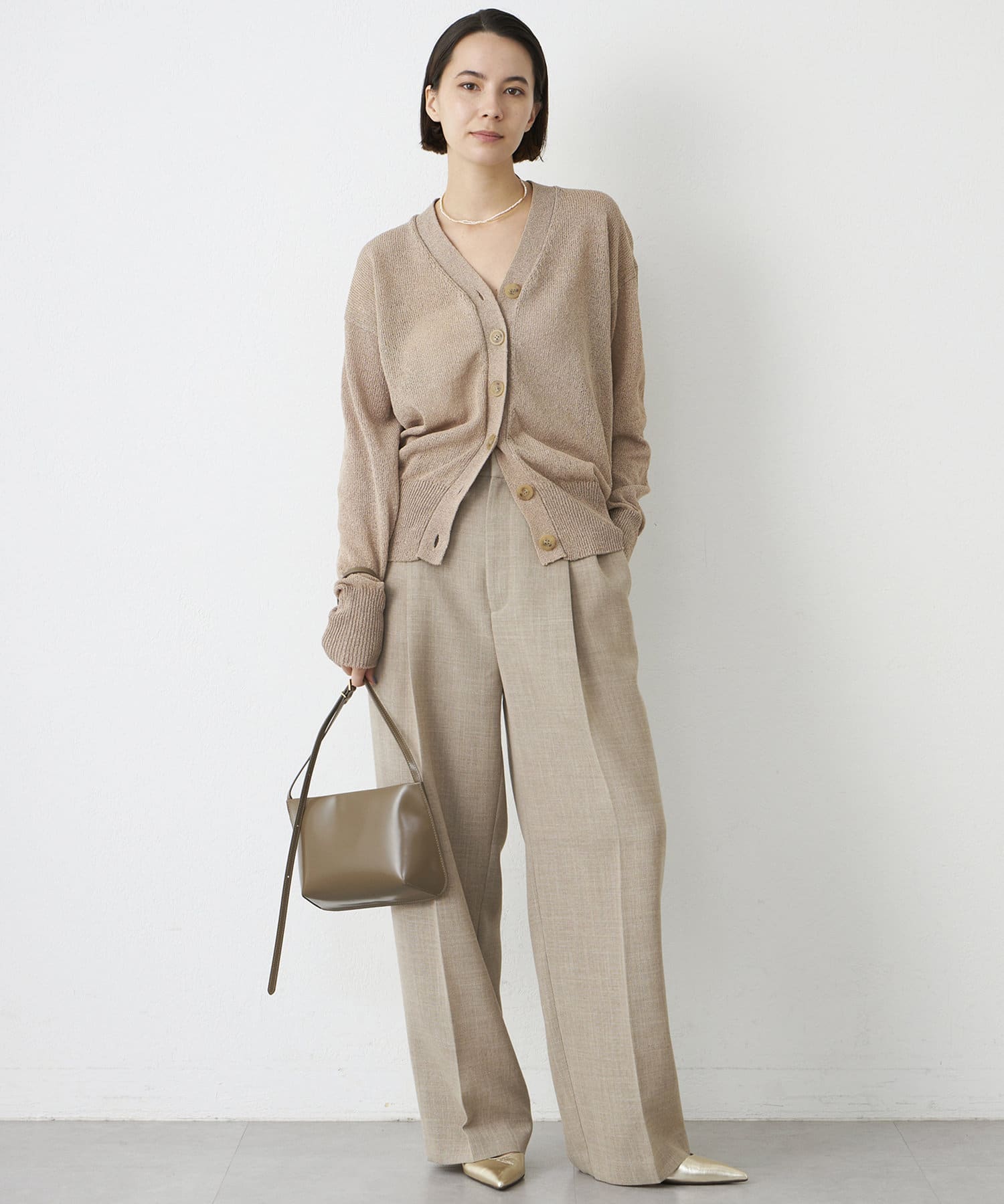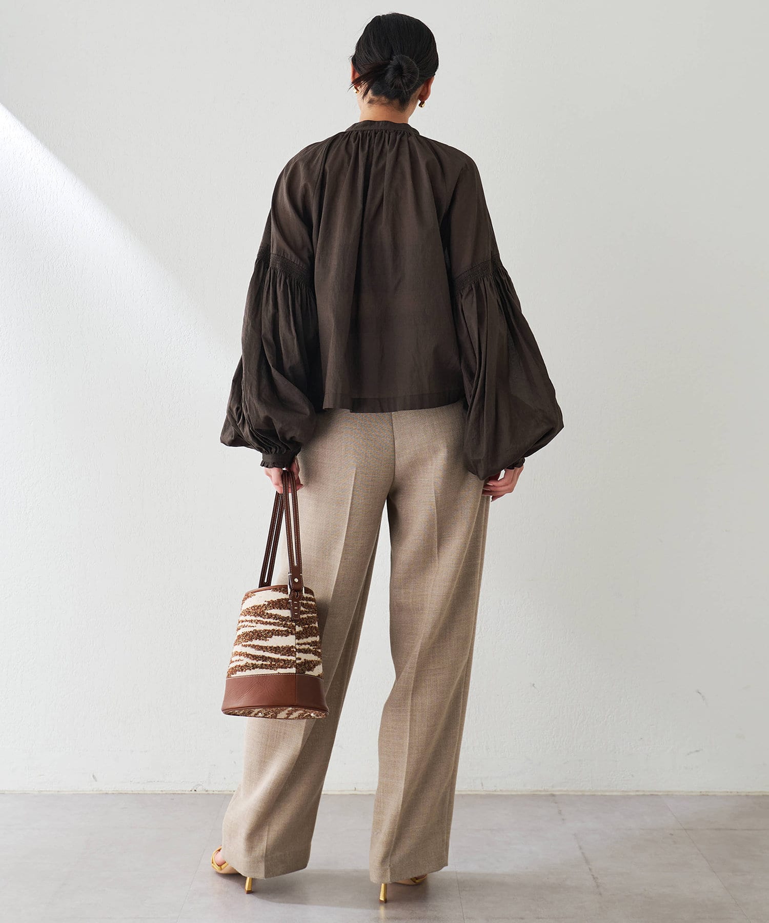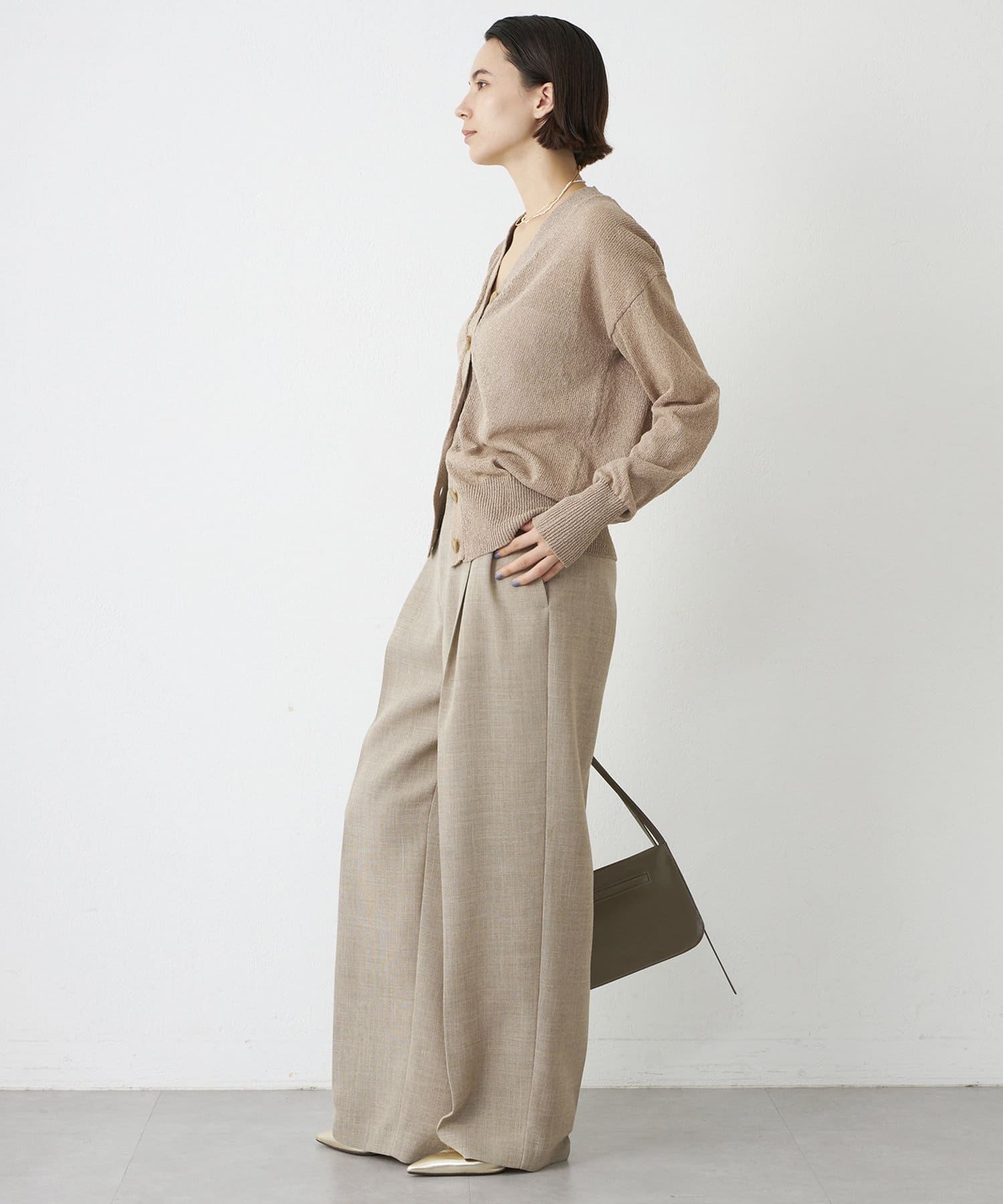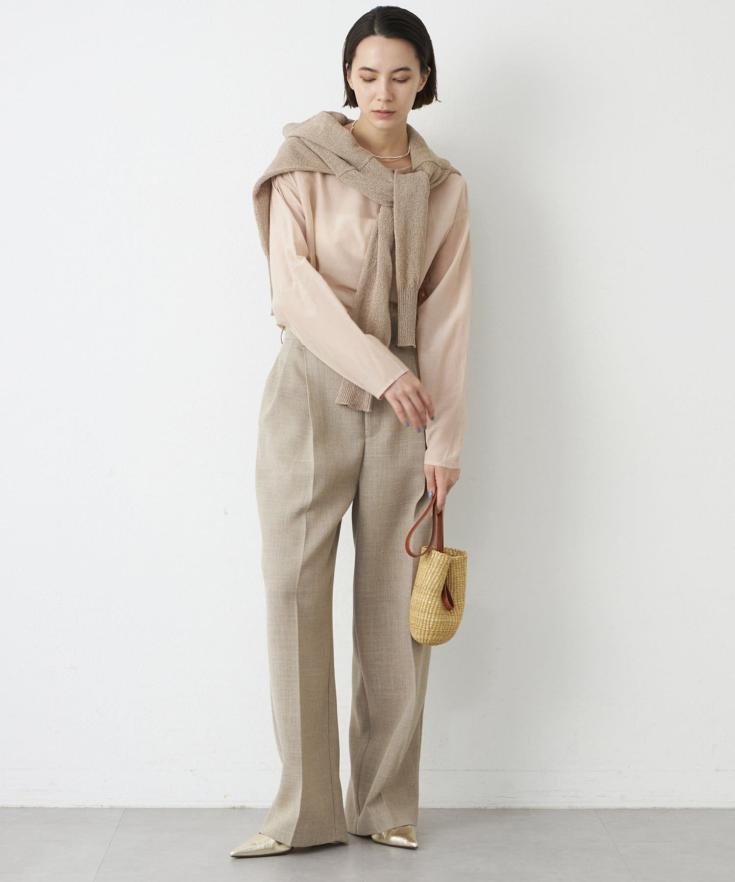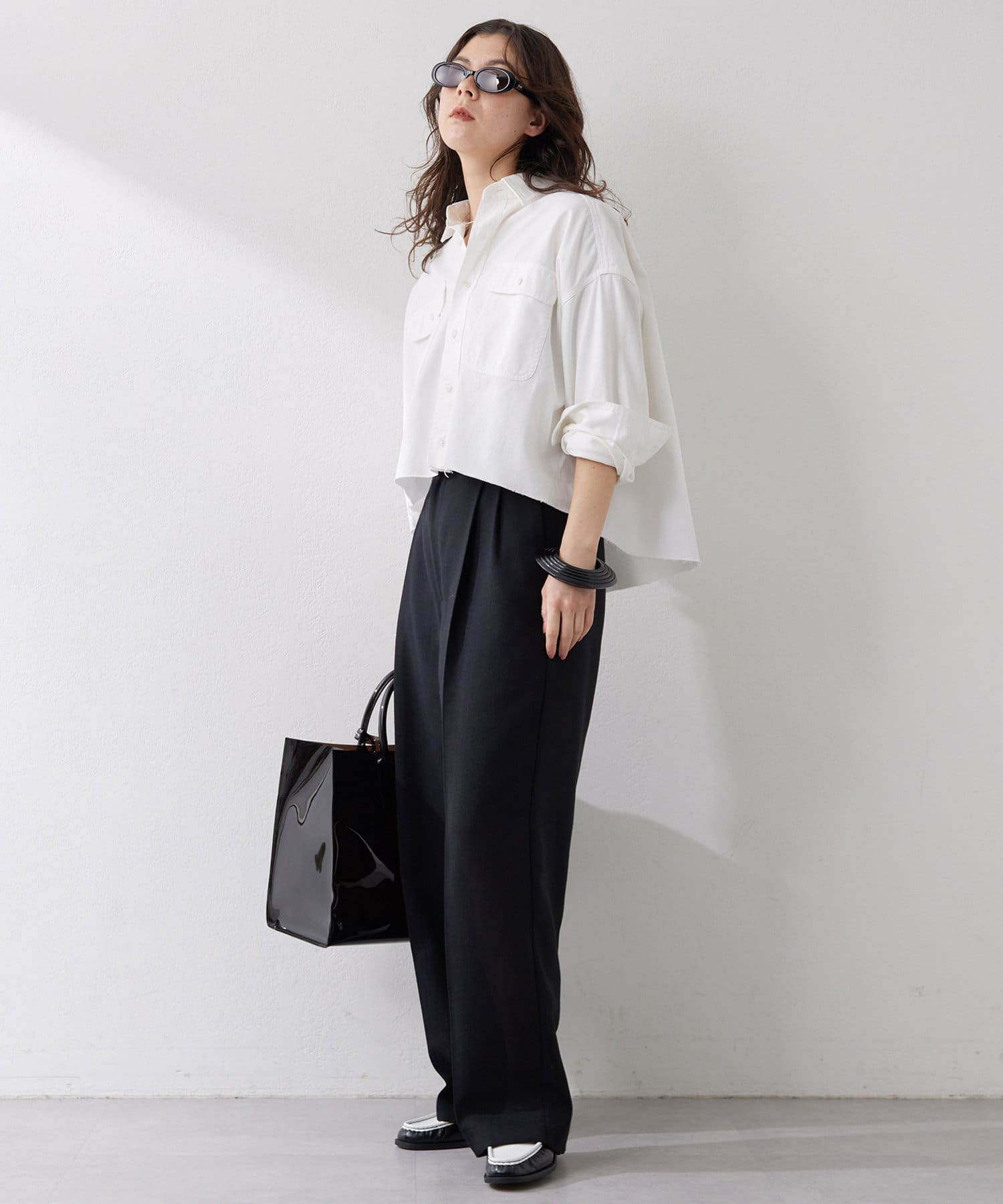 ■フロントの2タックで表現したたっぷりとしたシルエットが抜け感をプラス。