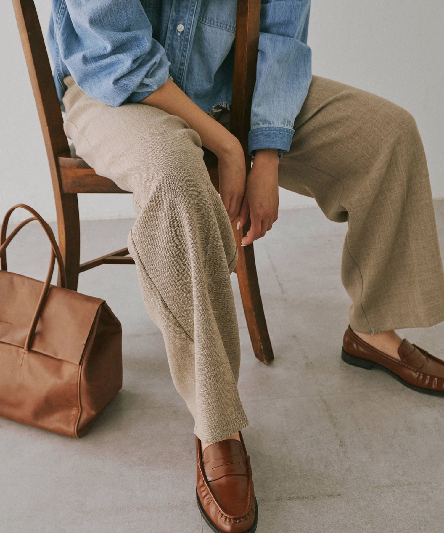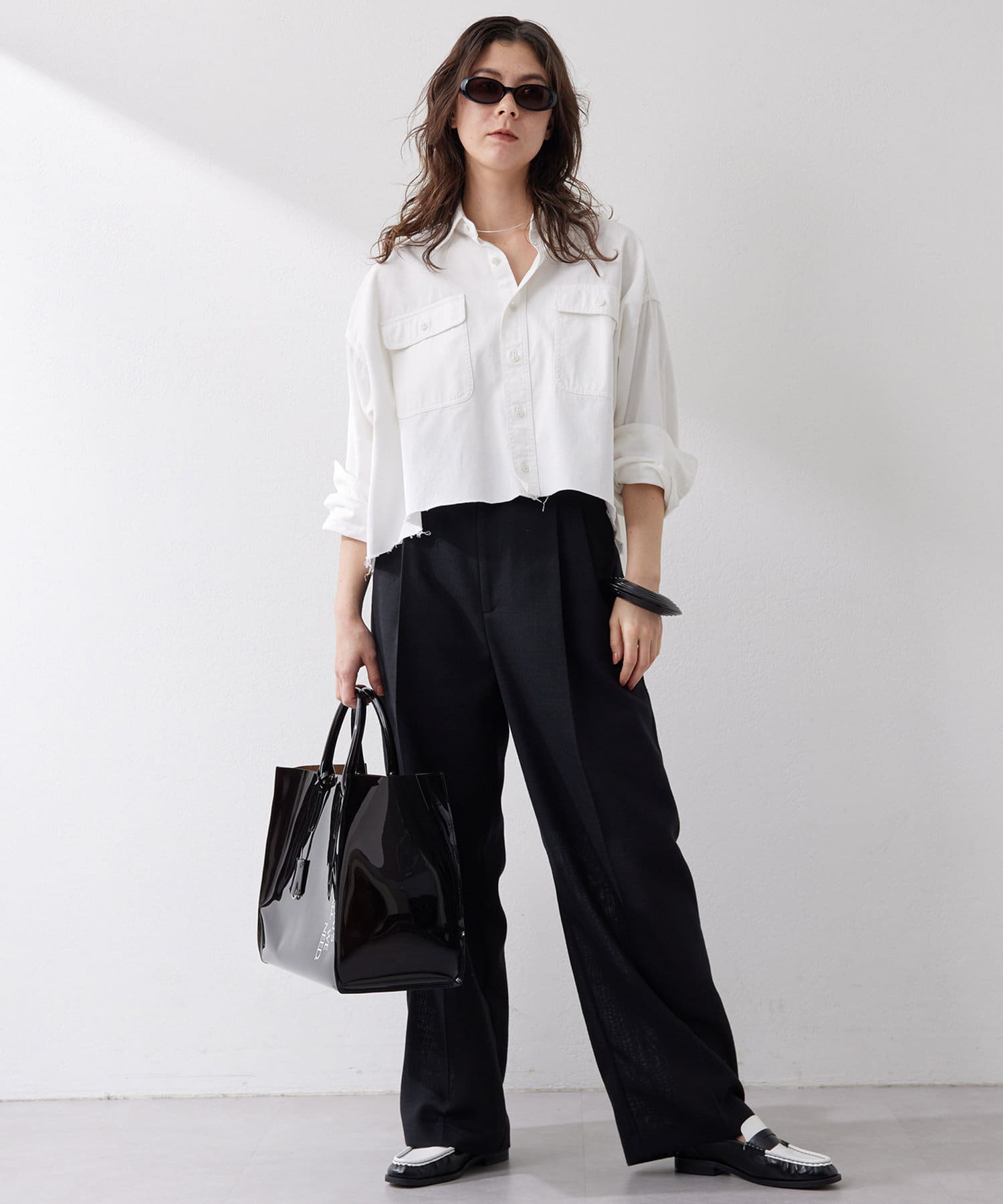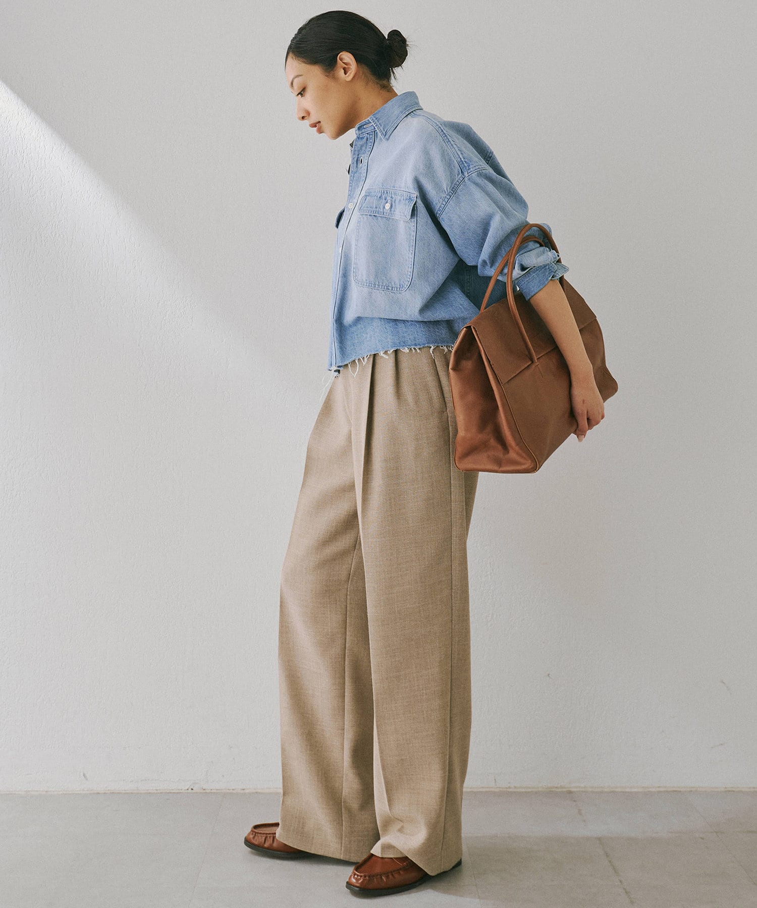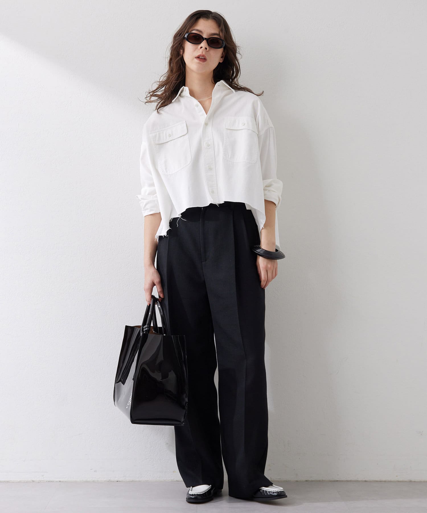 ■フロントの2タックで表現したたっぷりとしたシルエットが抜け感をプラス。