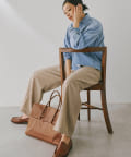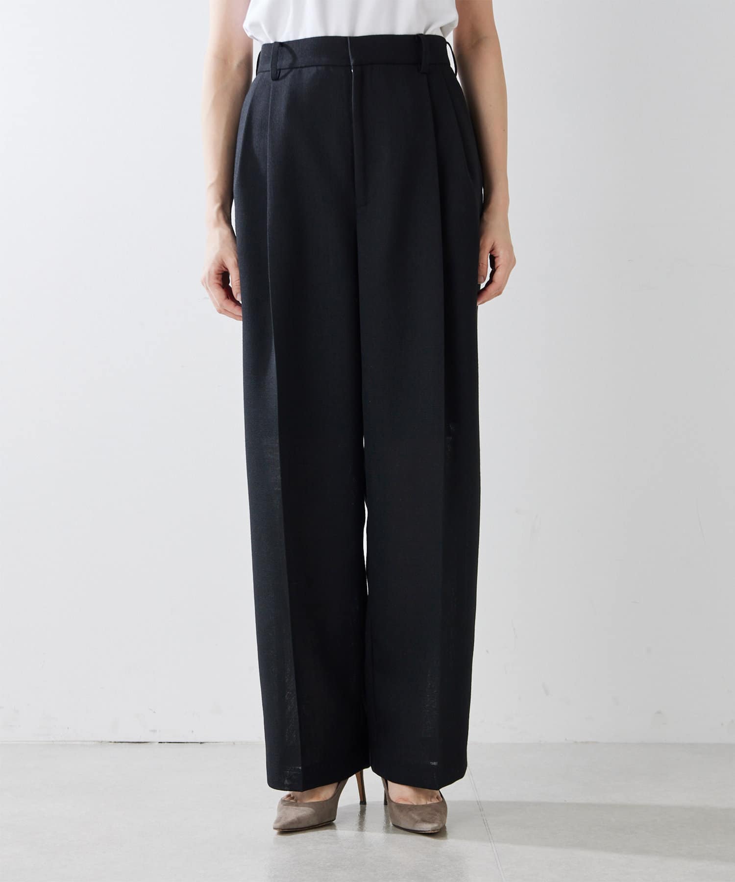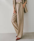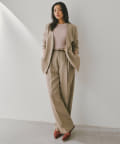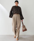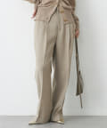 ■深みのある色合いの麻調生地を使用したタックワイドパンツ。