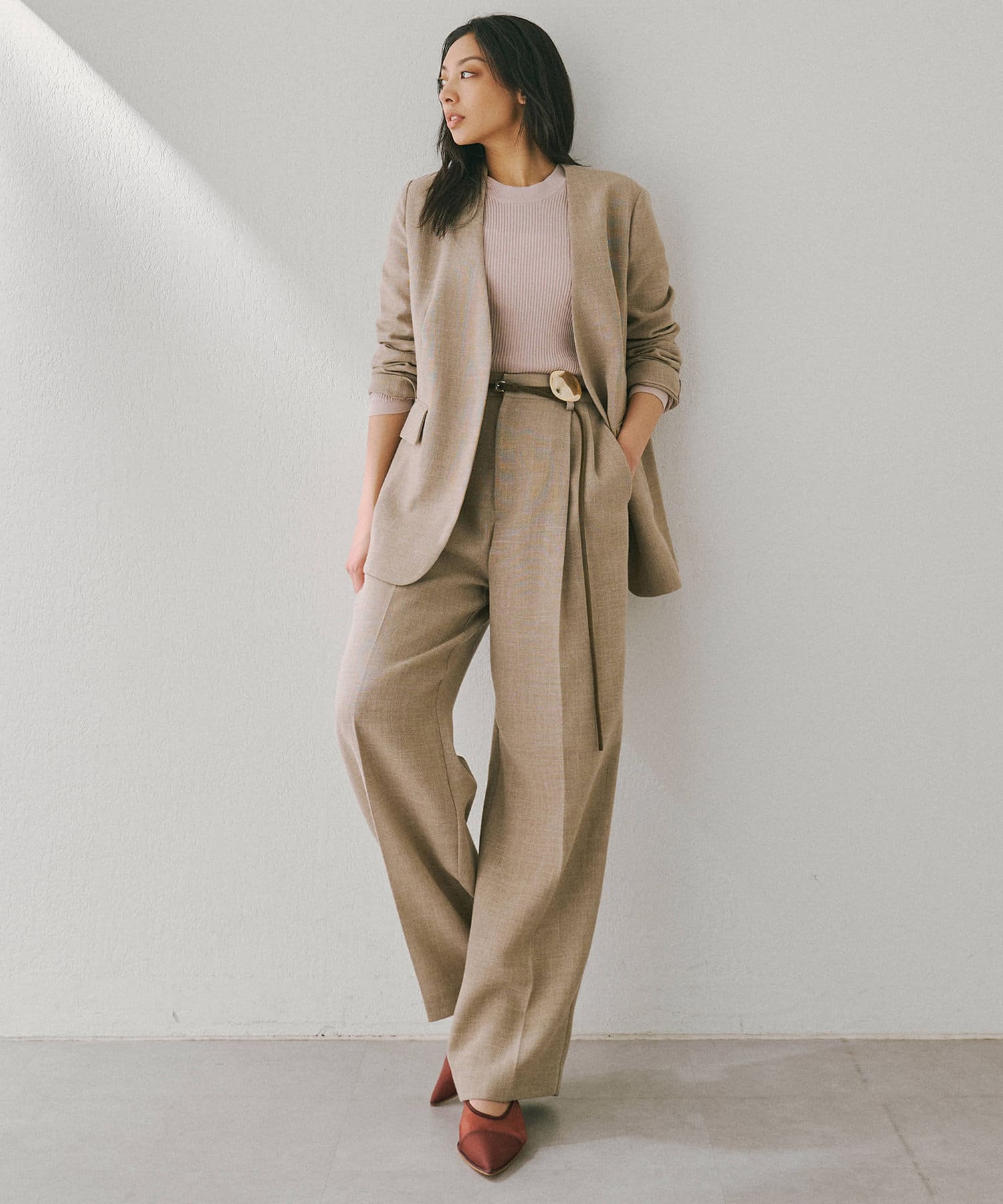 ■同素材のジュードライクノーカラージャケット(ブランド品番:WGZ1051207A0002)とのセットアップもおすすめ。