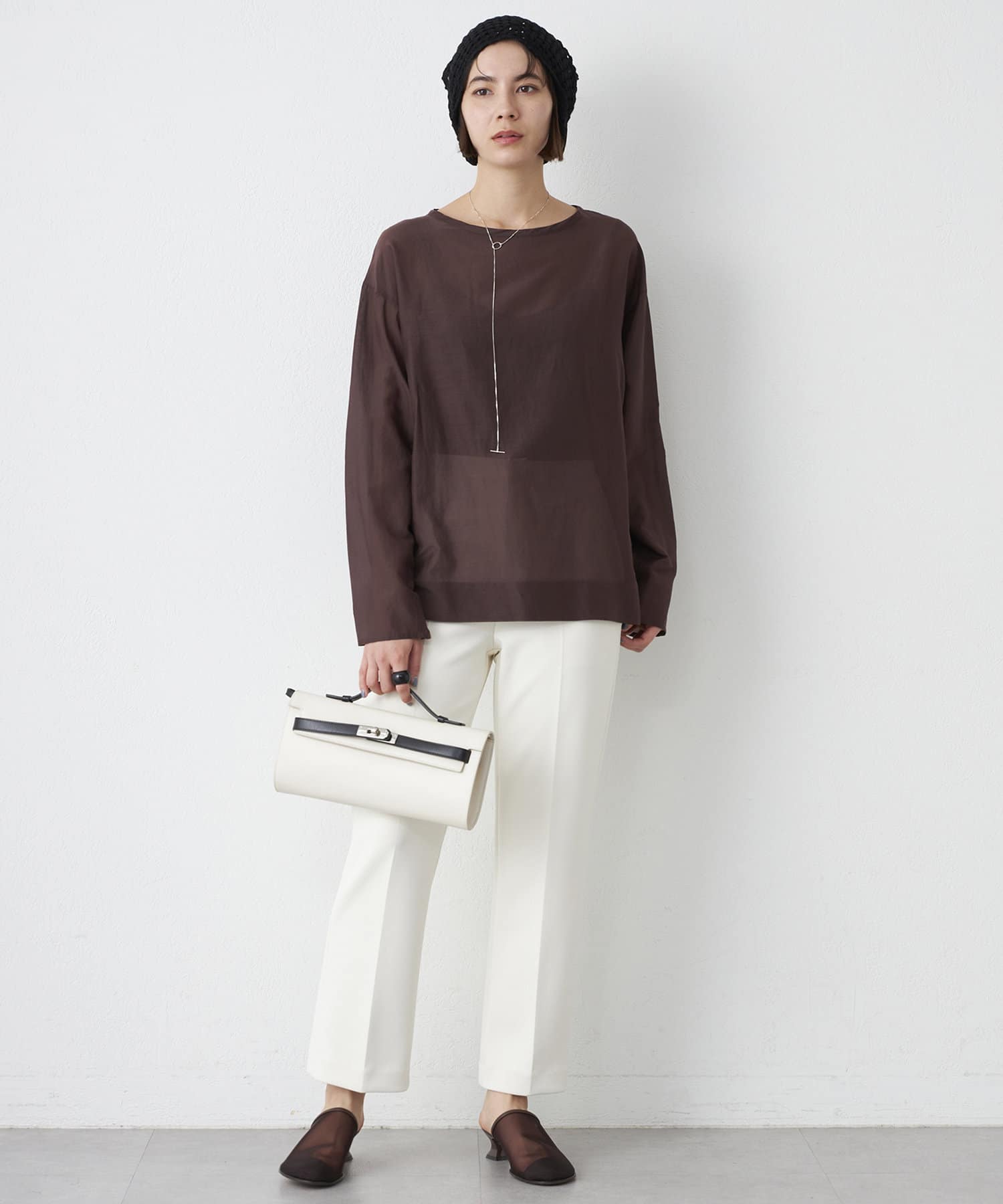 ■さりげないシアー感と程よい光沢感が上品な印象をプラス。