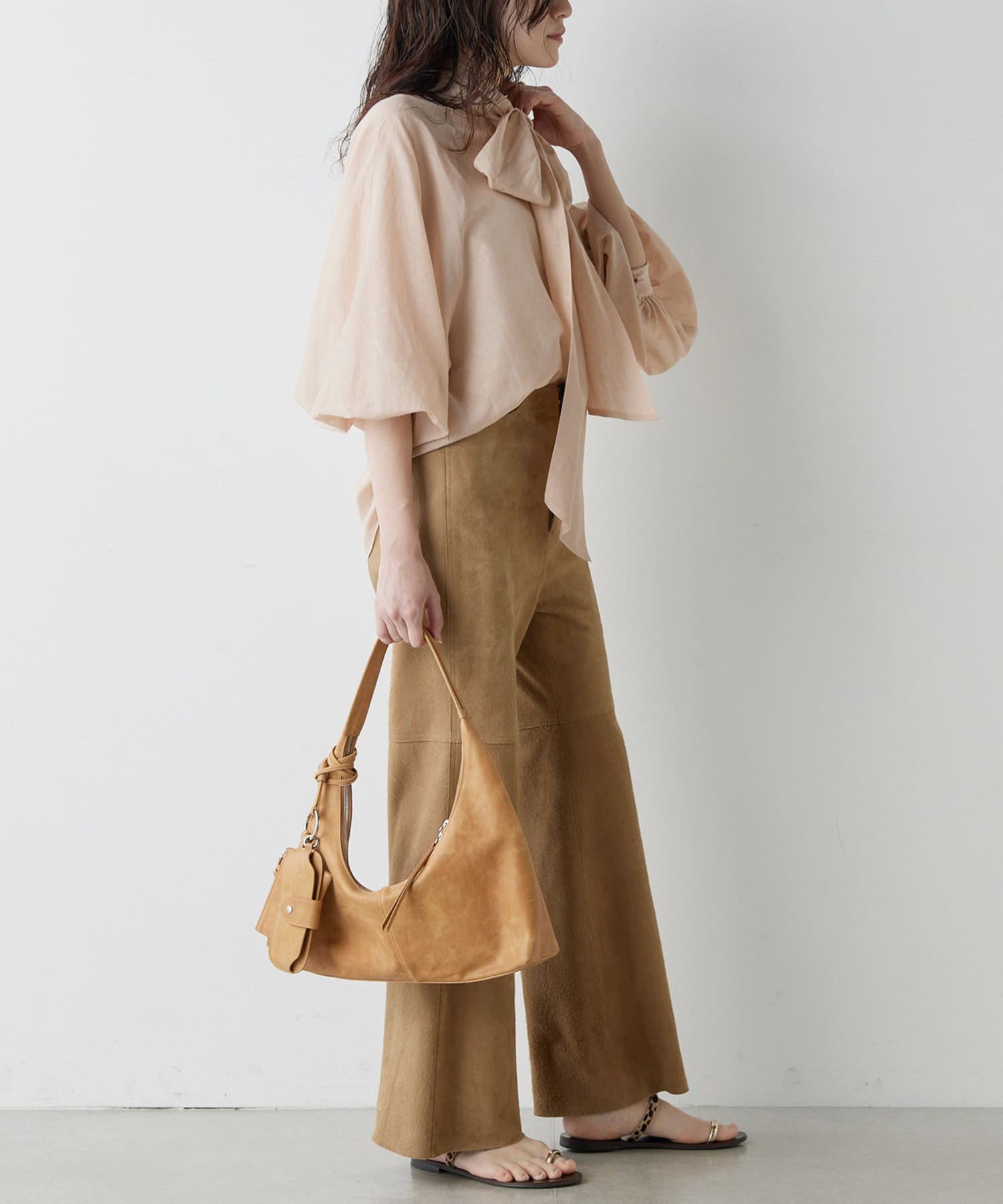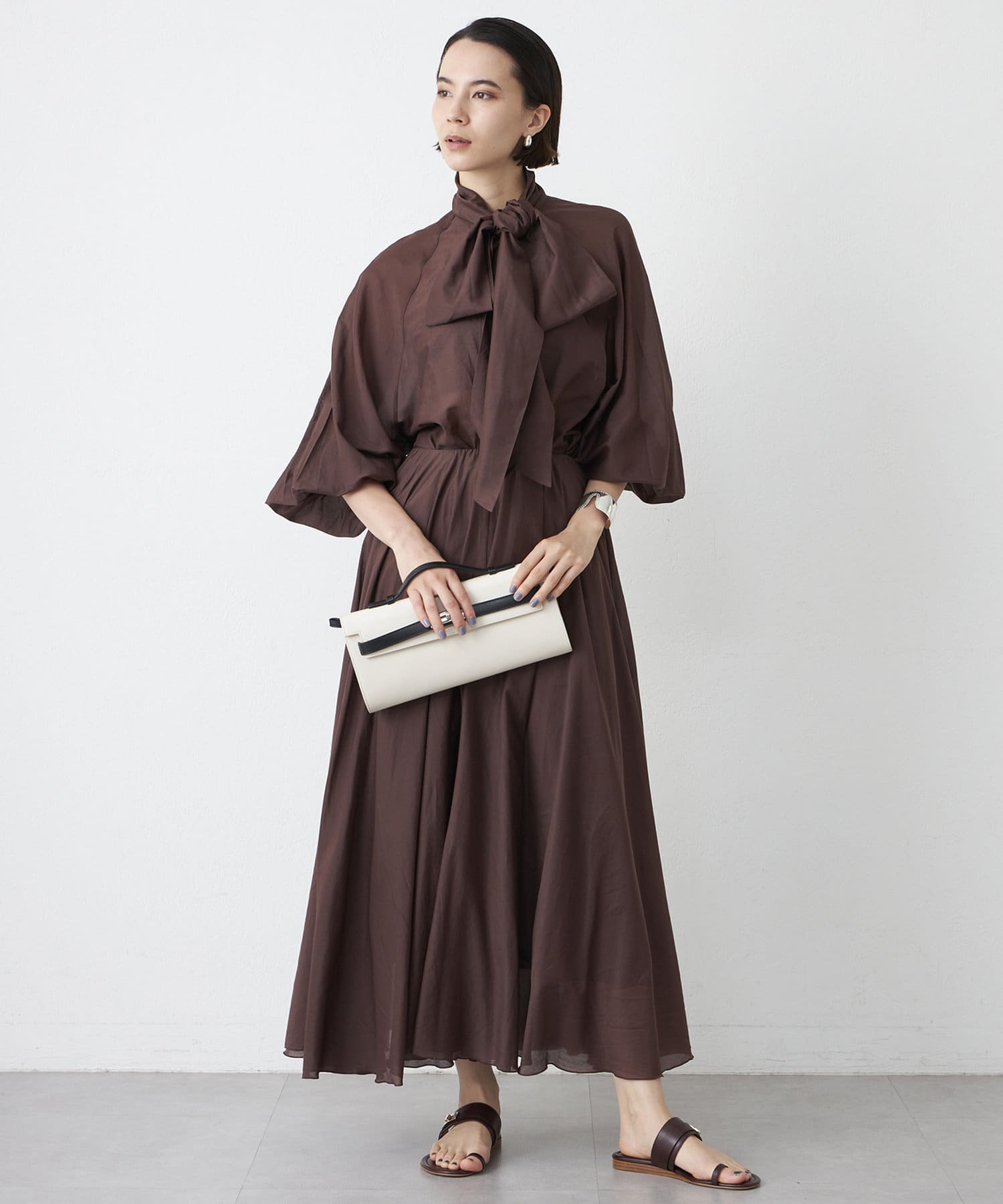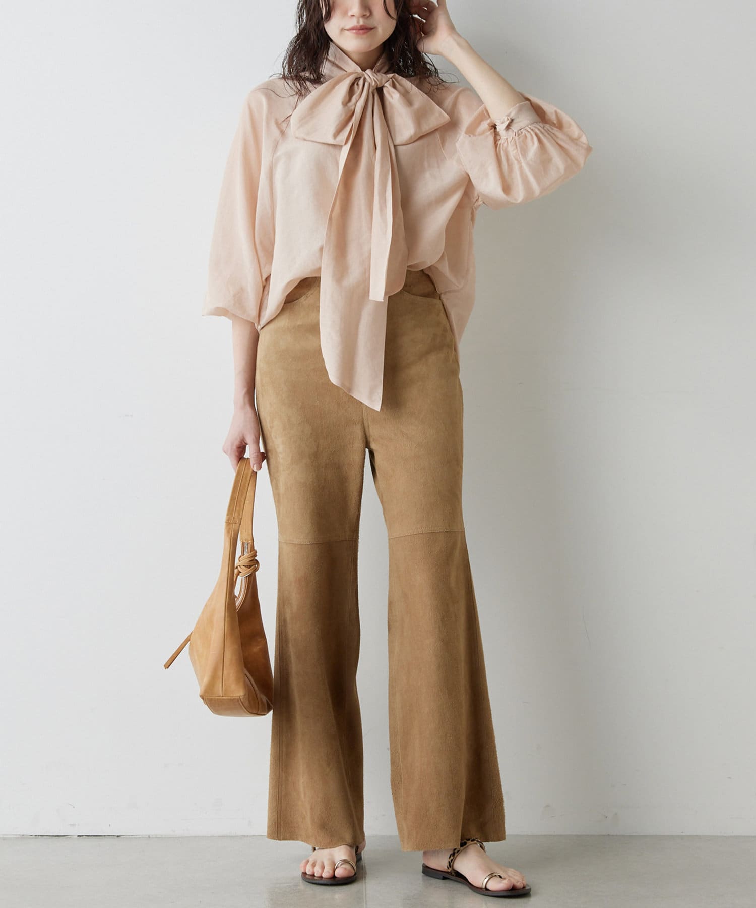 軽やかな印象をプラスする、上品なボウタイブラウス