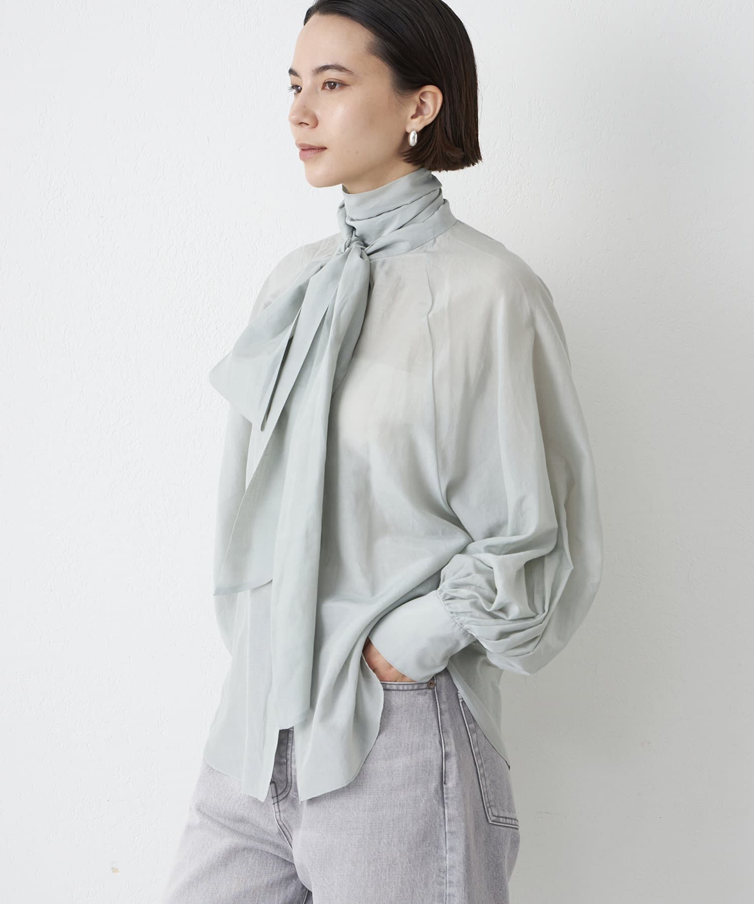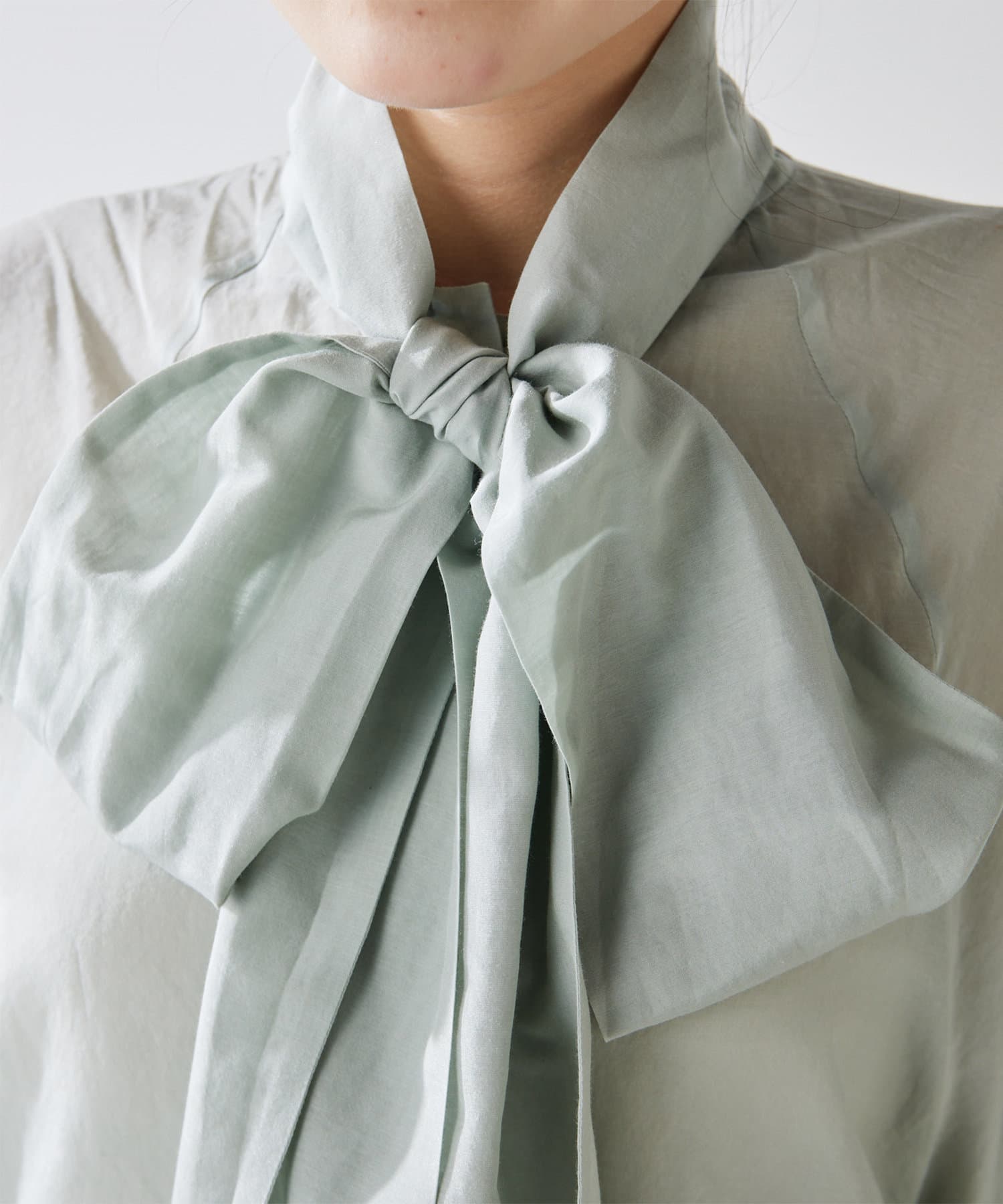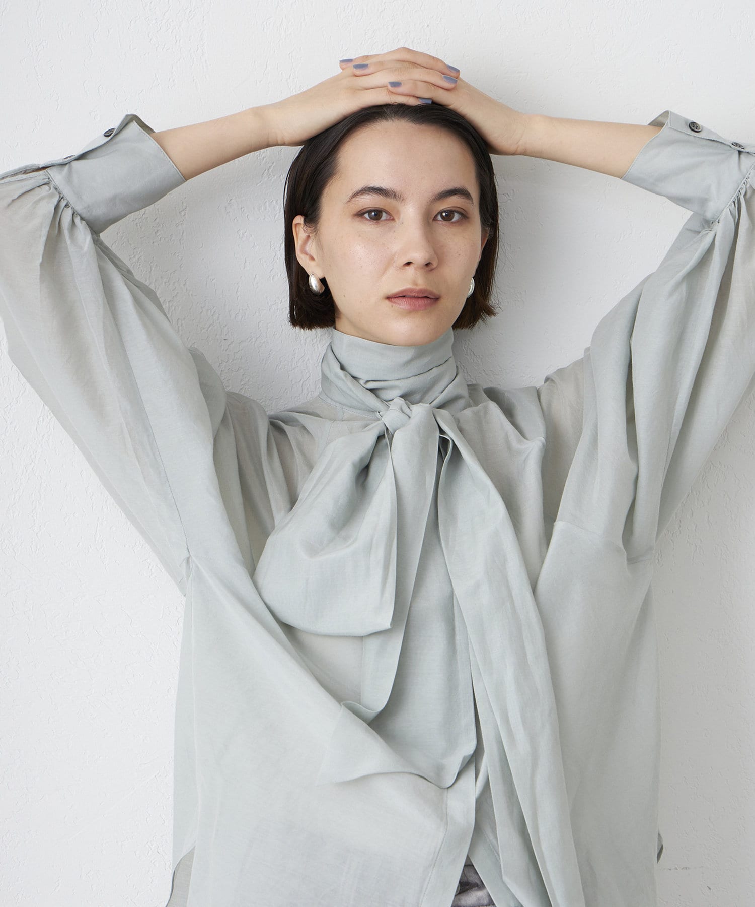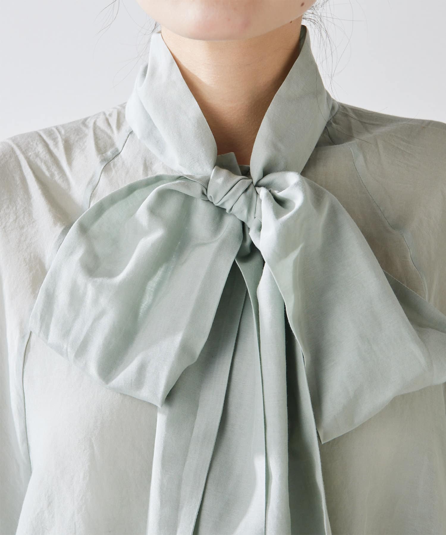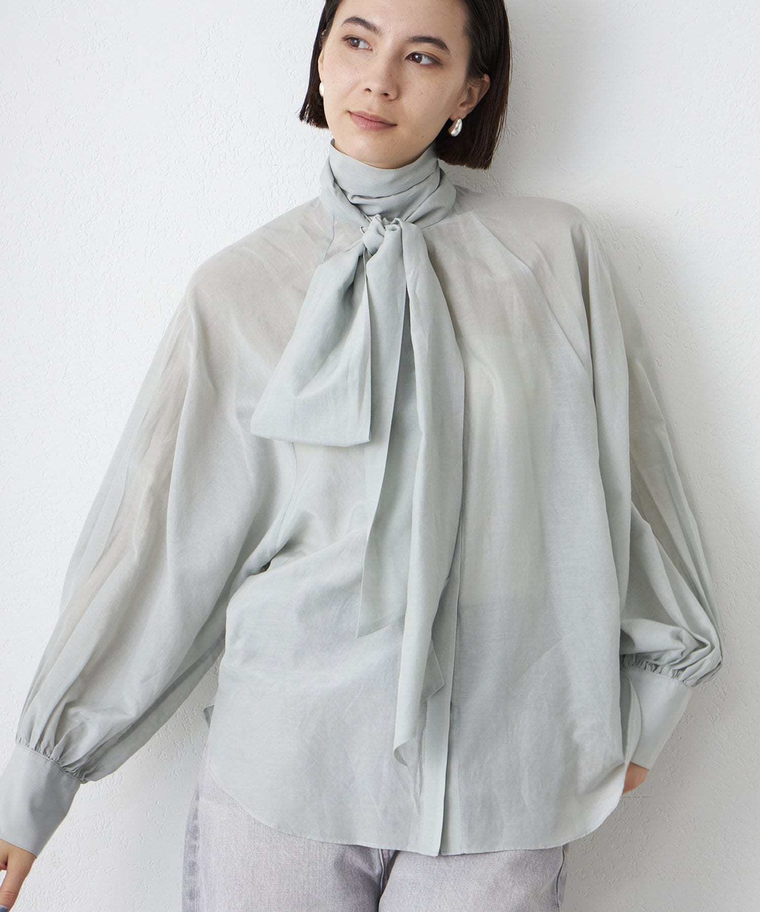 ■品のある透け感とボウタイのディテールが女性らしいブラウス。