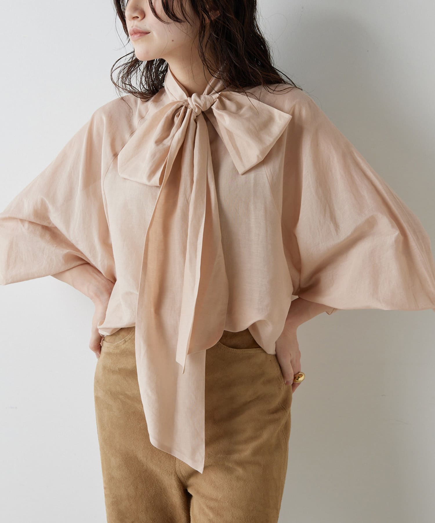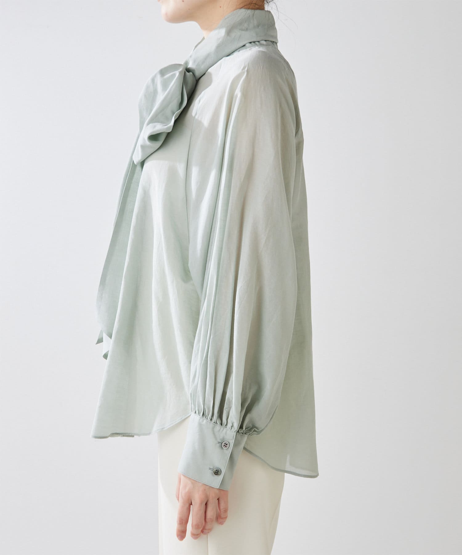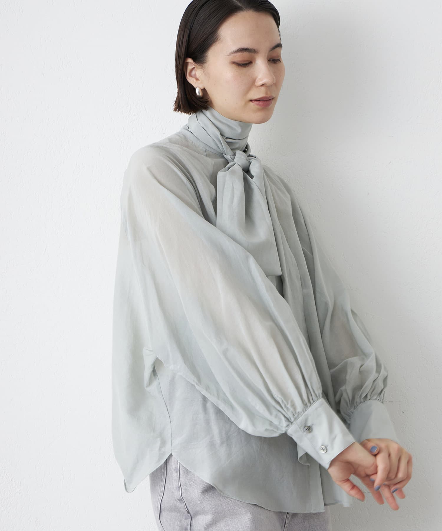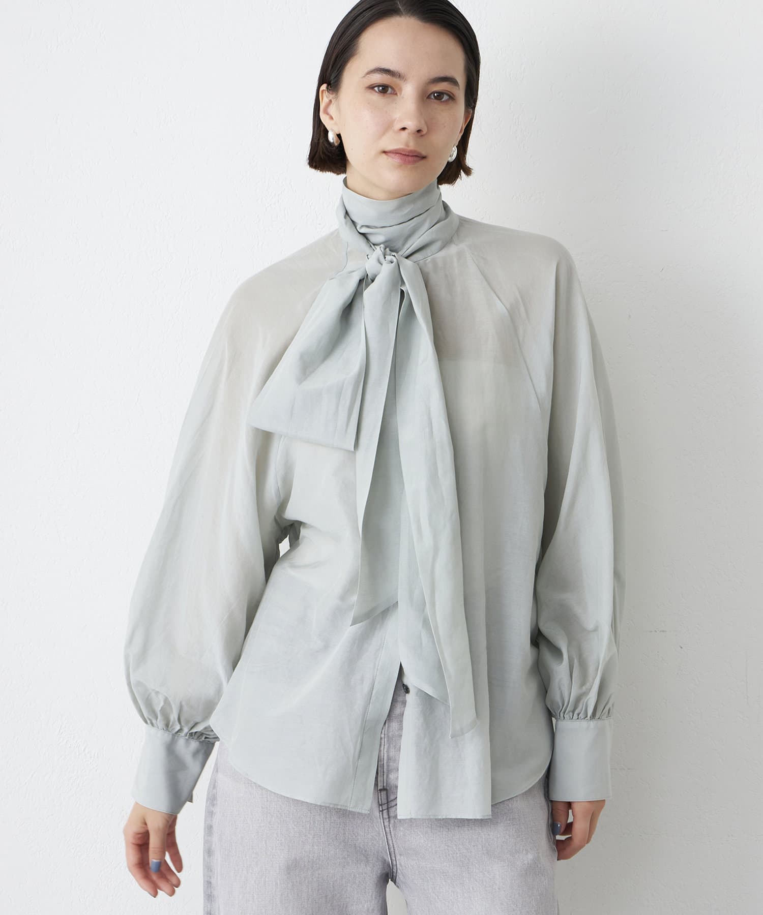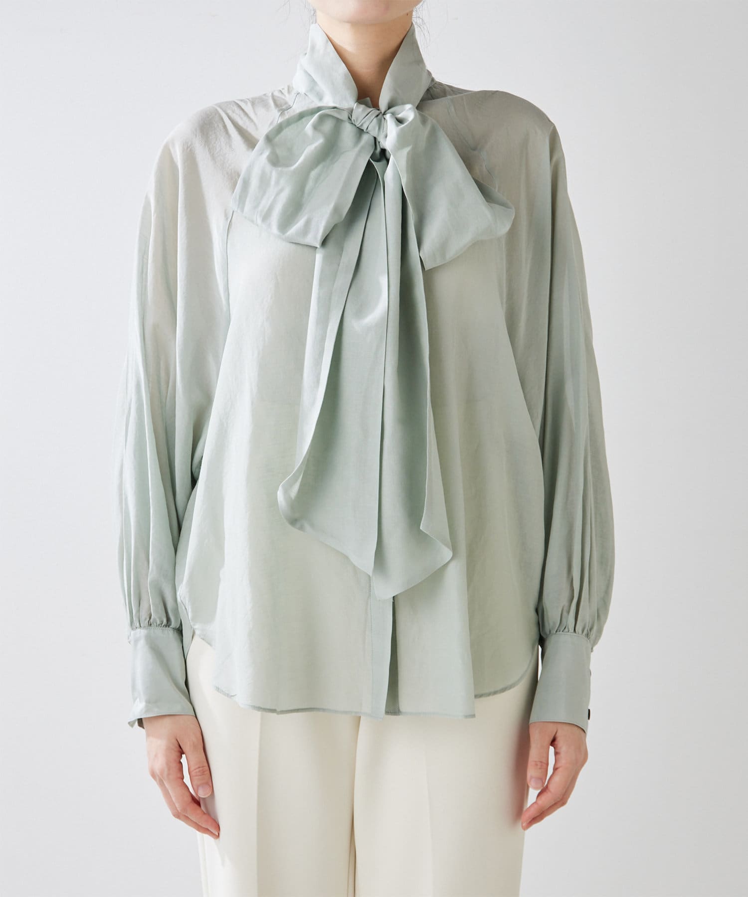 ■品のある透け感とボウタイのディテールが女性らしいブラウス。