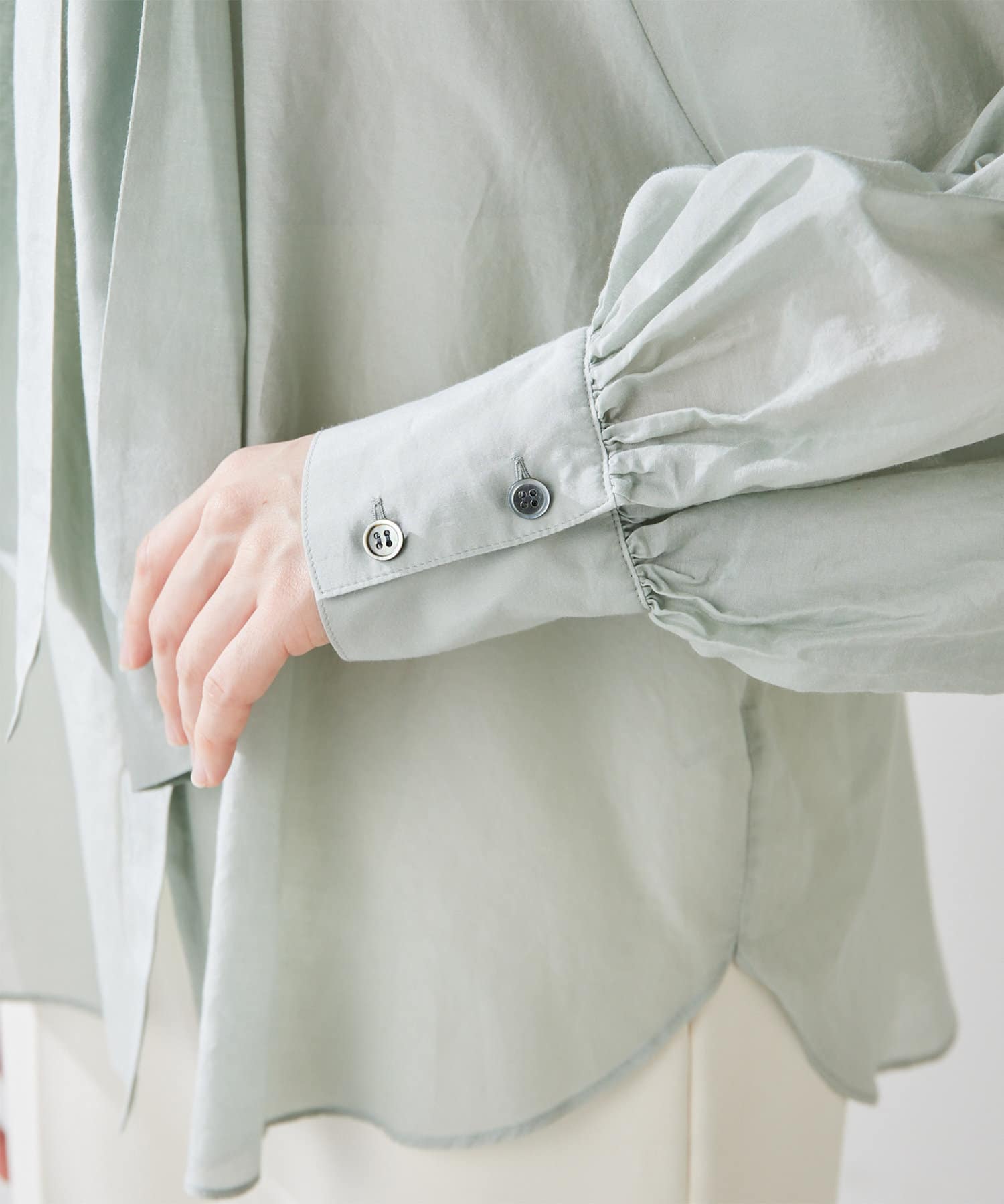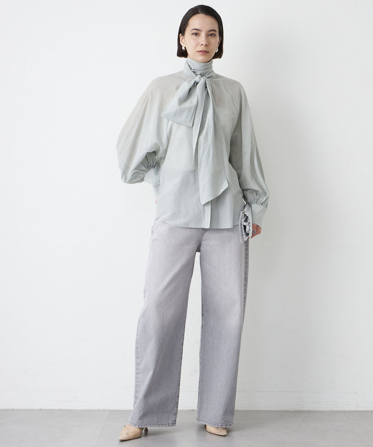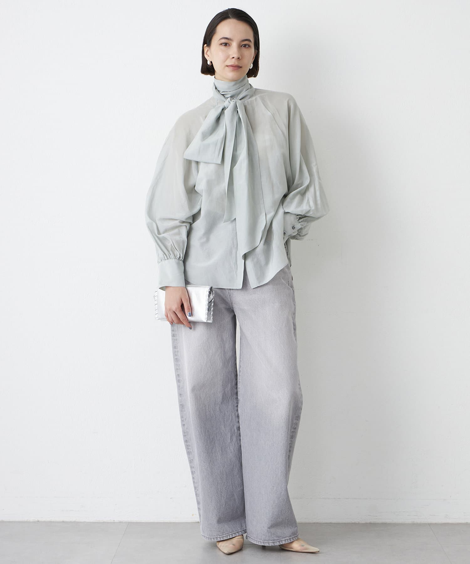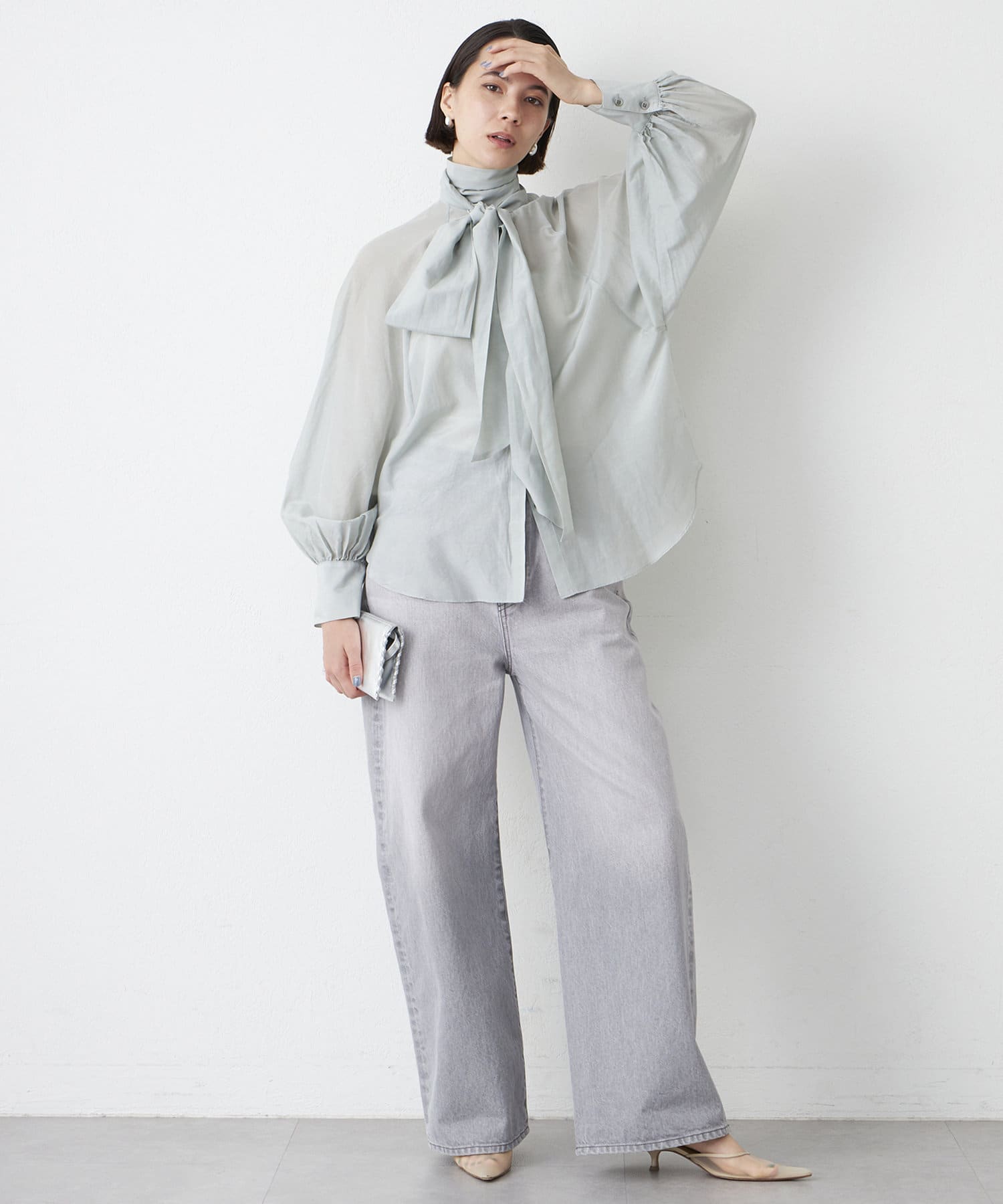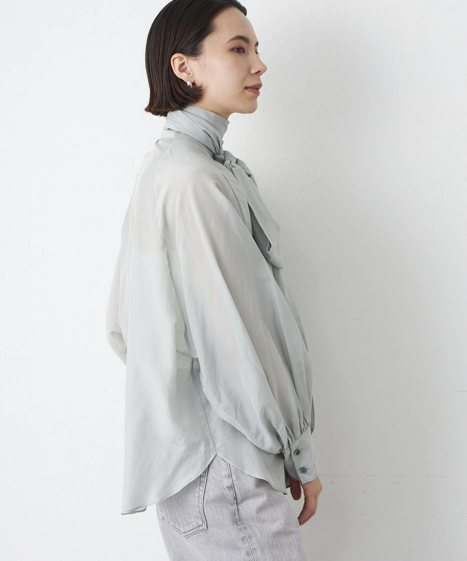 ■品のある透け感とボウタイのディテールが女性らしいブラウス。