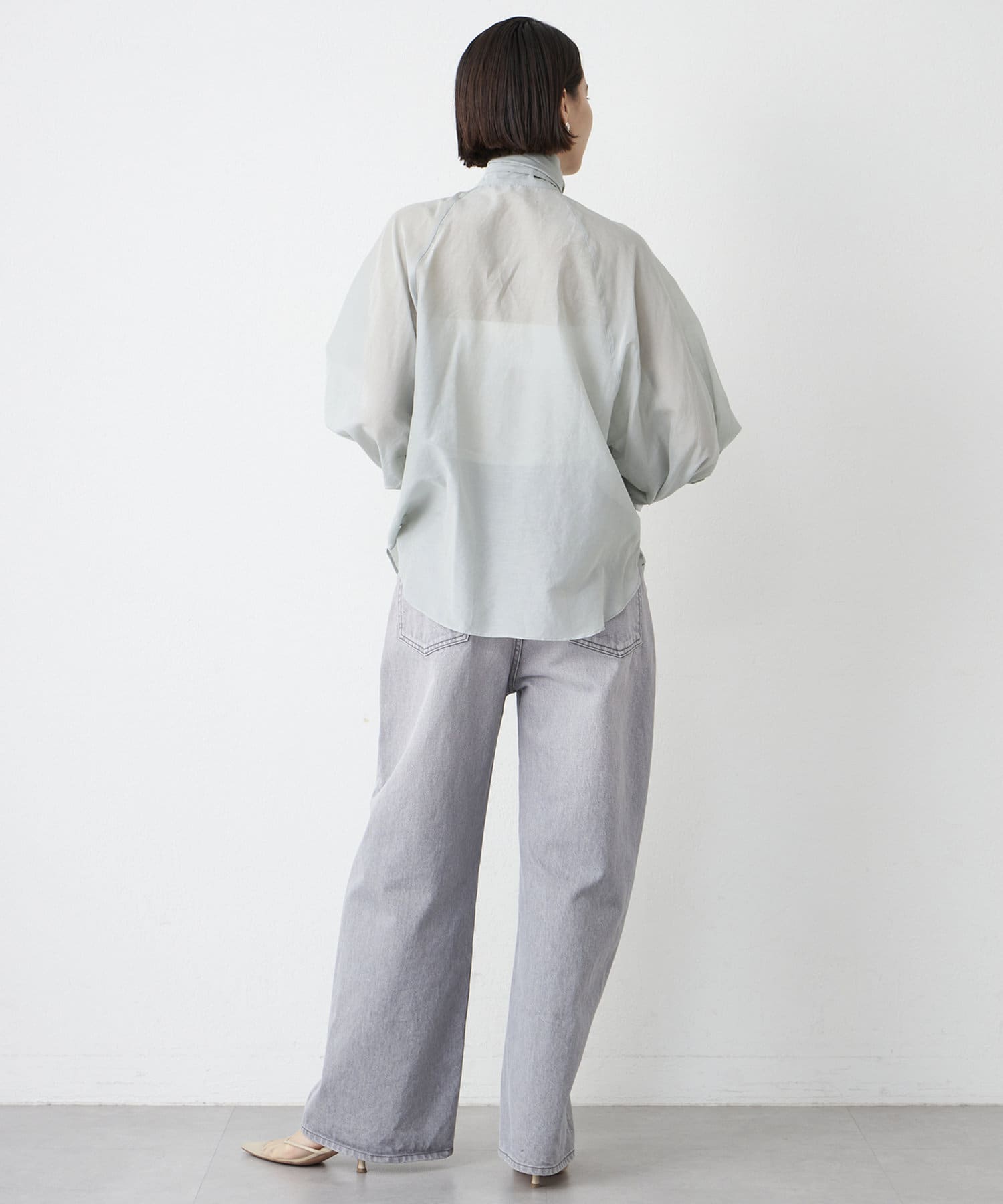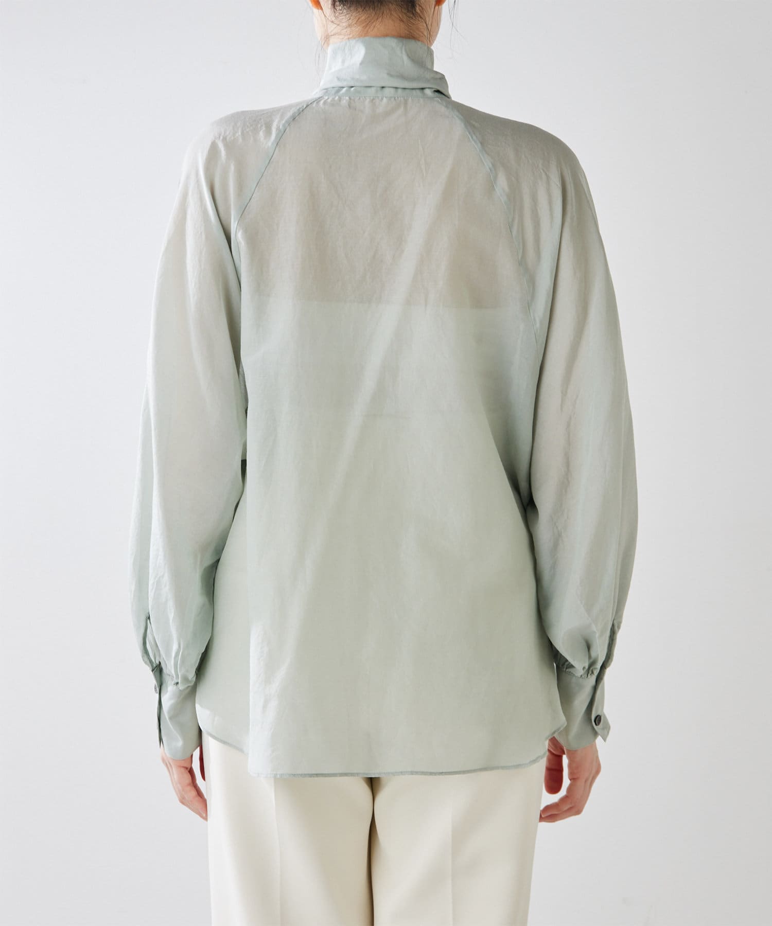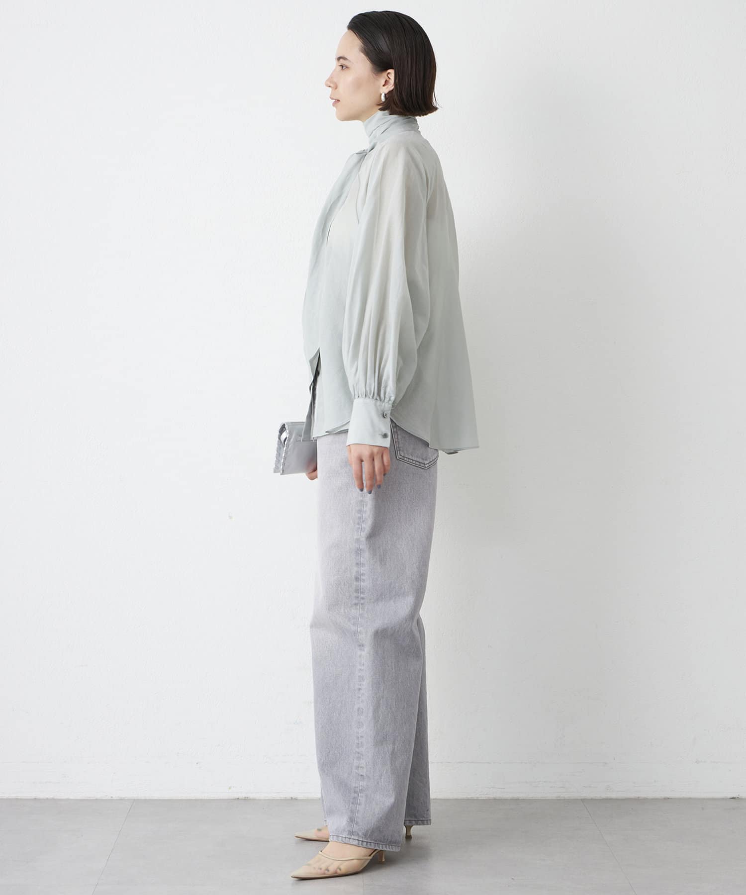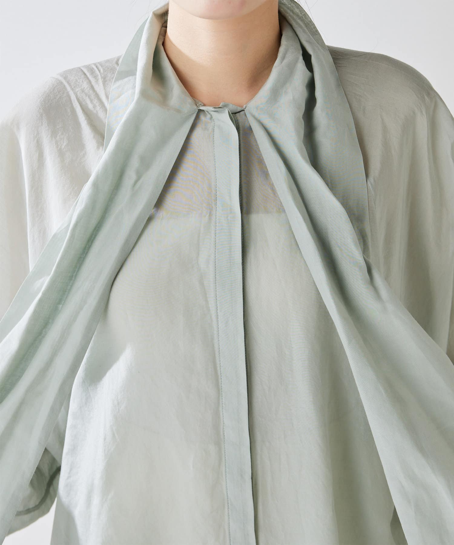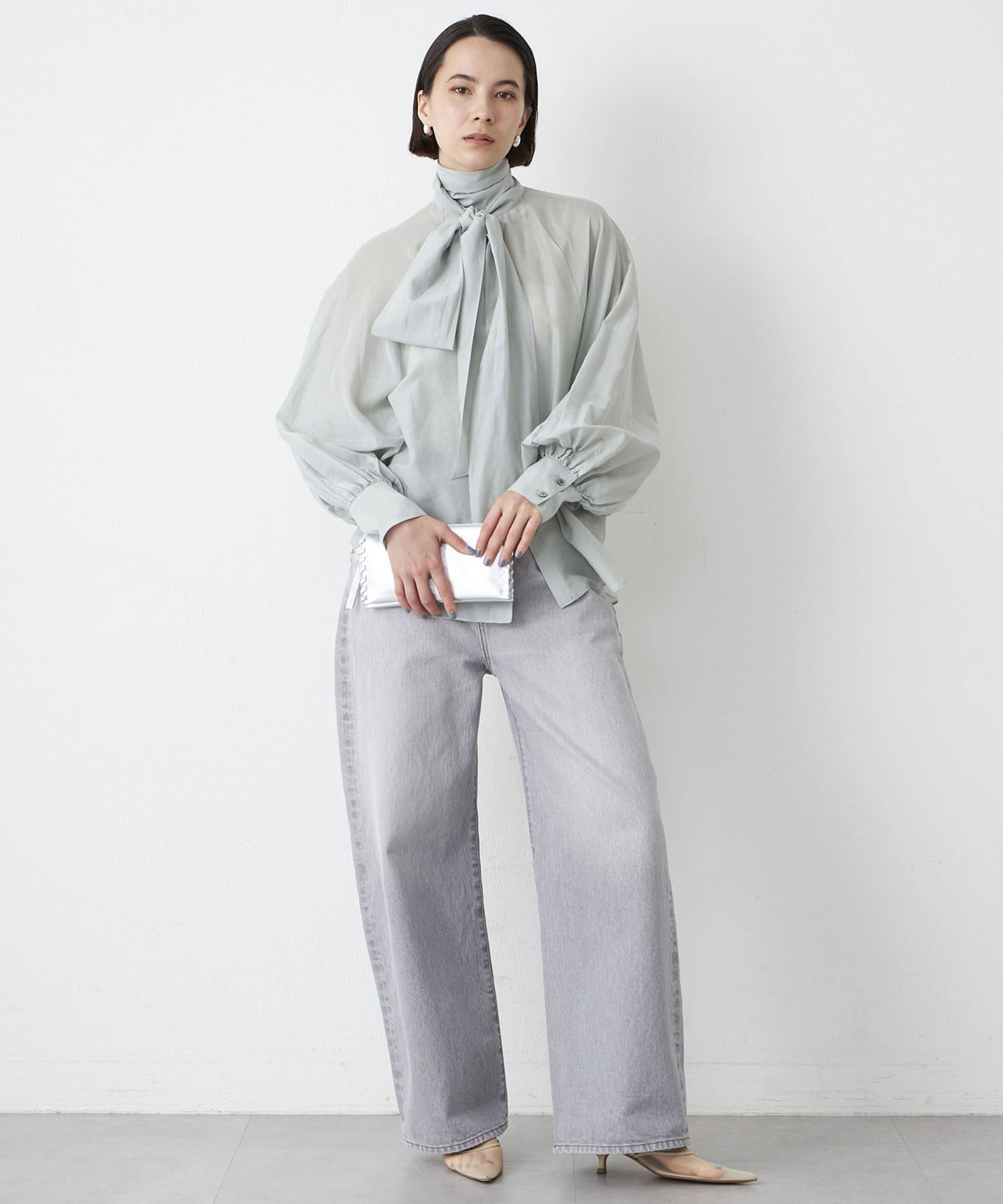 ■品のある透け感とボウタイのディテールが女性らしいブラウス。
