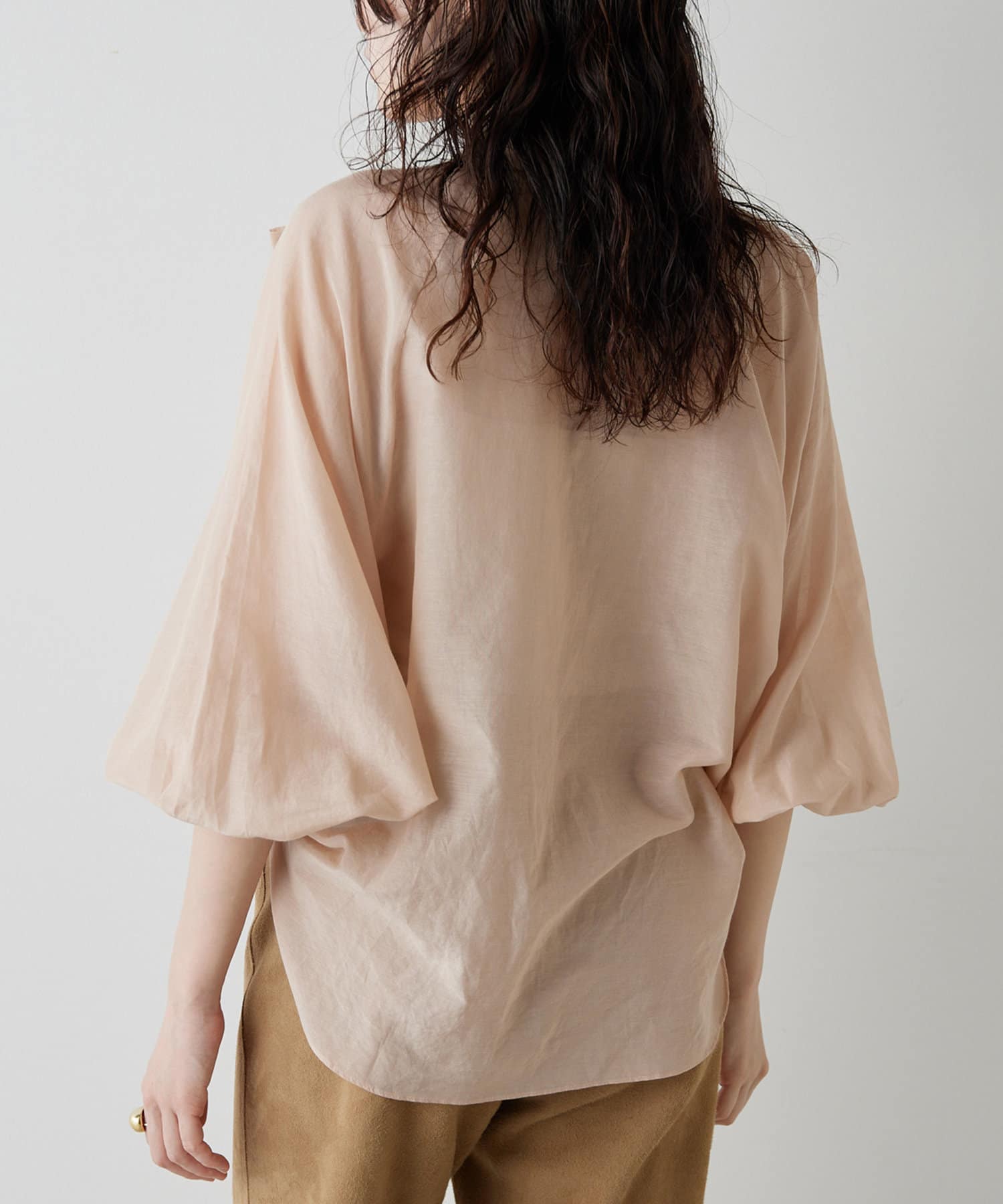 ■シルクとコットンの繊細な生地を使用し、たっぷりとギャザーを入れふんわりと膨らみのある表情に仕上げた一枚。