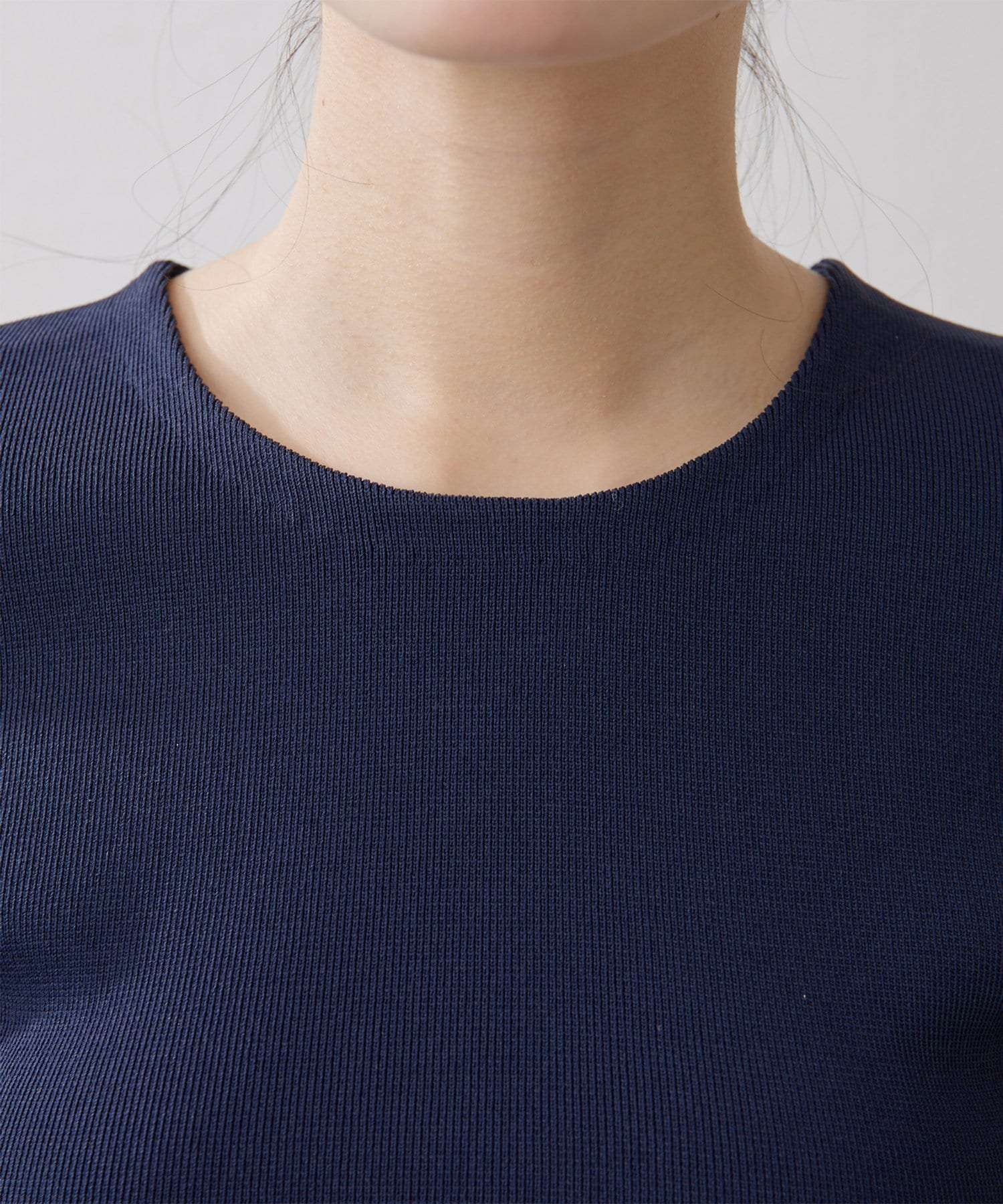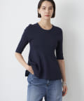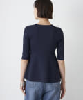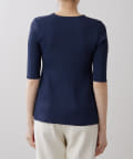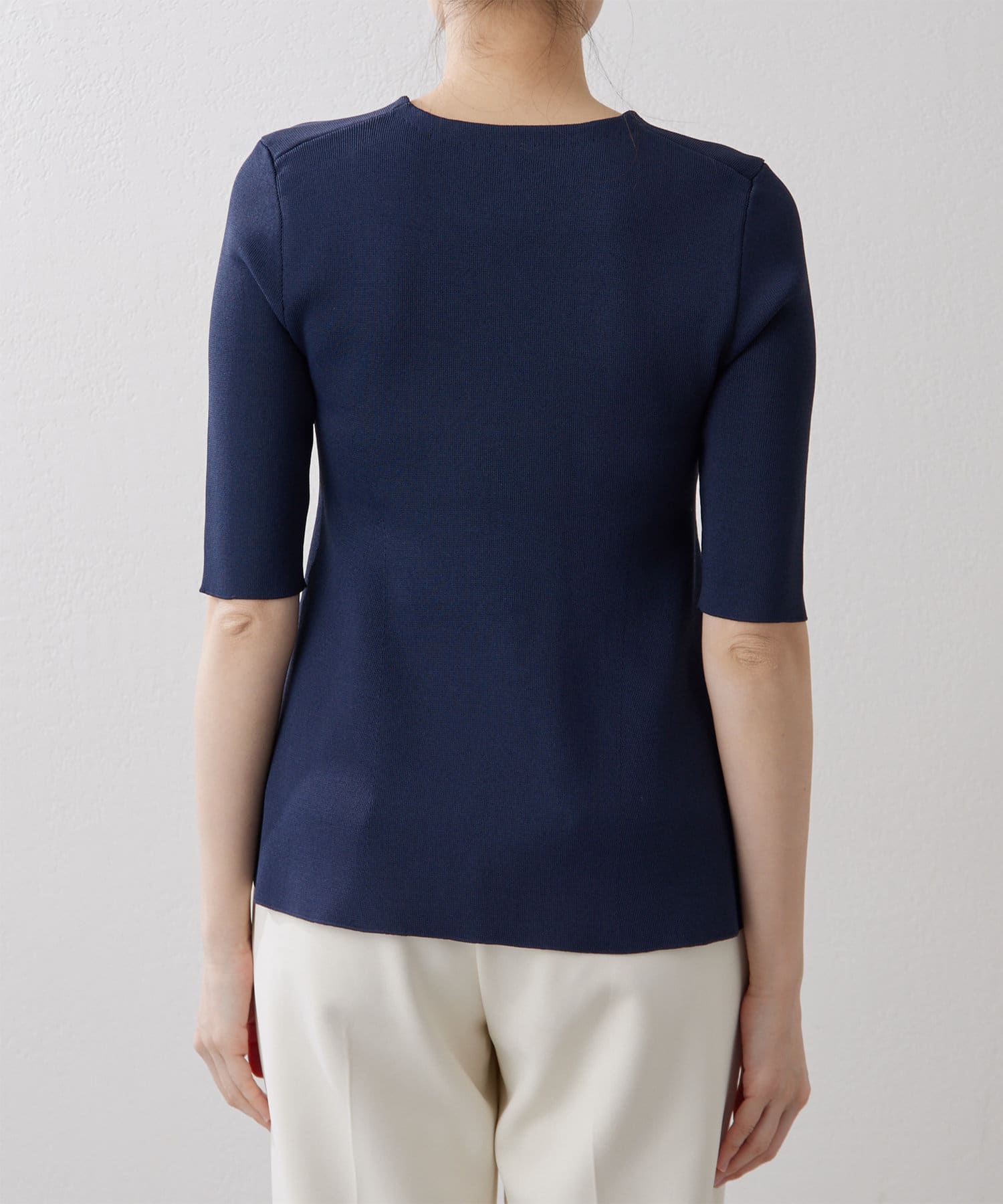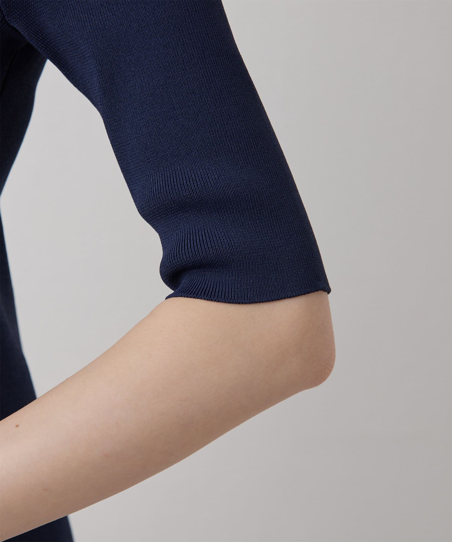 ■気になる腕をカバーしつつ上品さもプラスしてくれる、ハーフ丈のスリーブもポイント。