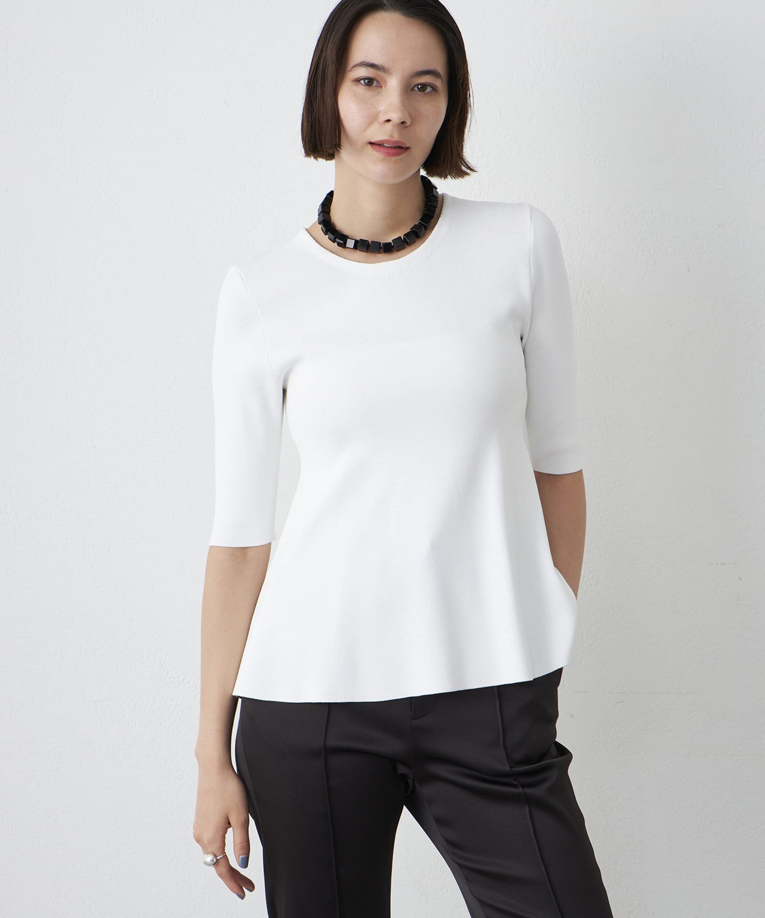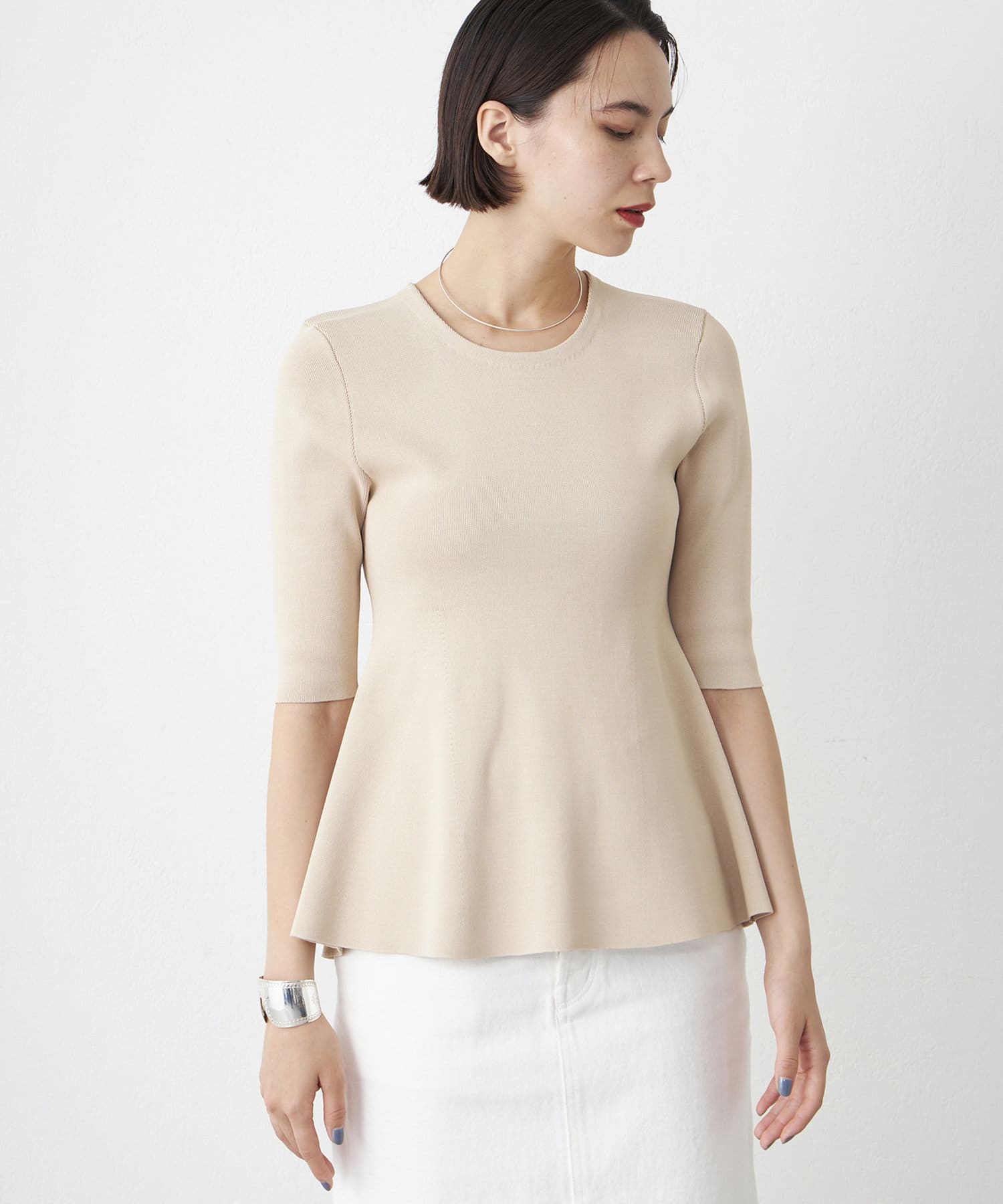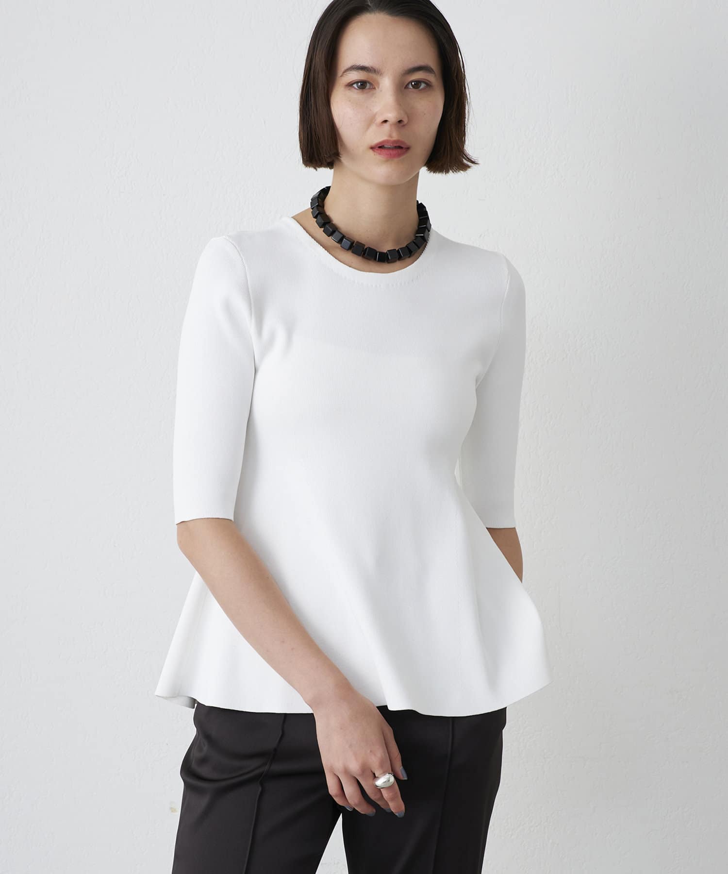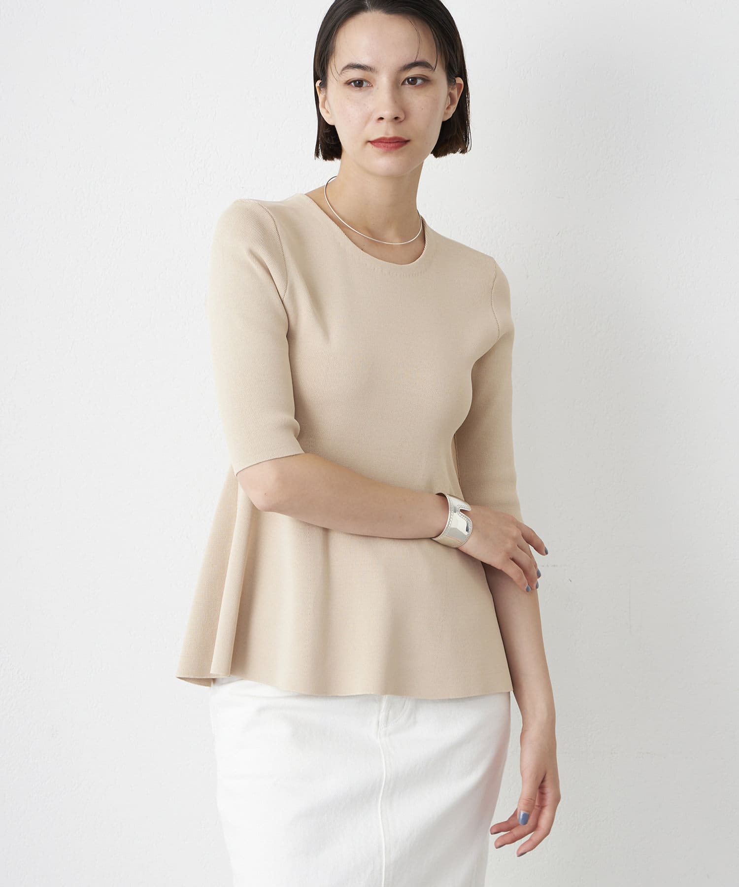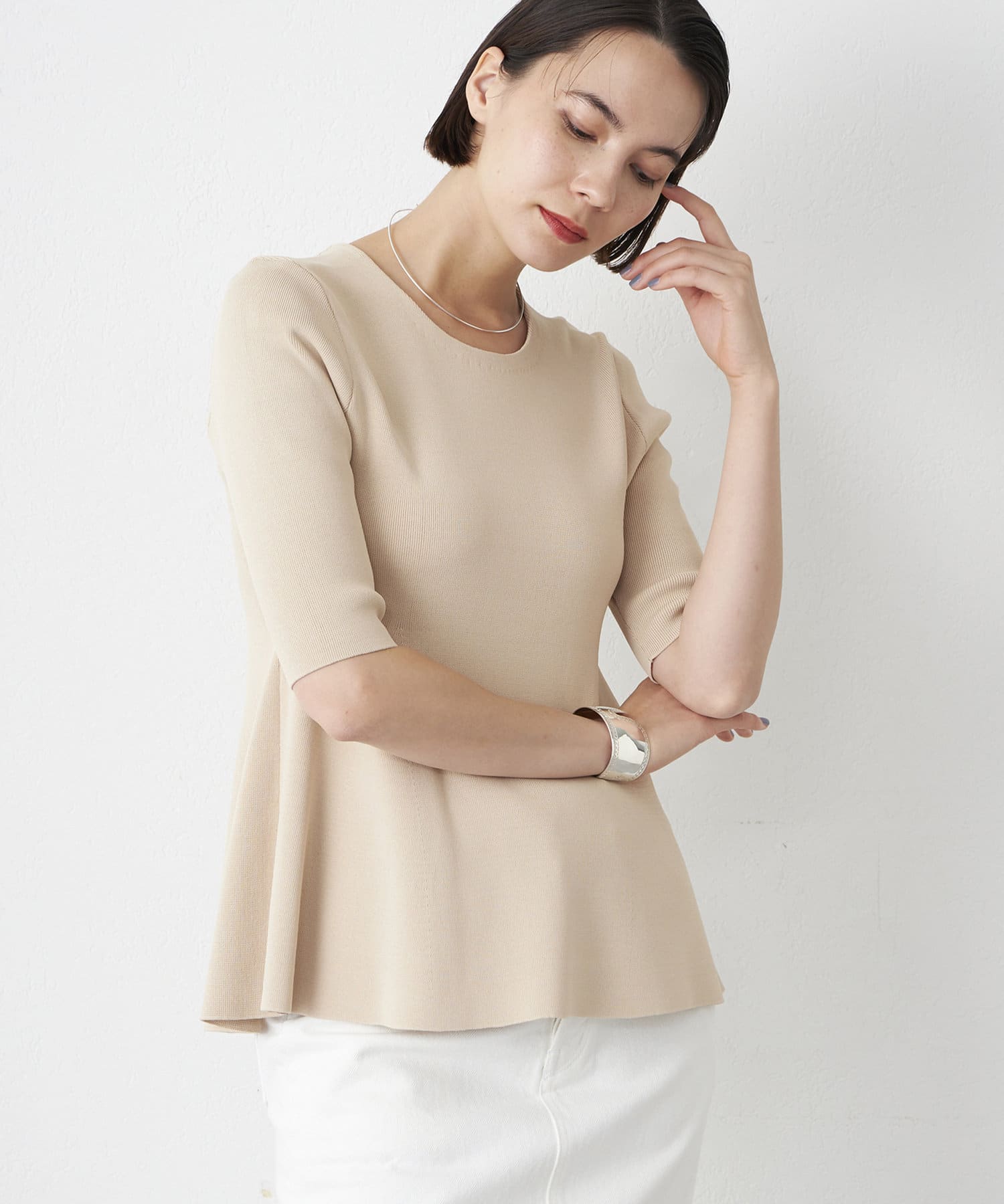 機能素材と美シルエットが嬉しい、大人のペプラムニット