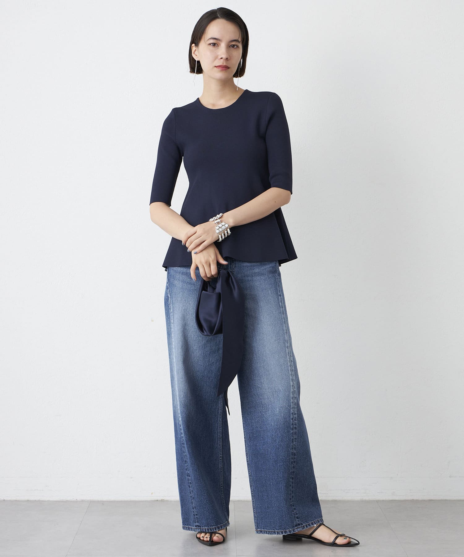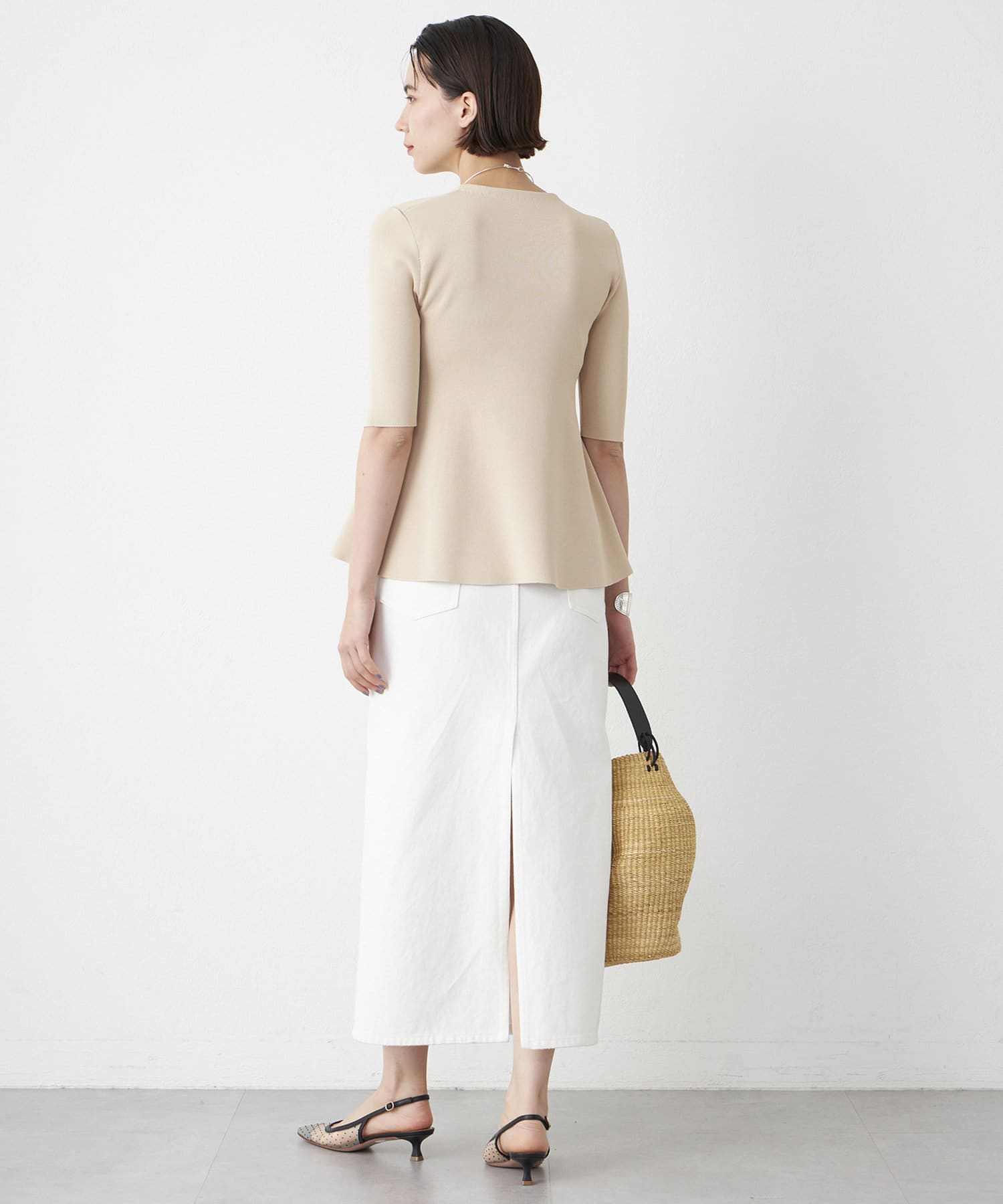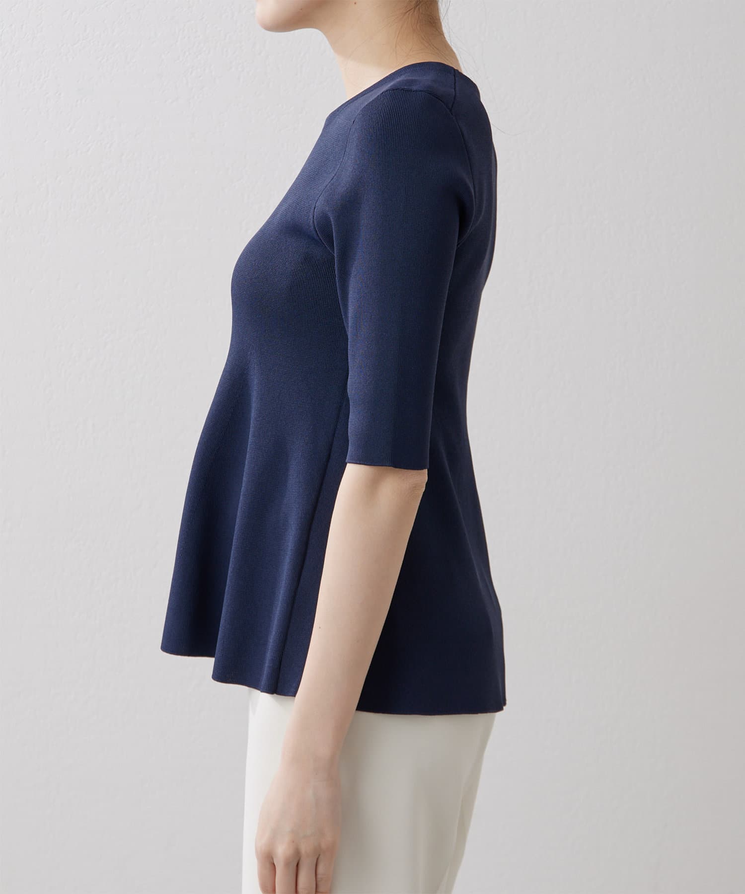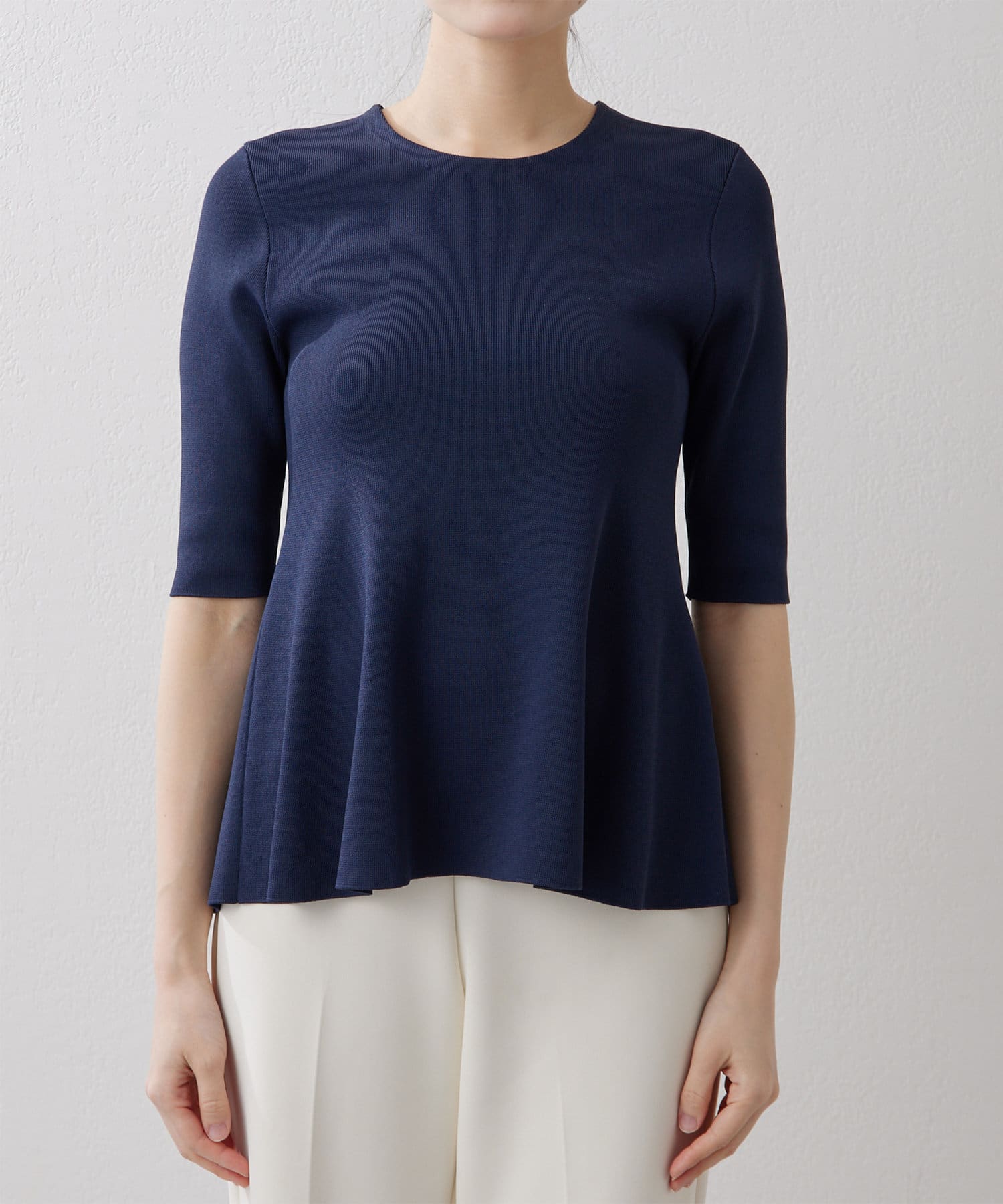 機能素材と美シルエットが嬉しい、大人のペプラムニット