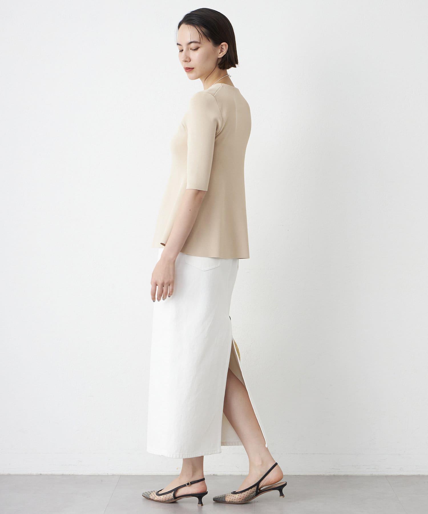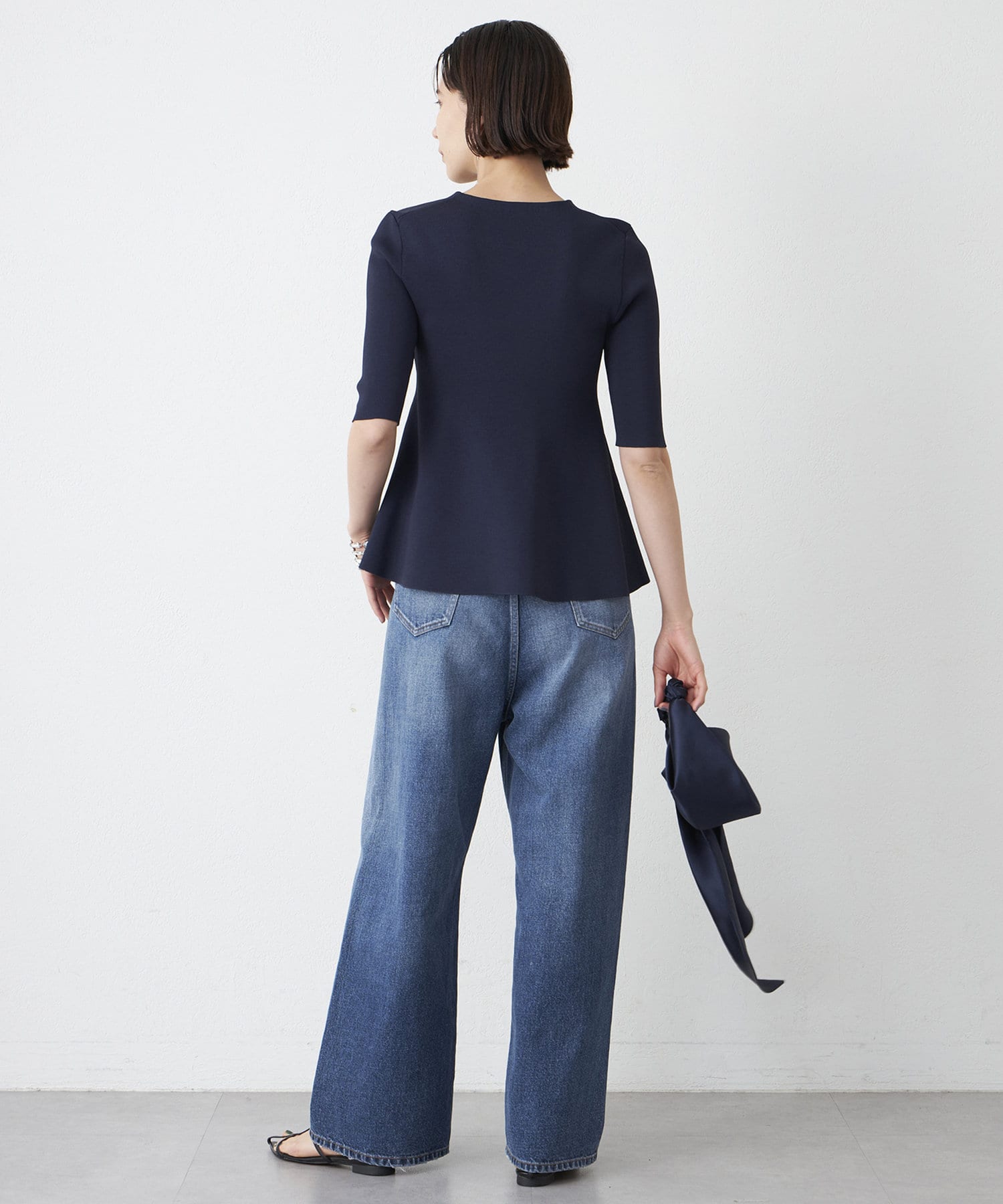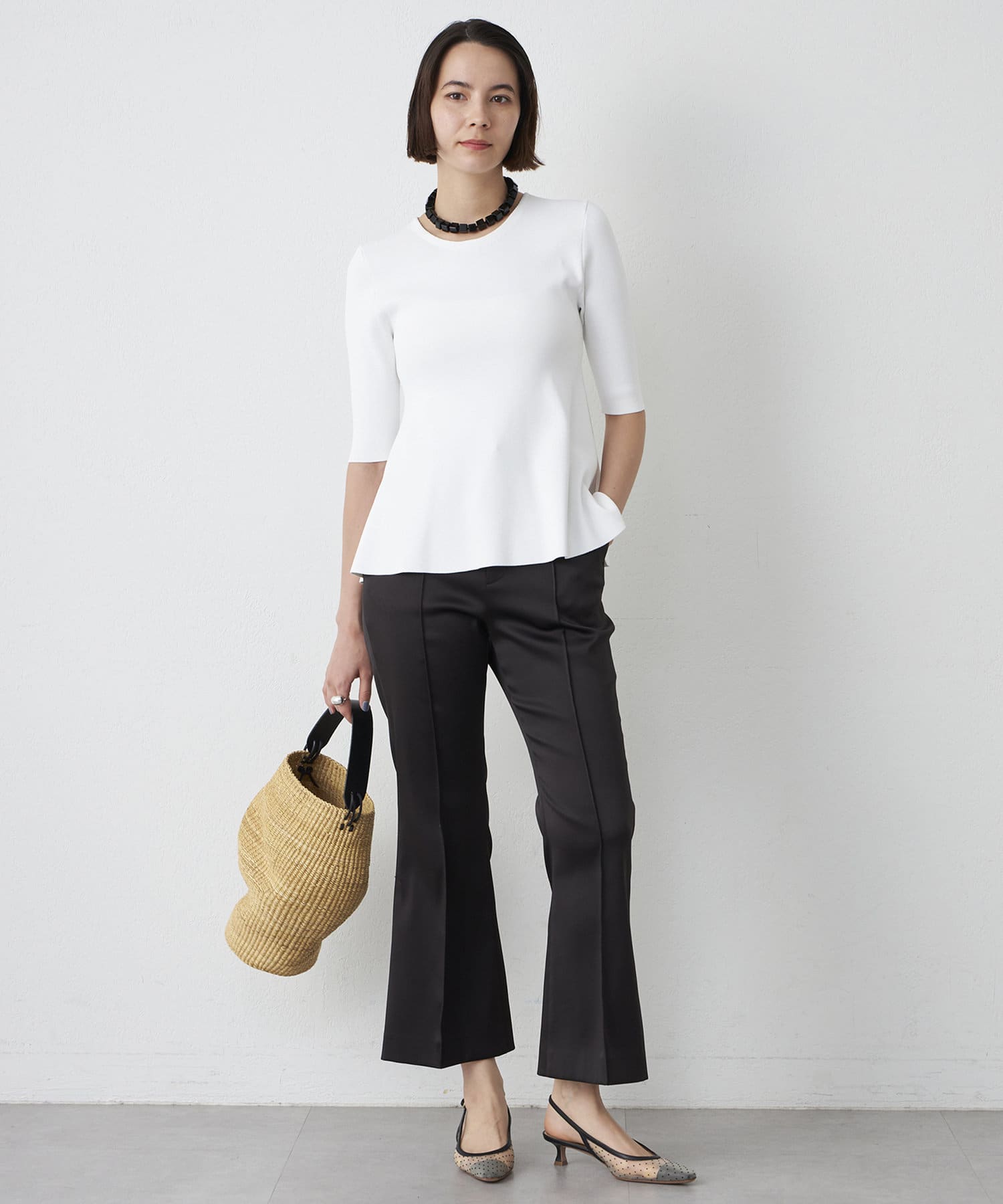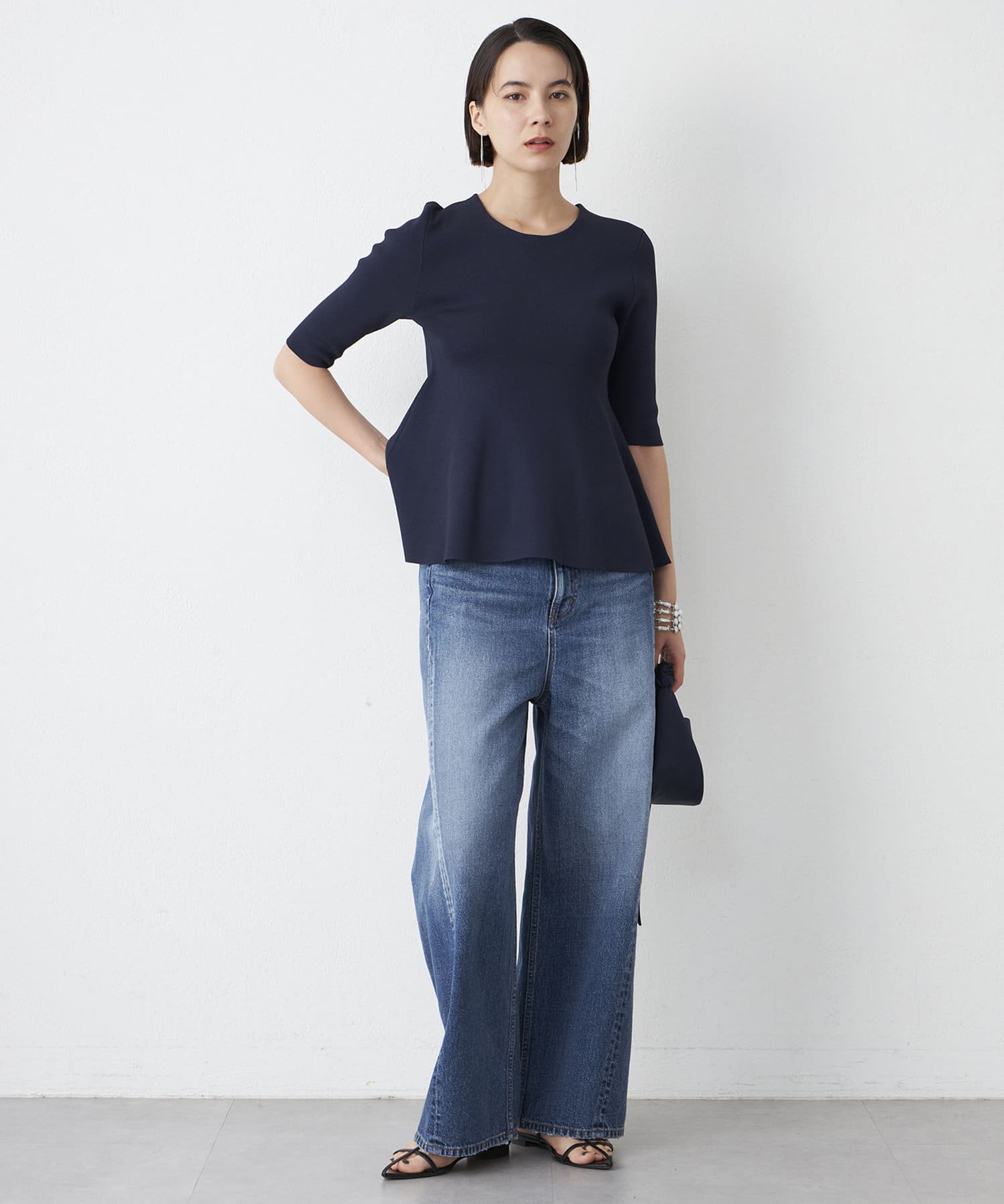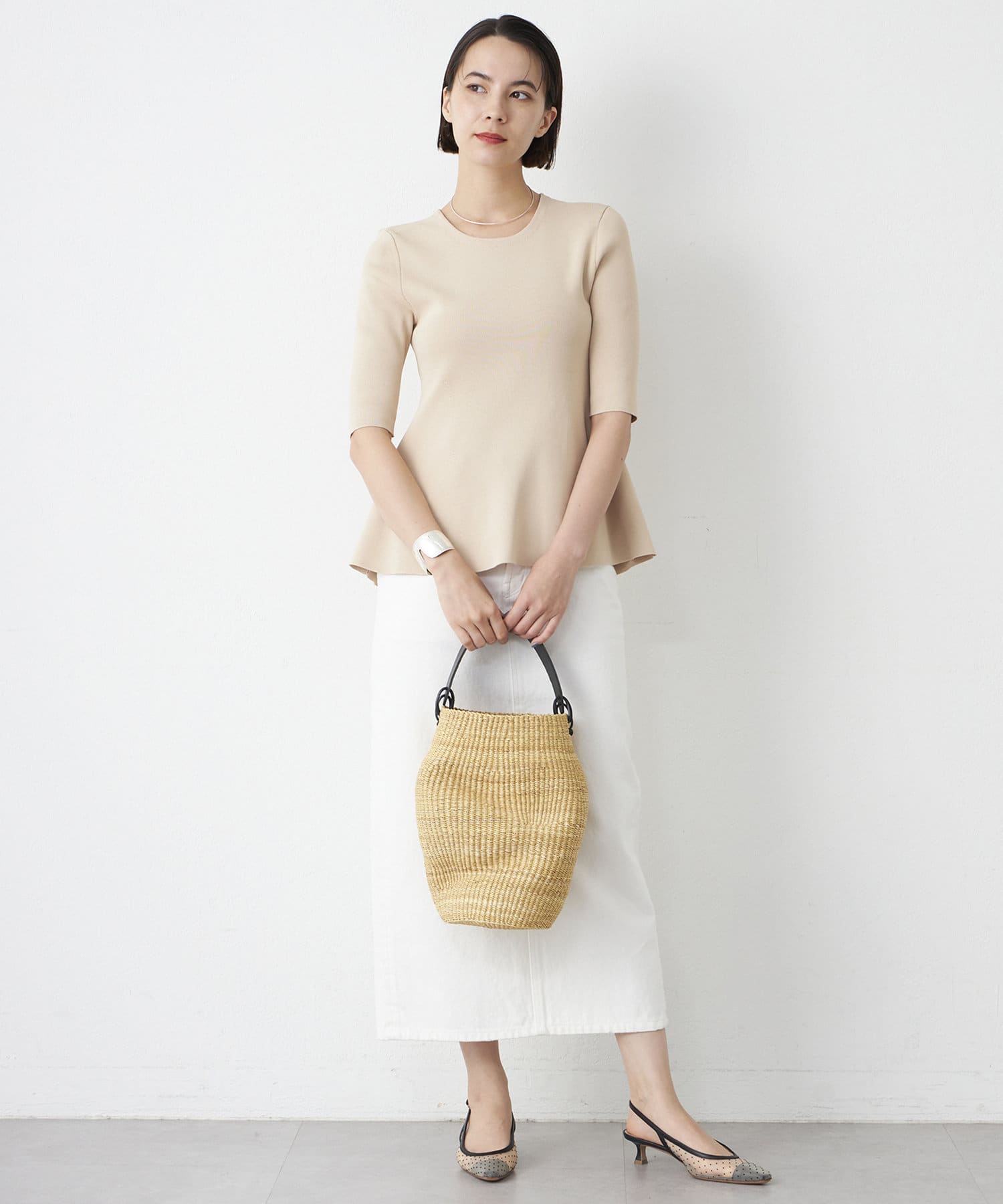 機能素材と美シルエットが嬉しい、大人のペプラムニット