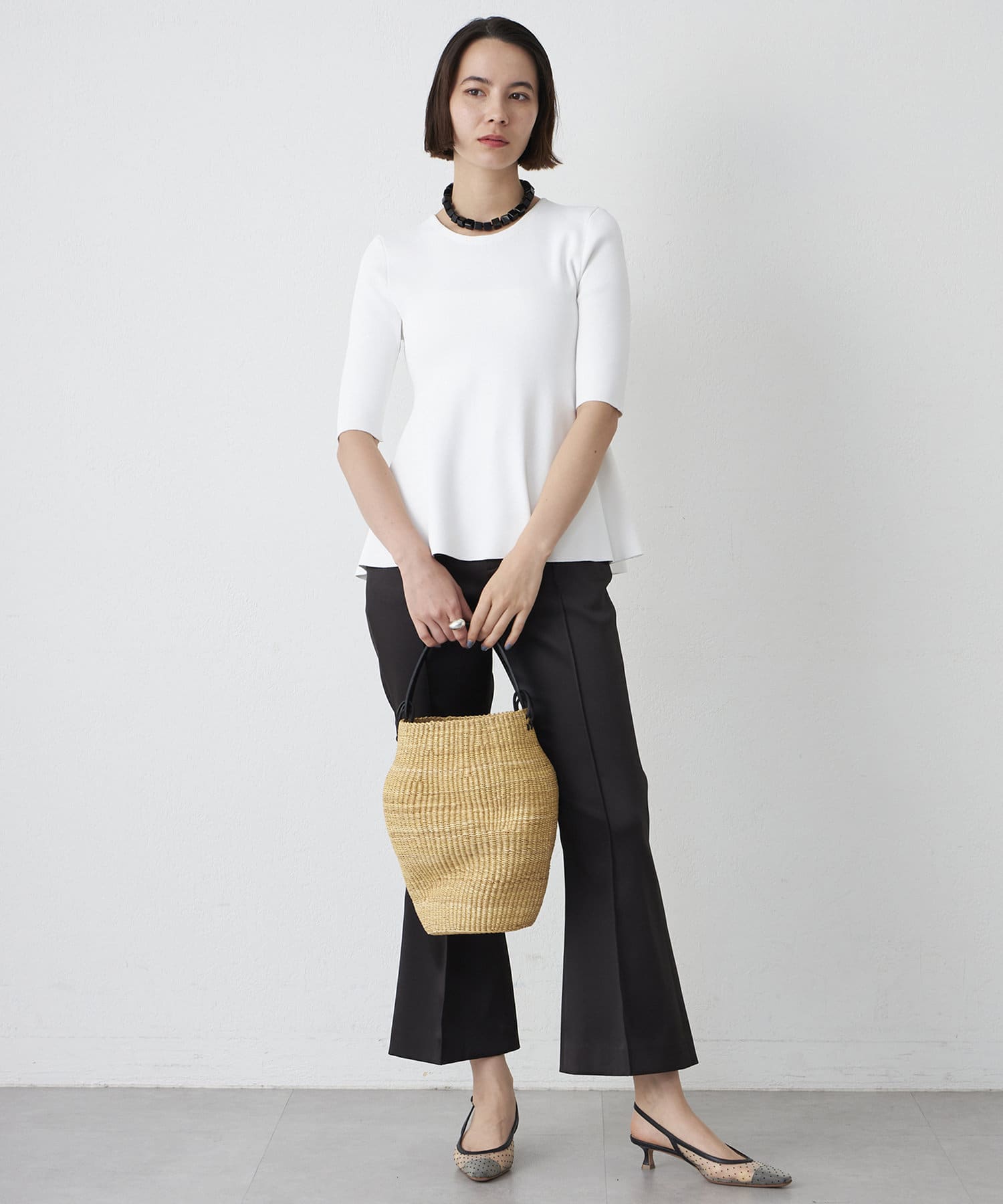 ■ペプラムシルエットが女性らしいニットプルオーバー。