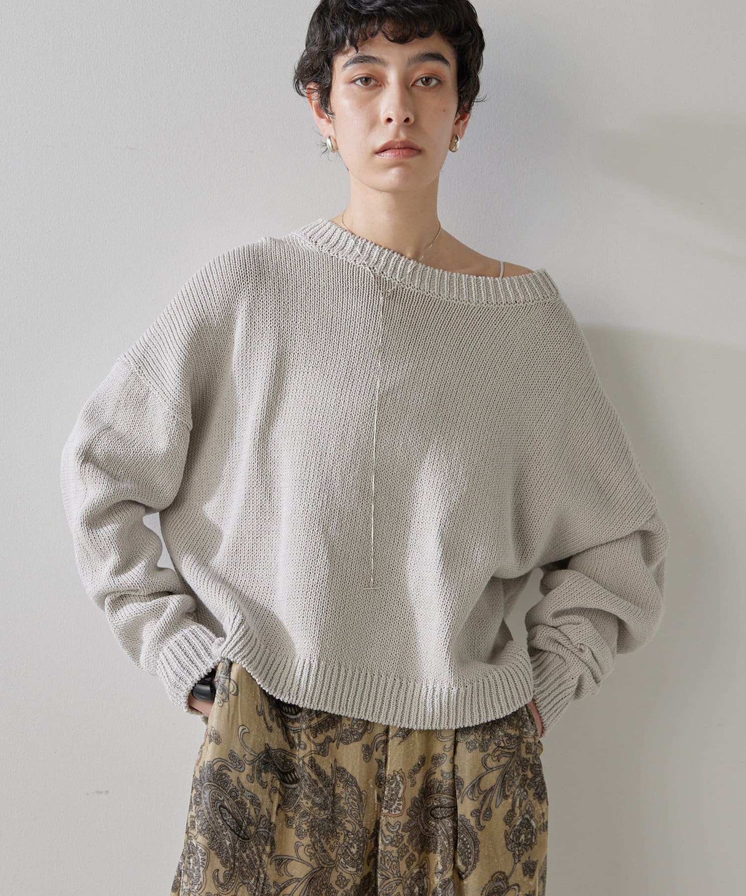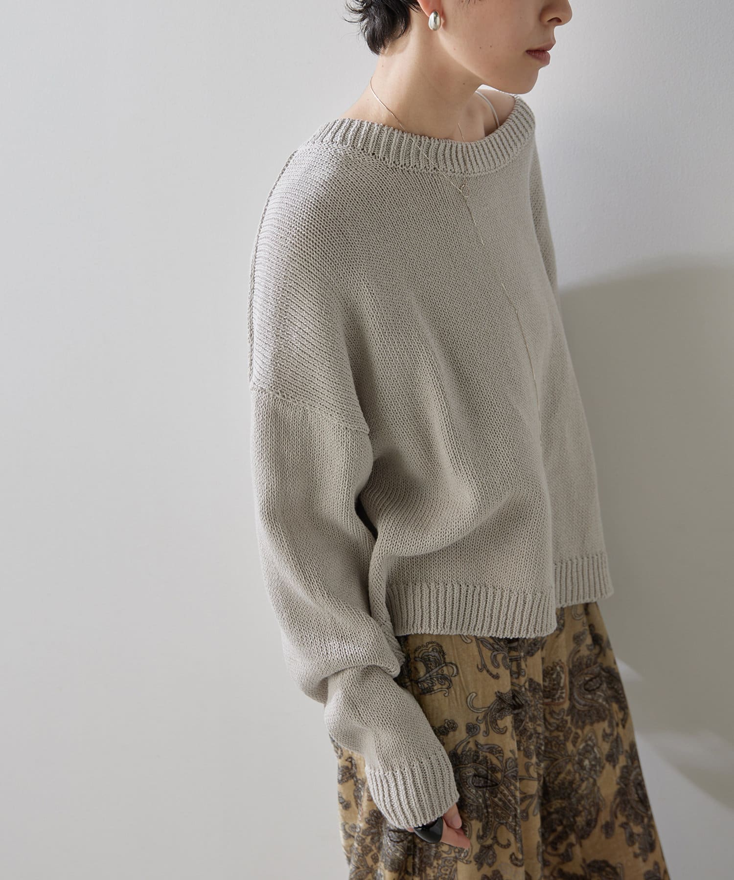 ■ドライ感のある編み地がポイントのニットプルオーバー。