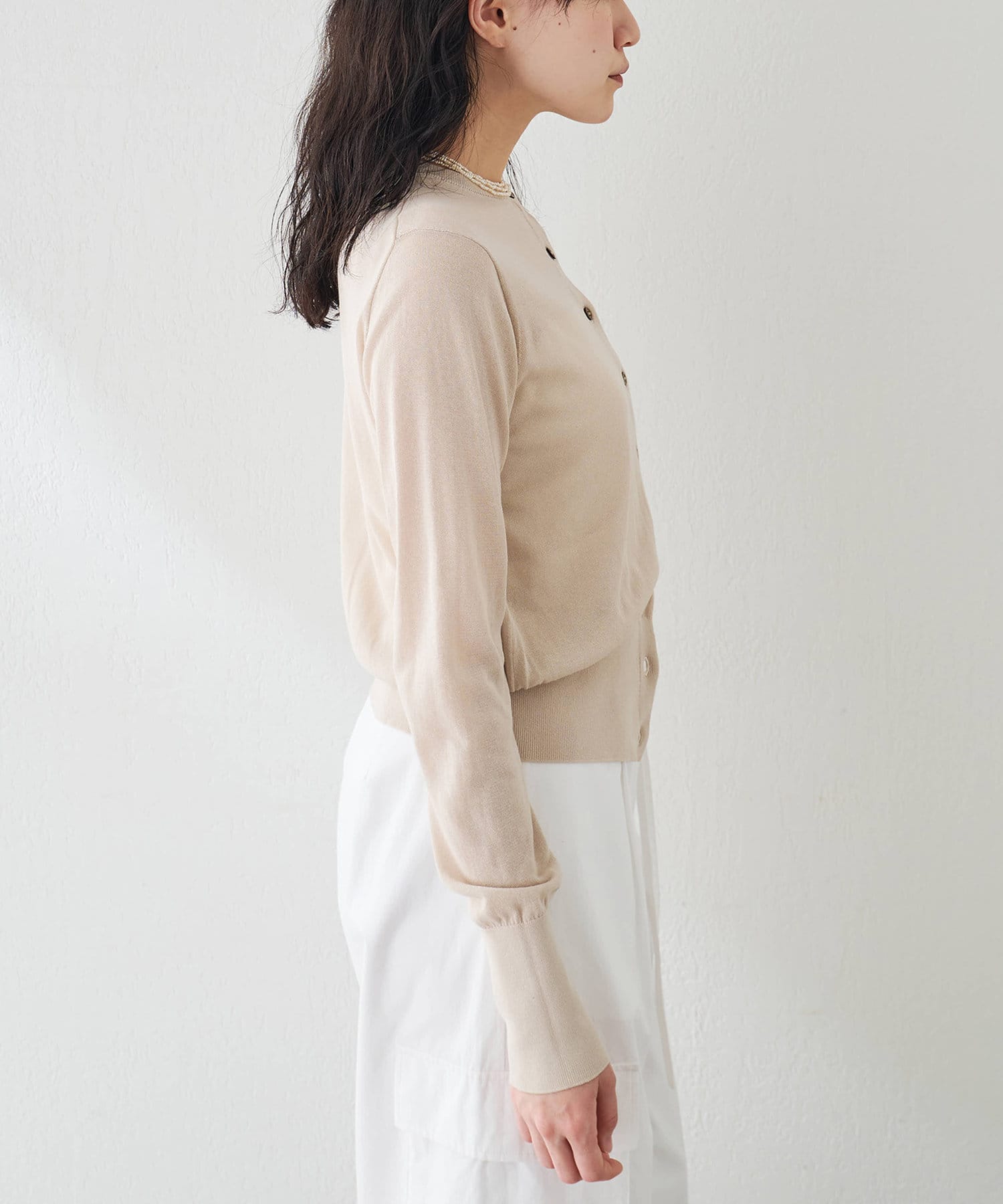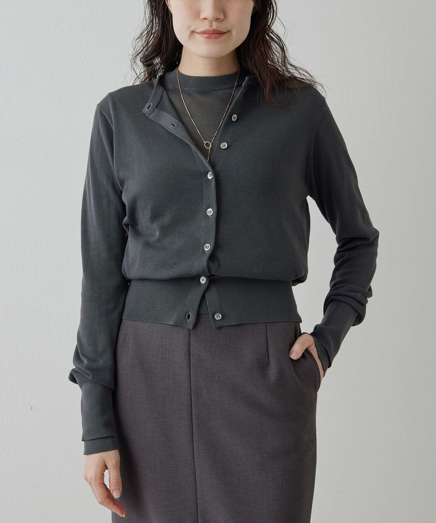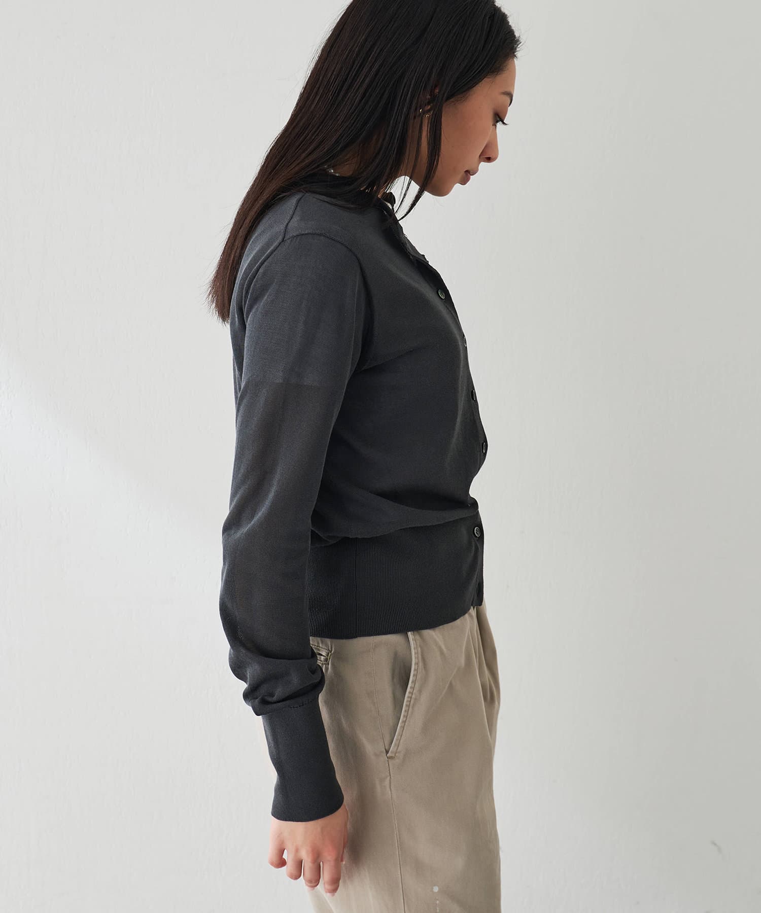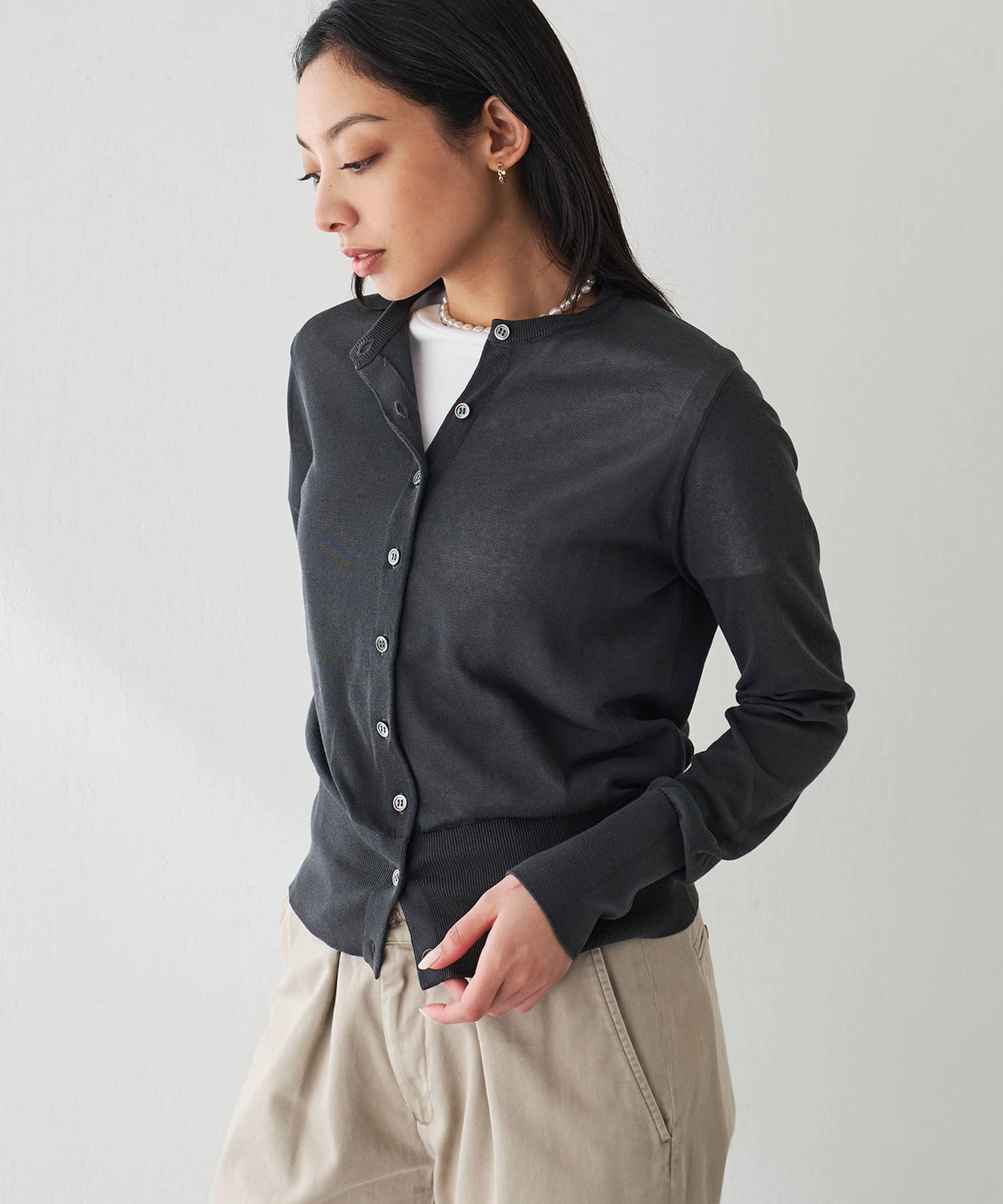 ■程よいシアー感と清涼感のある素材の風合いで軽やかに楽しめる一枚。