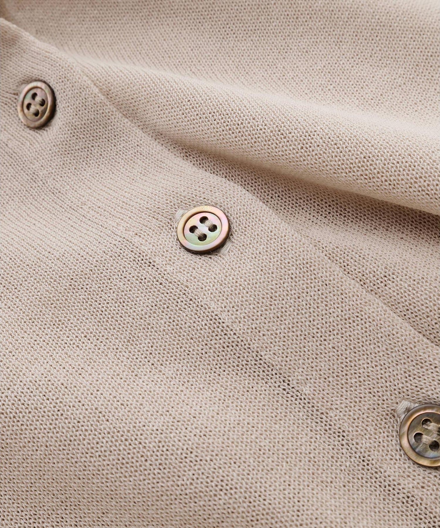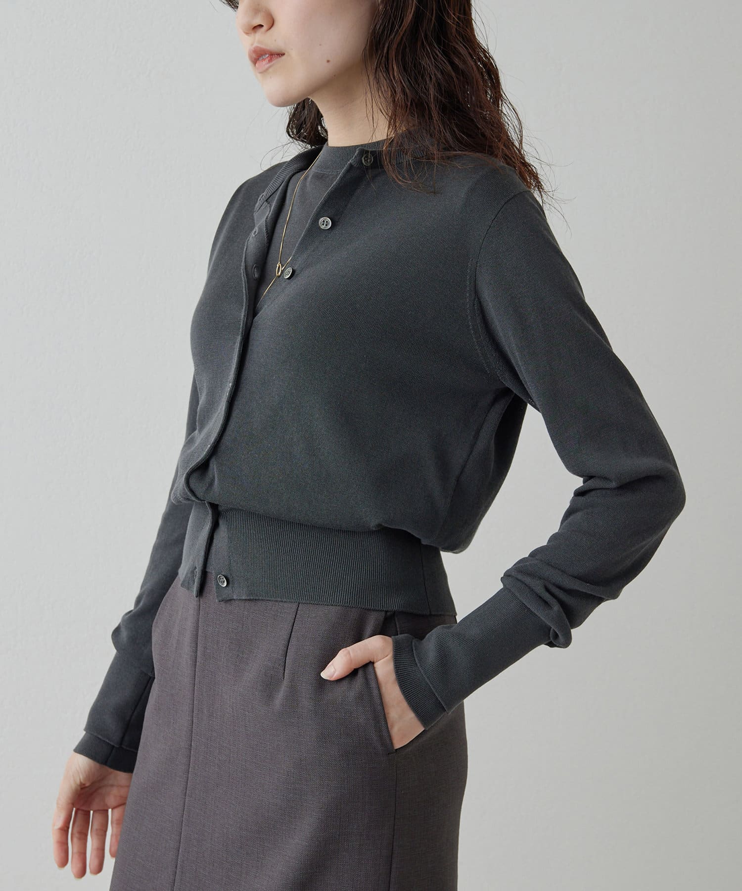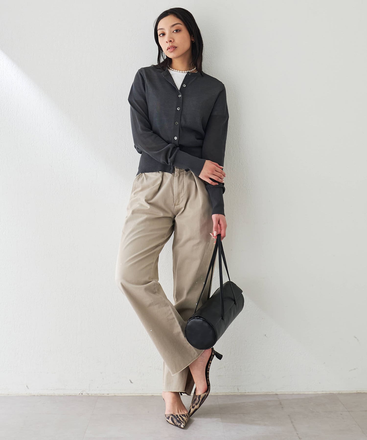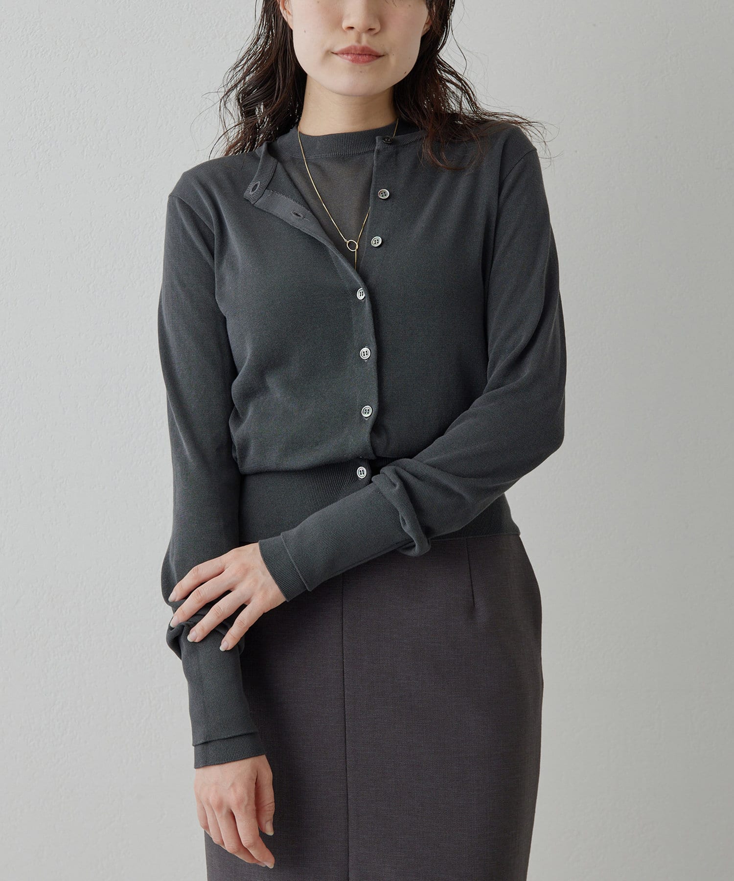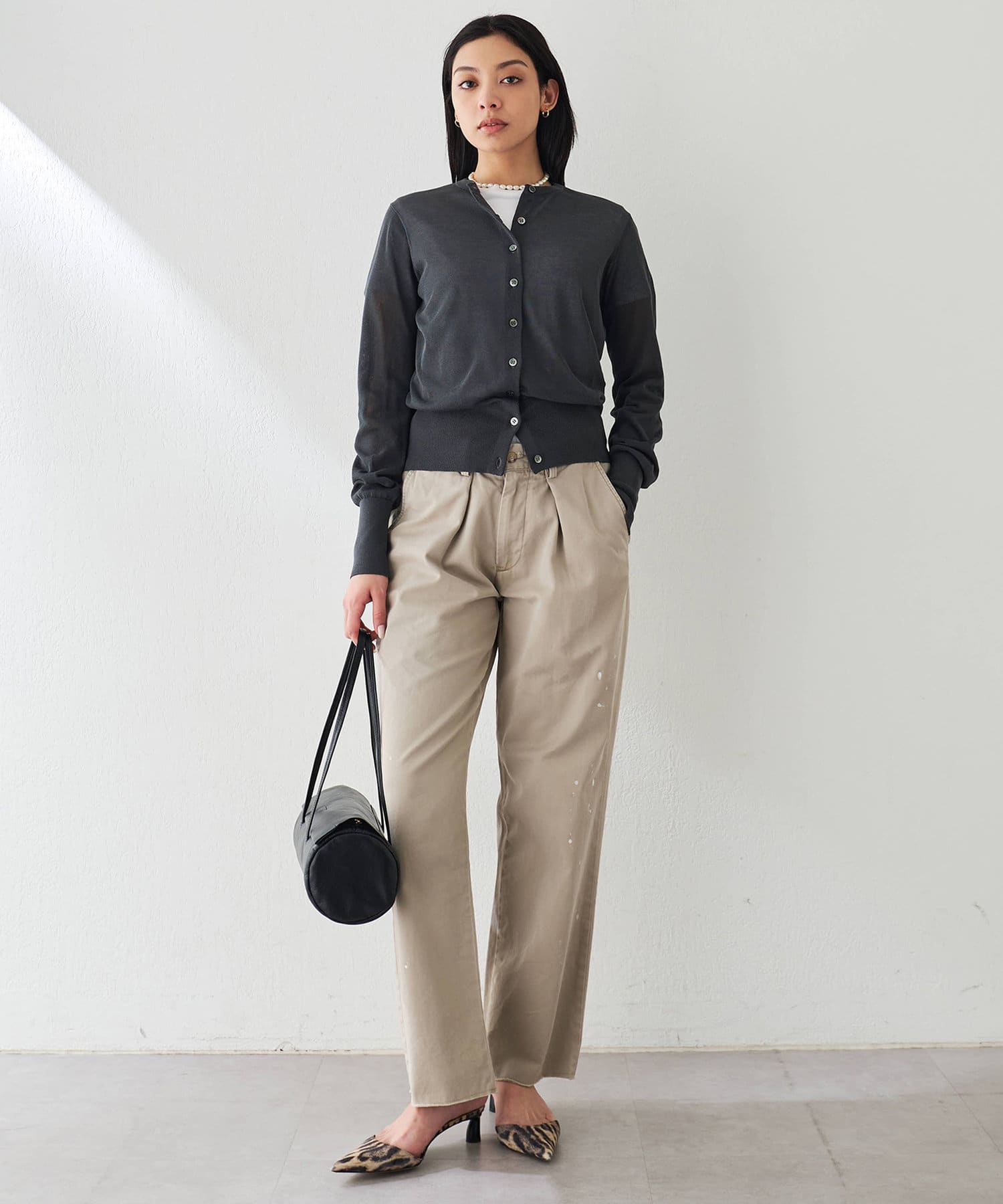■程よいシアー感と清涼感のある素材の風合いで軽やかに楽しめる一枚。