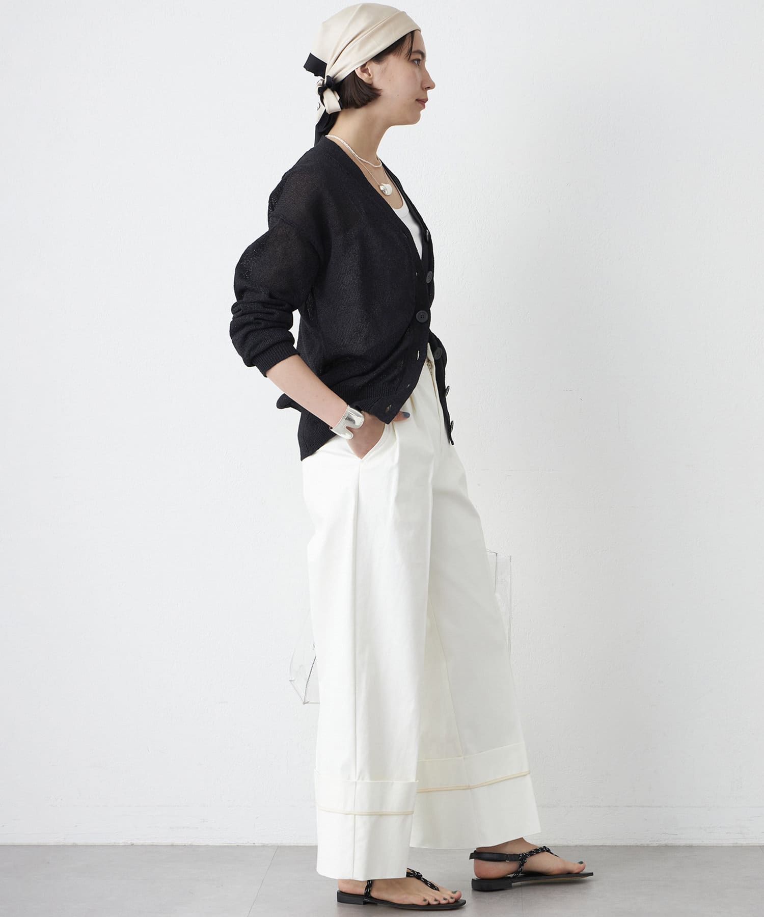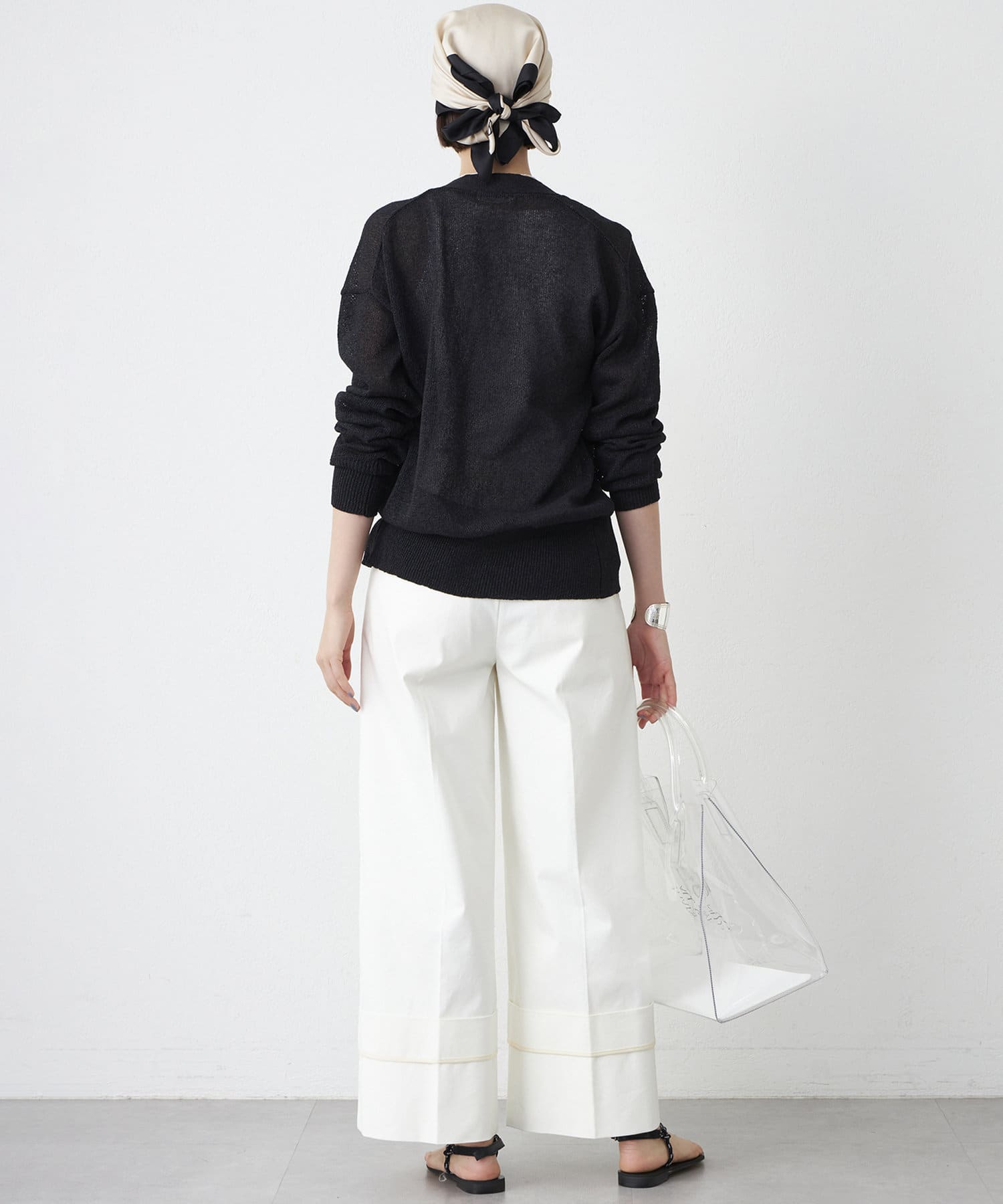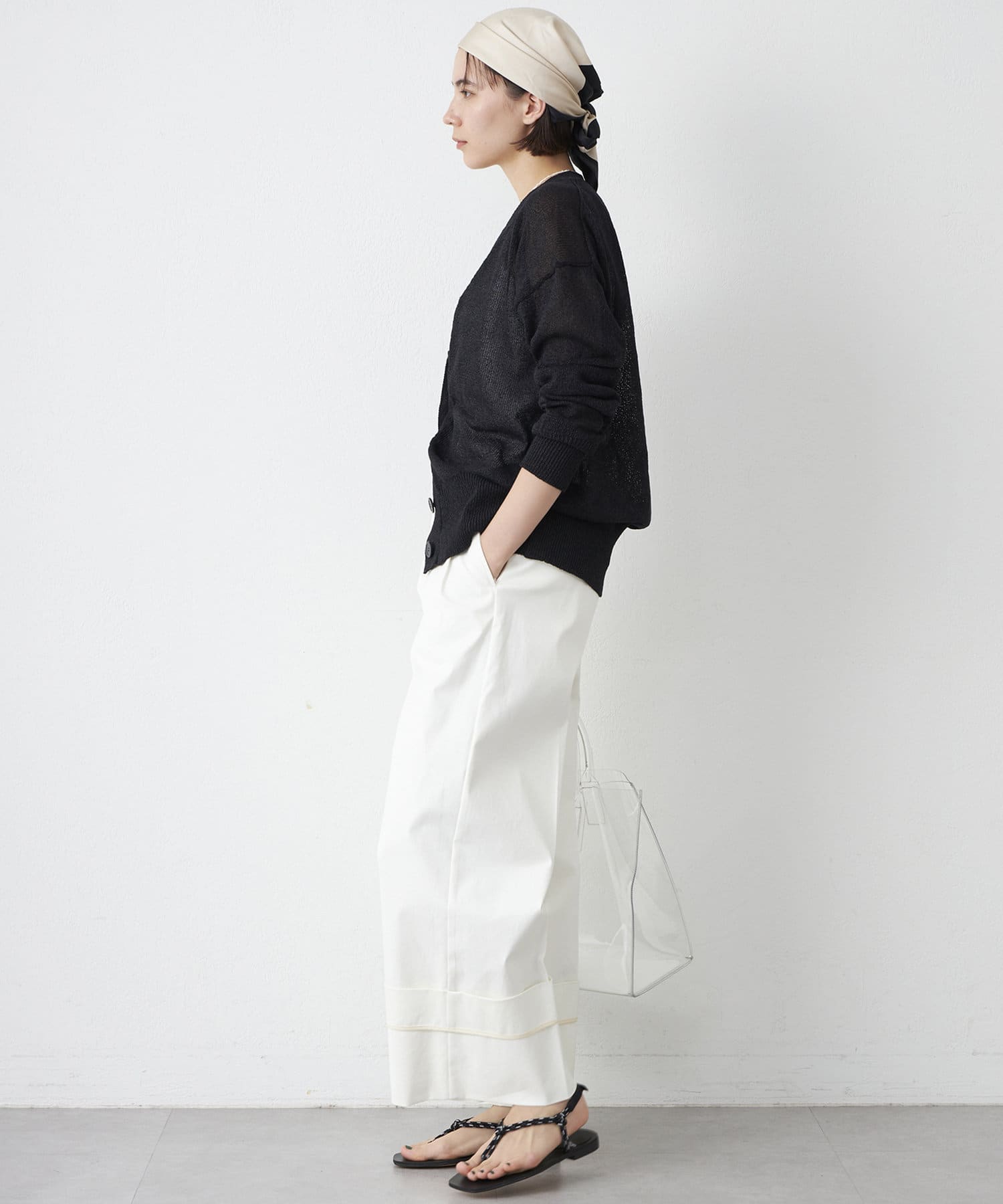 ■ボタンを留めてプルオーバーのように楽しんだり、季節の変わり目の軽羽織りとしても重宝する着回しアイテム。