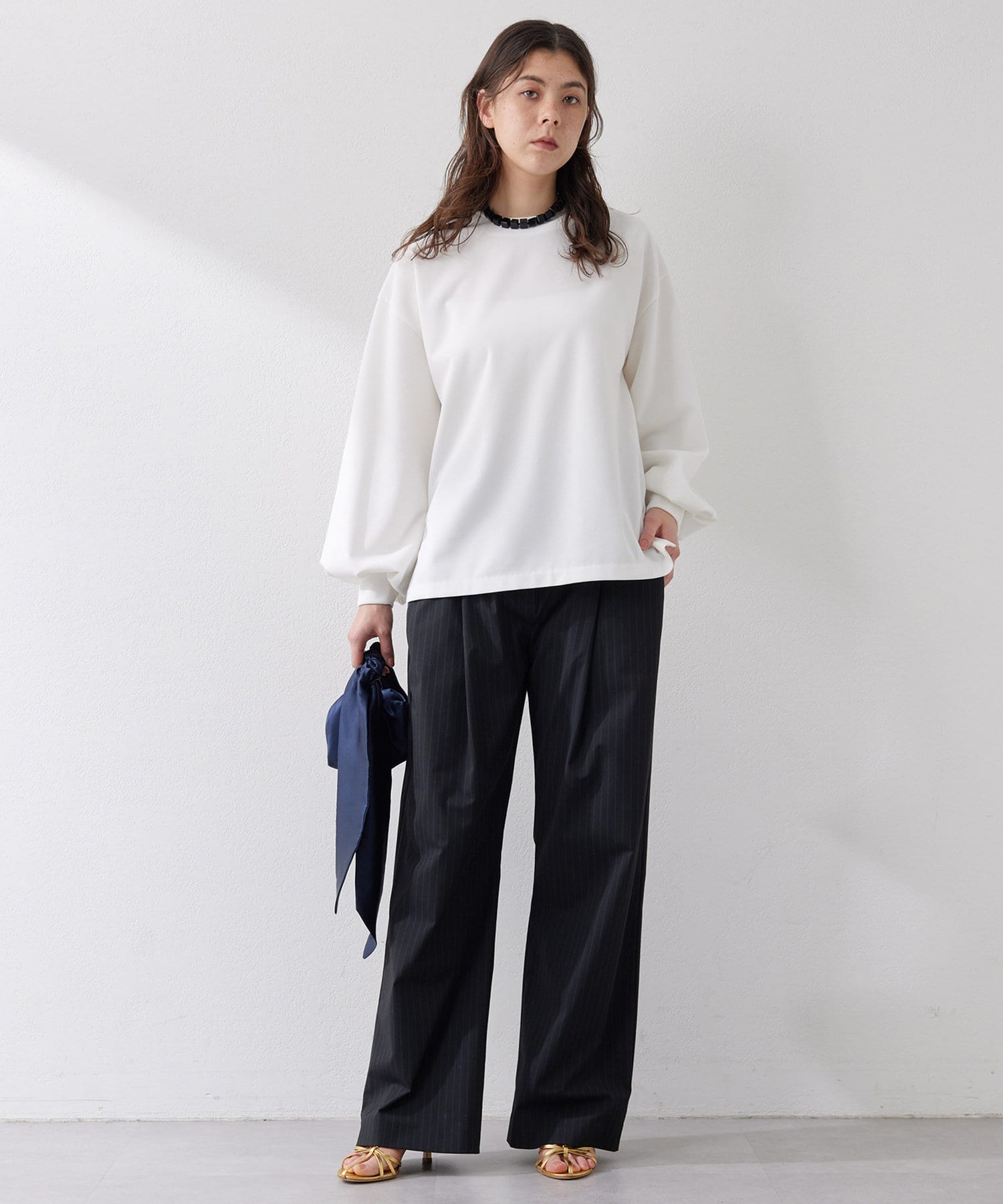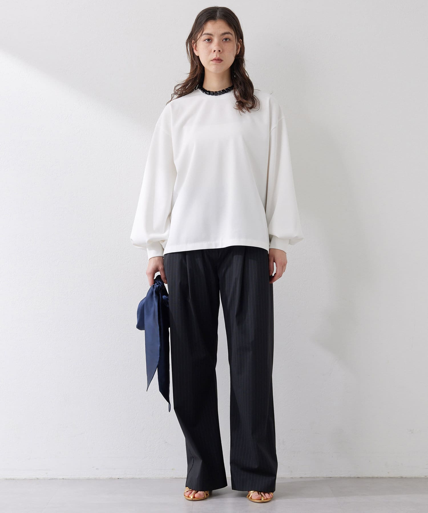 ■ゆったりとしたシルエットに、袖口をパフスリーブしてほんのり甘さの残る印象に。