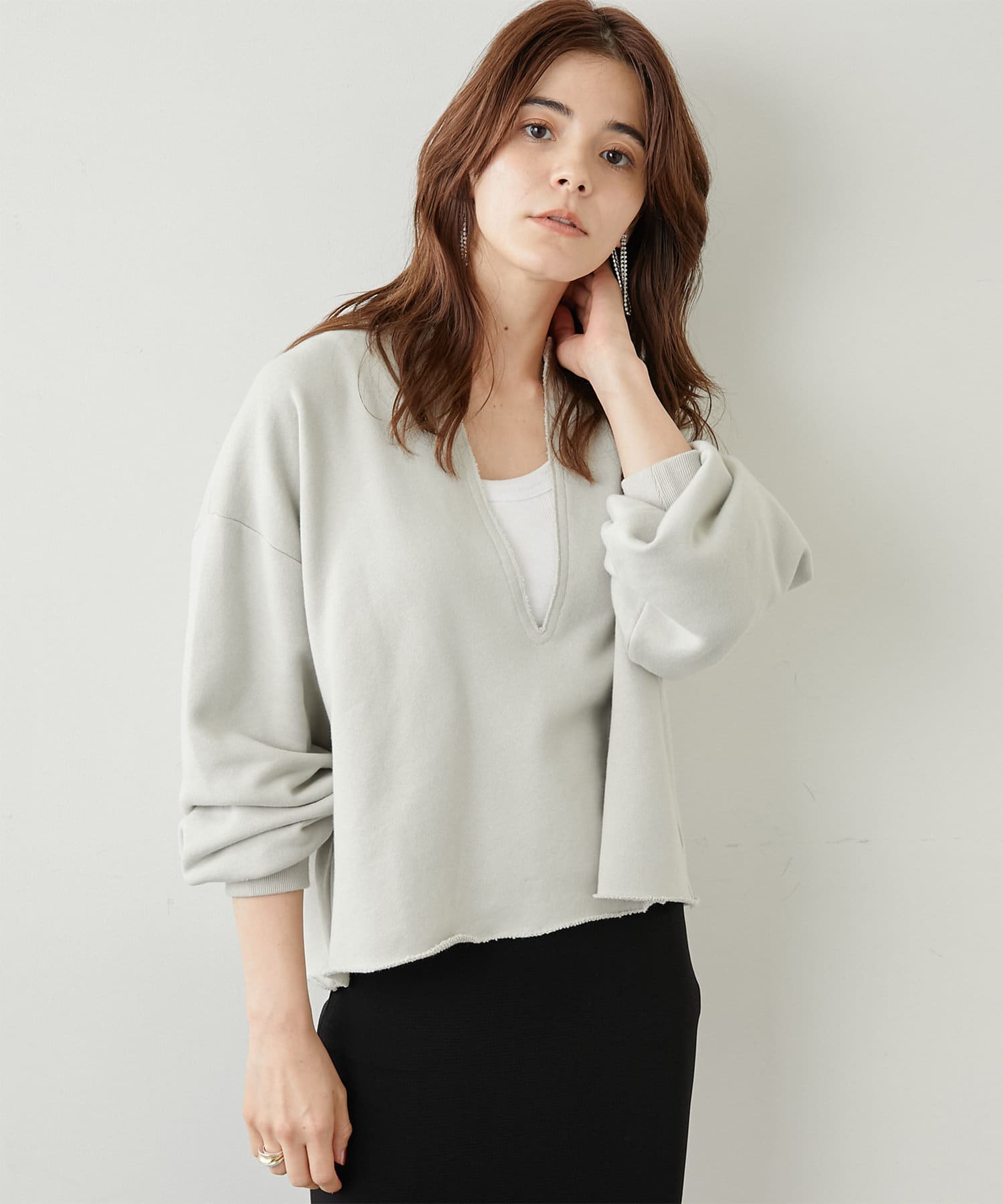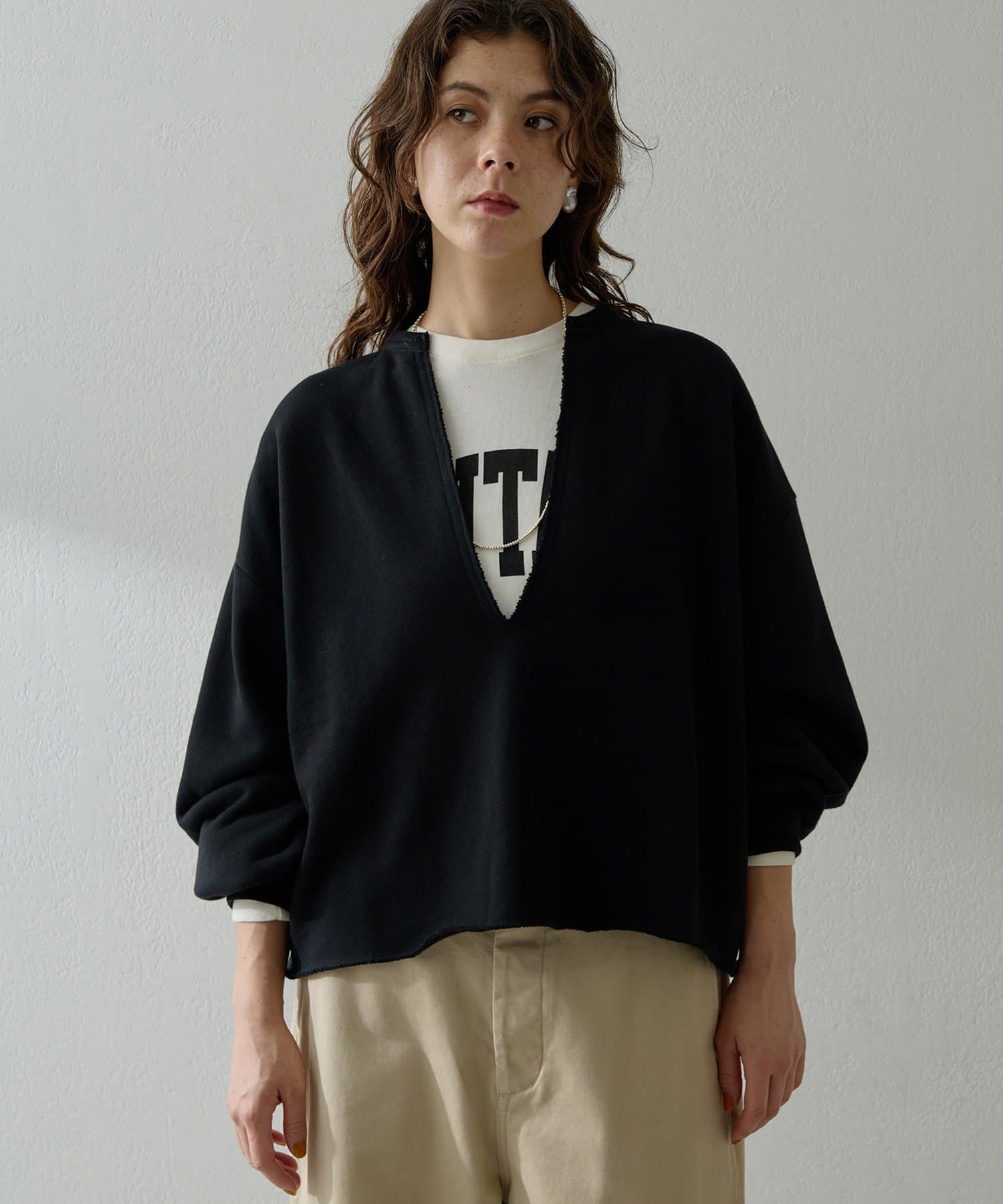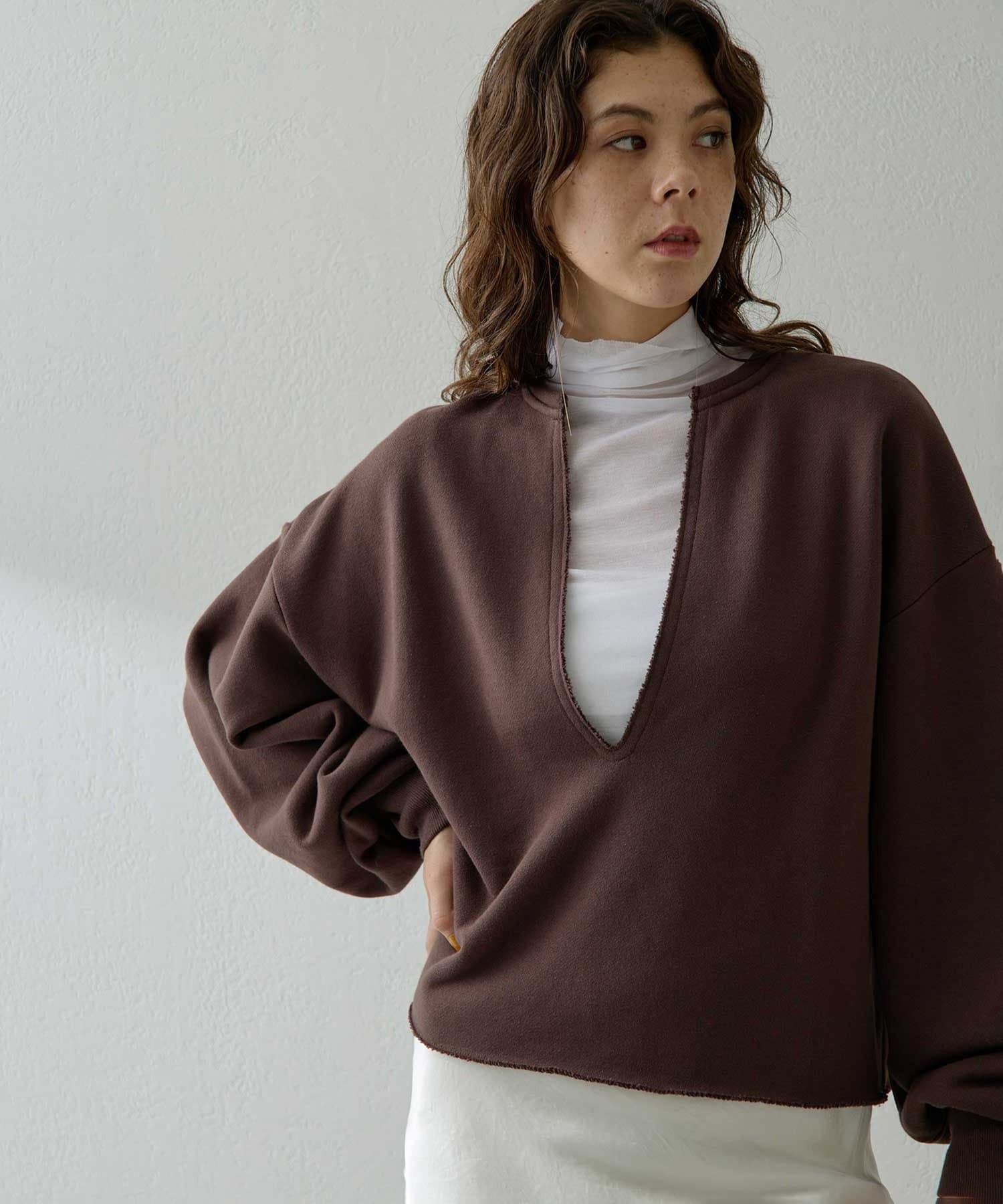 ■深めのVネックがポイントのリラクシーなスウェットプルオーバー。