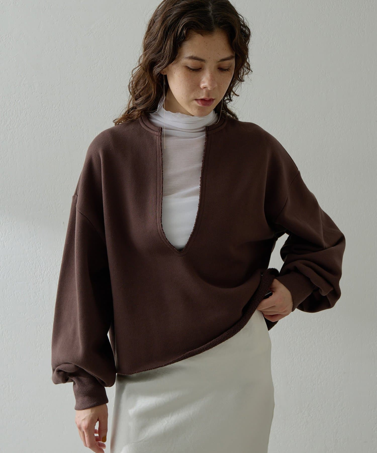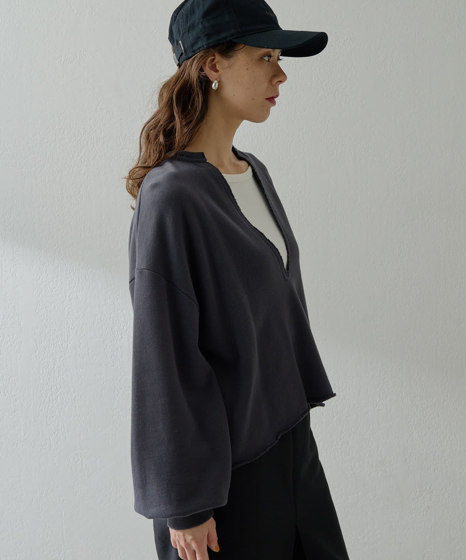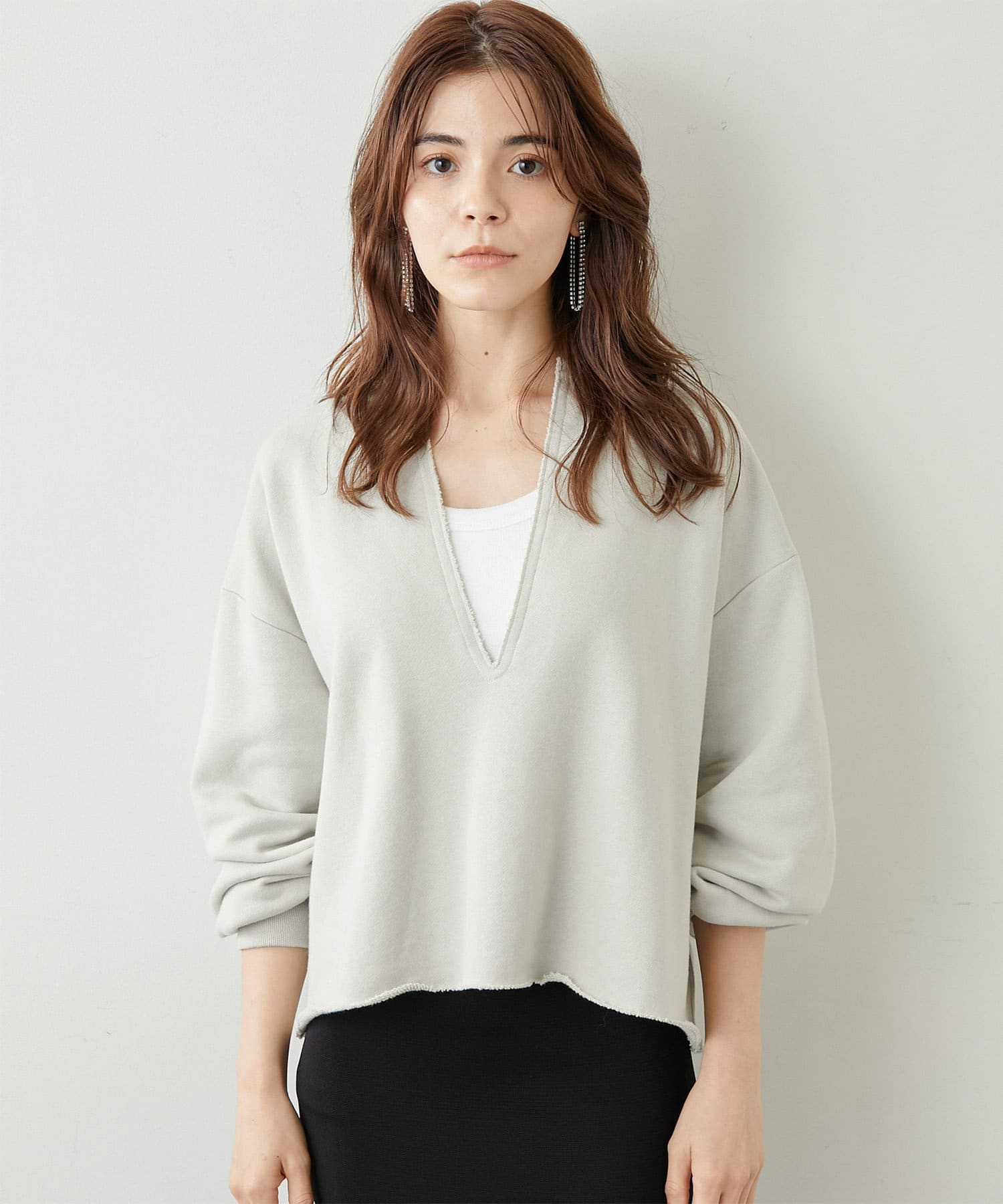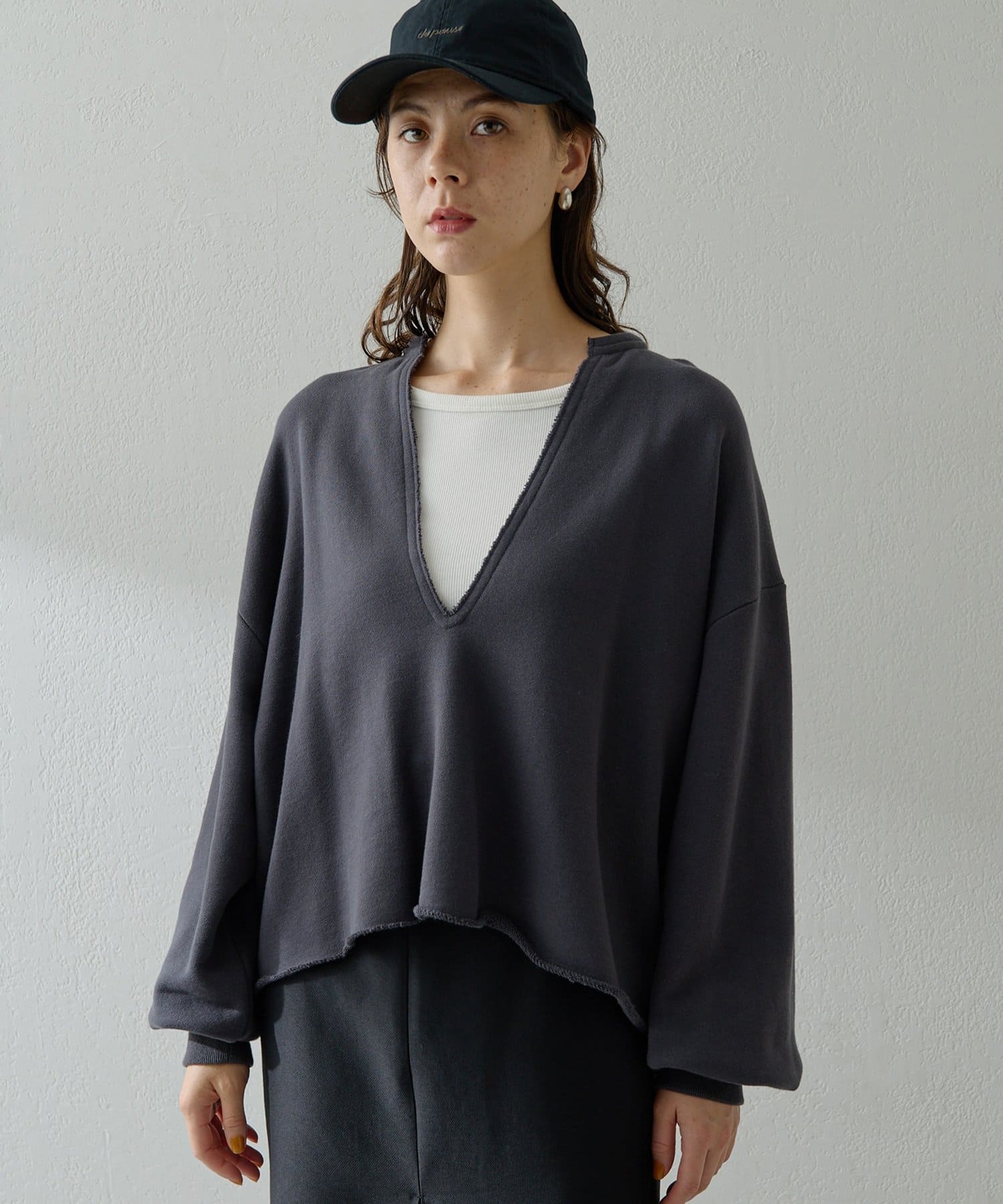 ■深めのVネックがポイントのリラクシーなスウェットプルオーバー。