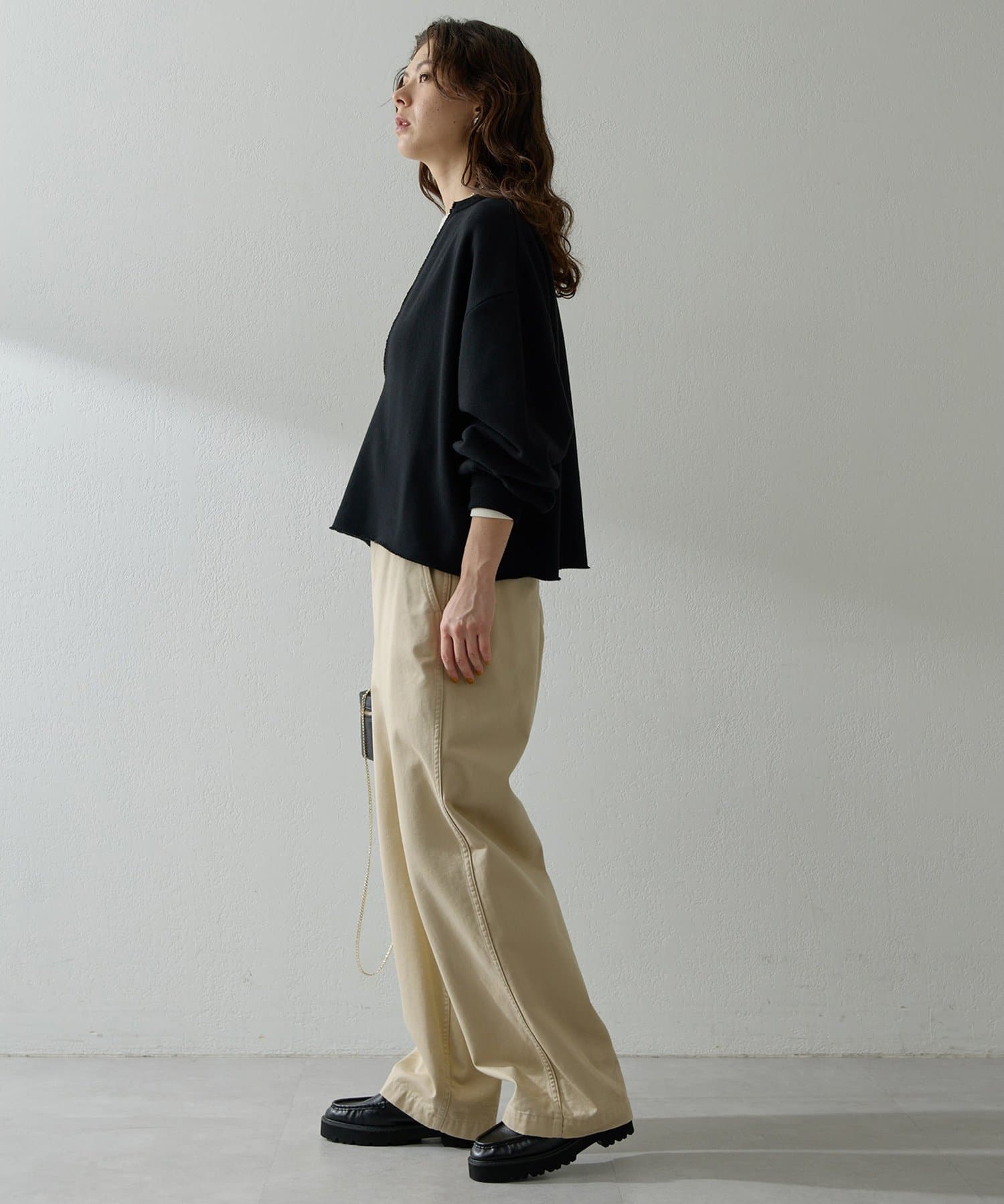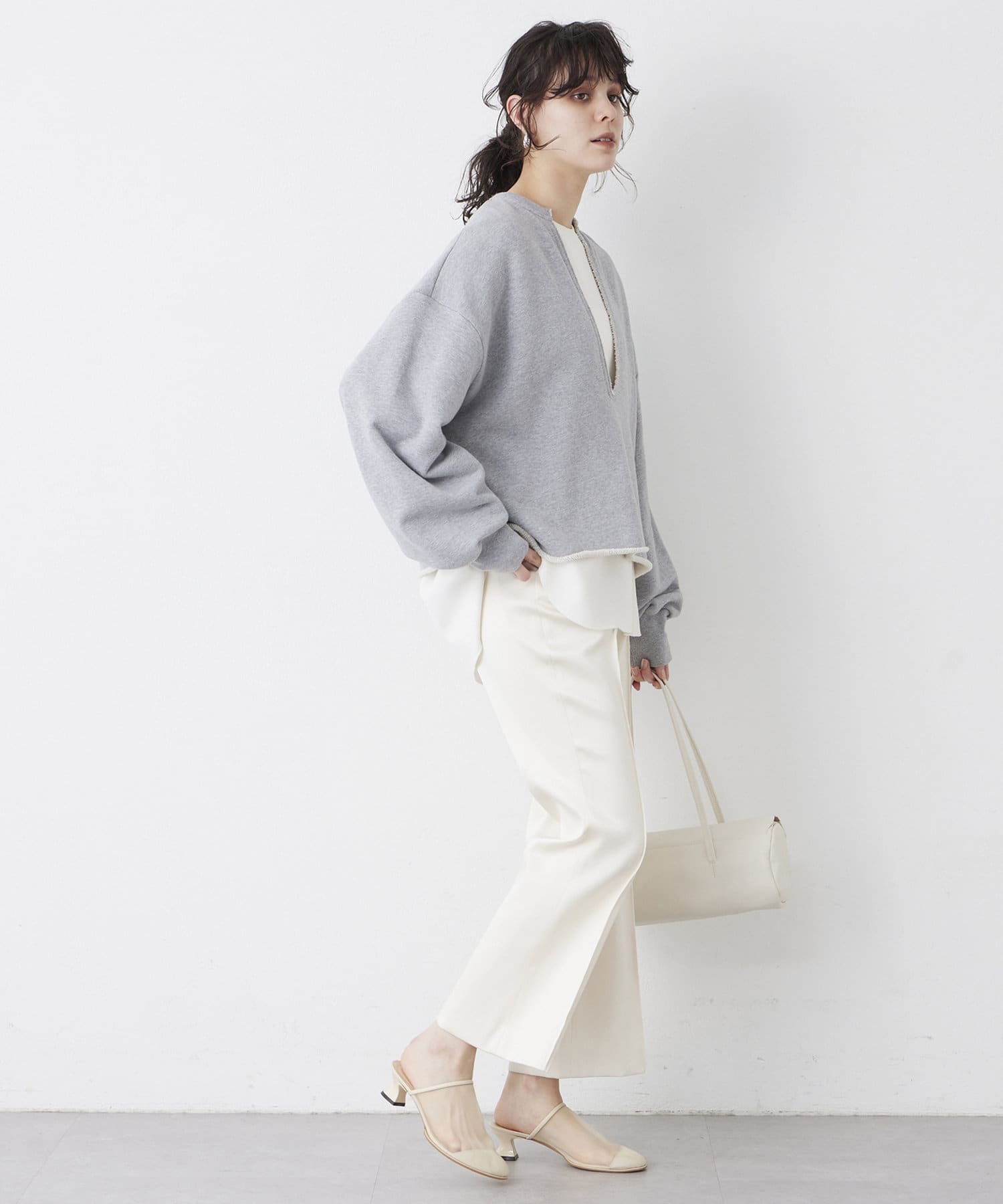 購入場所:店舗スタッフさんに一緒に着てみて下さいと言われ、着てみて一目惚れ!(勧めてくれてありがとうございました♥)この商品の色んなスタッフさんのコーデは見ていましたか、スウェットの切りっぱなしの処理がほつれだしそうで、嫌だったのですが、実際着てみるとそこもこなれ感が出て良かったです。グレーを買いましたが、白も気になります。白ならオフィス行けそうです。無くなる前に買おうかなーーー。