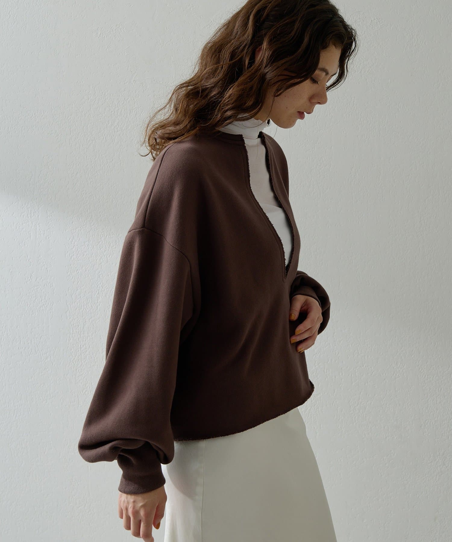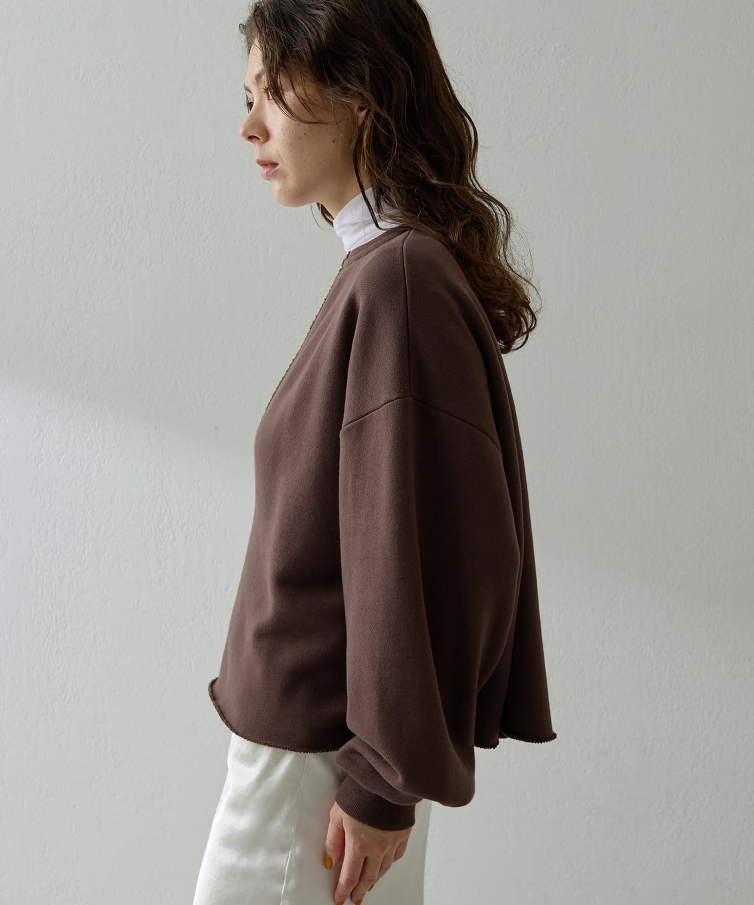 購入場所:パルクローゼット肩幅が広く、スウェット系は物によって、自分の上半身のシルエットが長方形になるタイプです。肩の切り替えや落ち感が最重要ポイントなのですが、これは本当に上半身が華奢に見えます!加えて裾の切りっぱなしな感じ,袖のたゆんとしたシルエットが絶妙です!首が詰まっておらずVネックなところも顔映えが良くなり、モデルさんのようにワンピースに重ねても、中にシアートップスを仕込んでも、ベアトップを着てヘルシーに着ても可愛いです!ボトムスも合わせるものを選ばないのでかなり着回しが効きます!とてもおすすめです◎