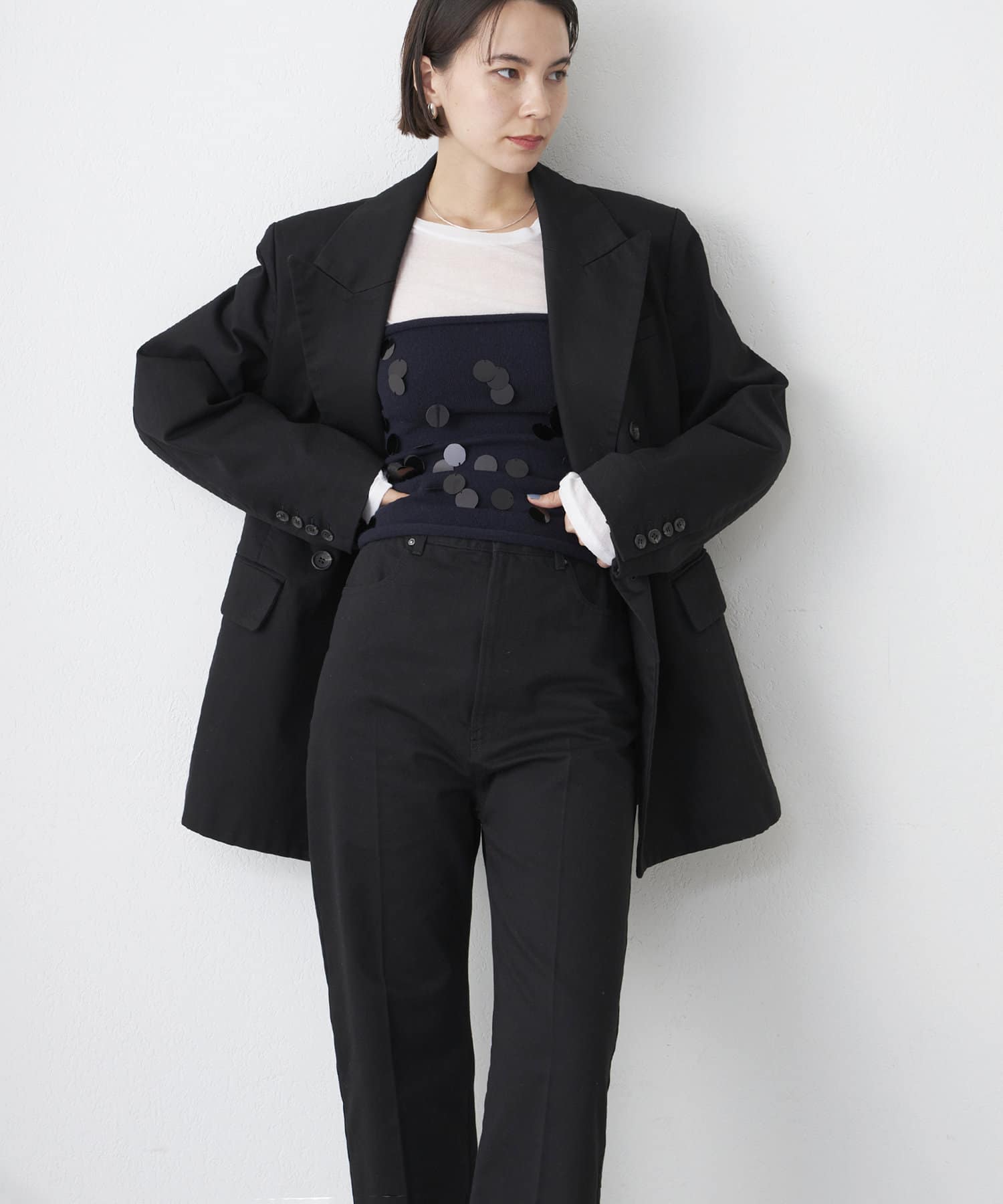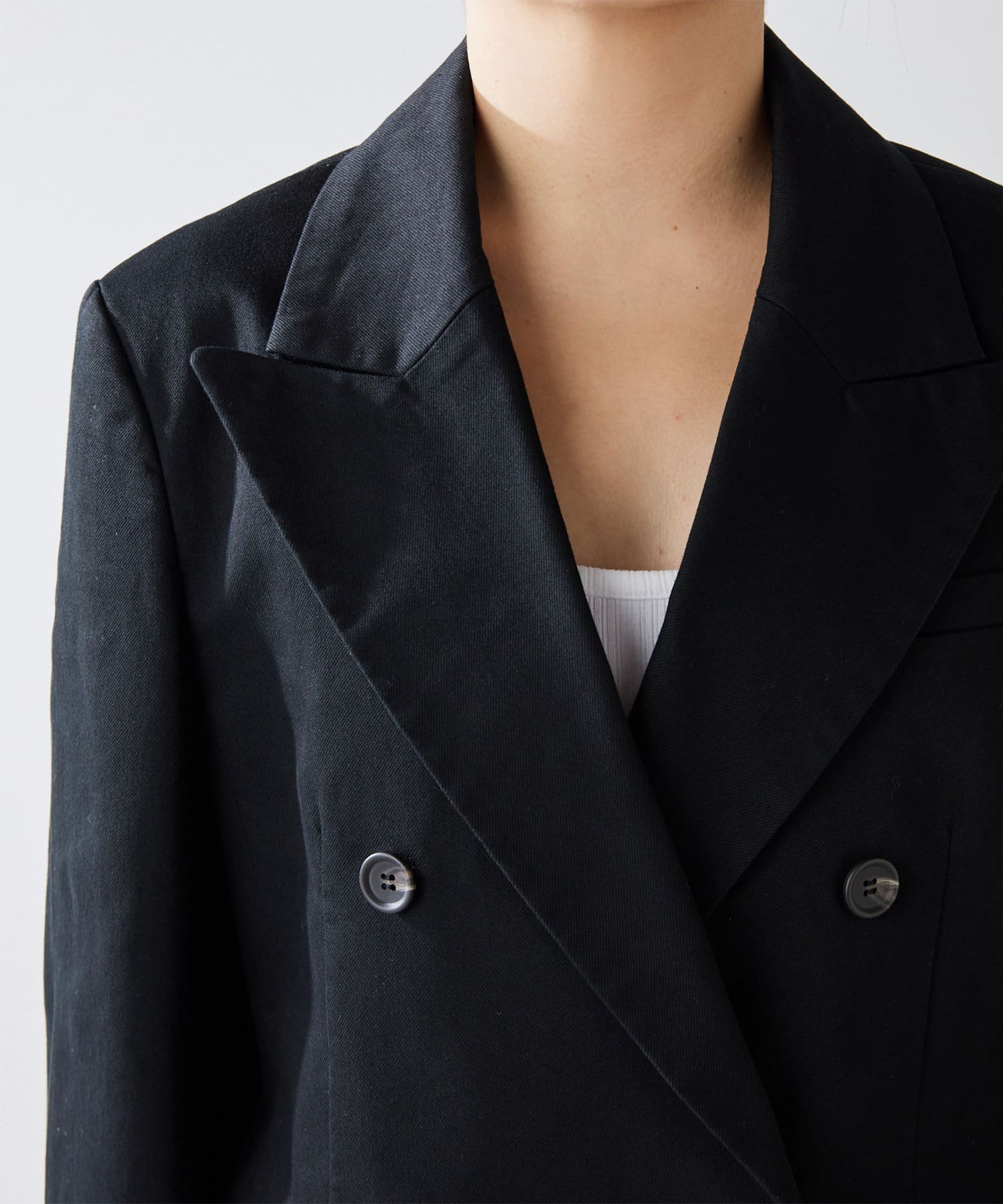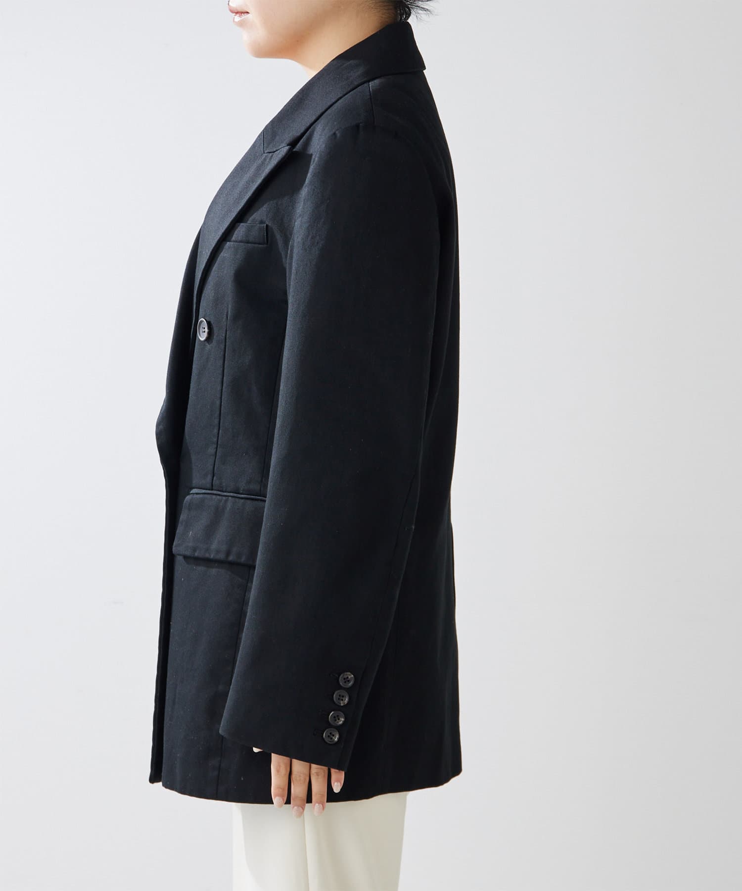 ■大きめのピークドラペルがメンズライクな雰囲気のジャケット。