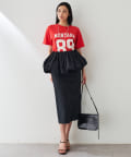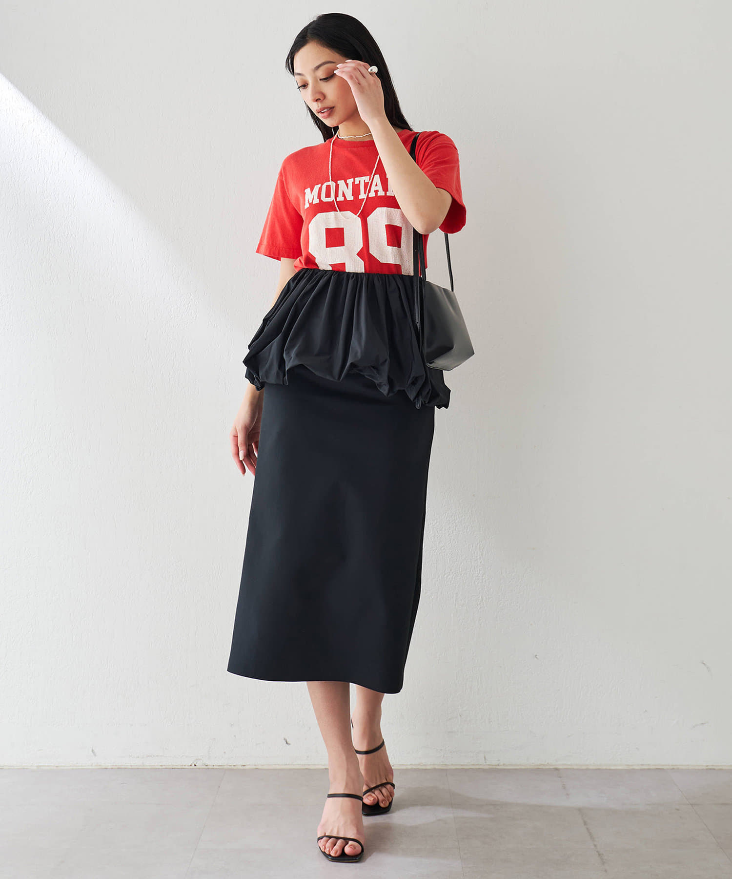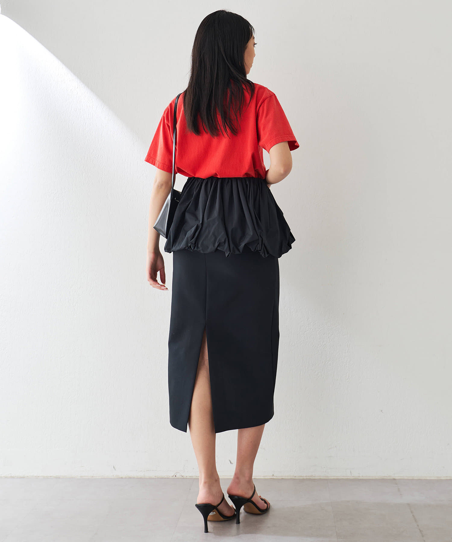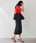 ■タイトスカートにバルーンペプラムがセットになった一着。