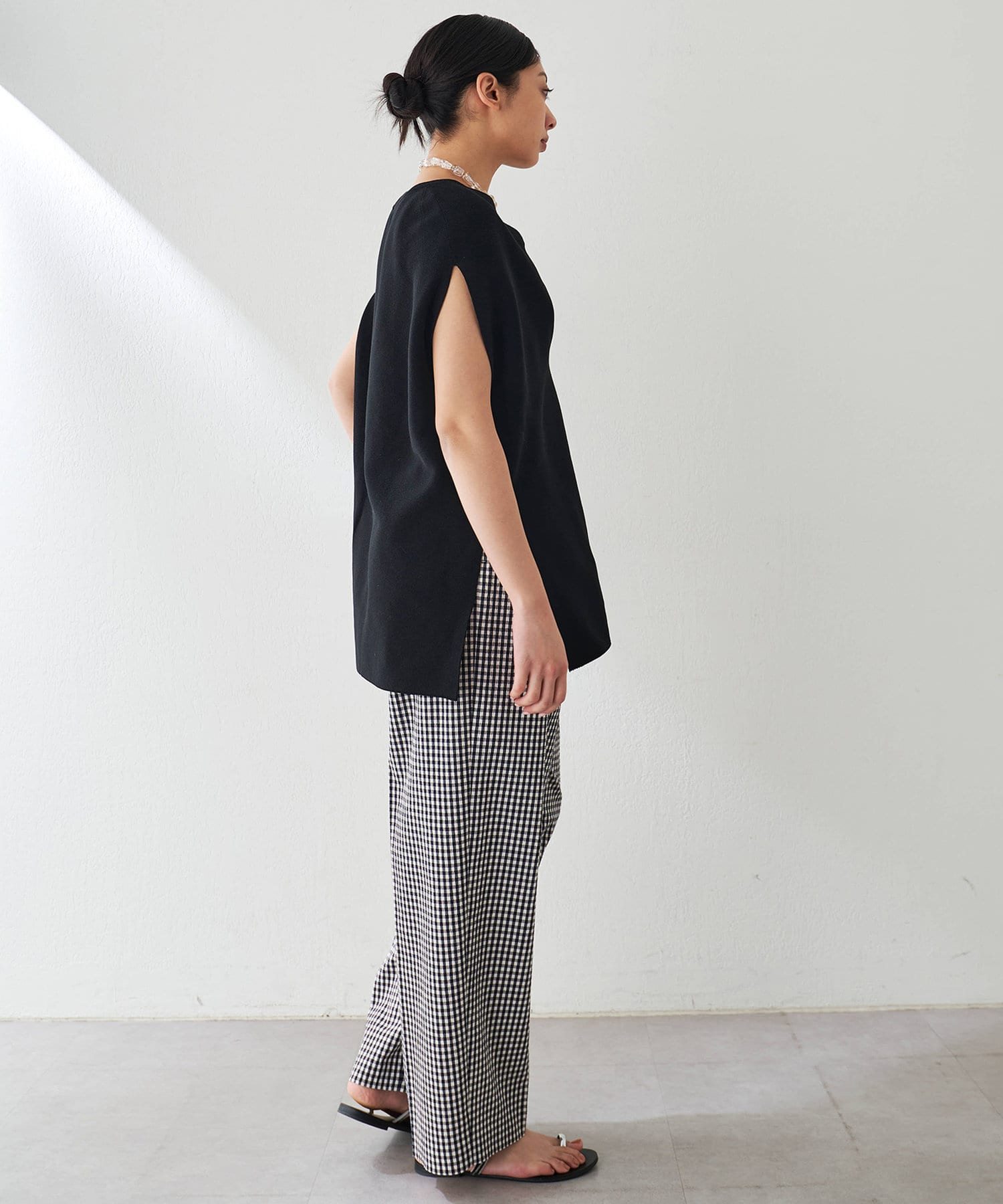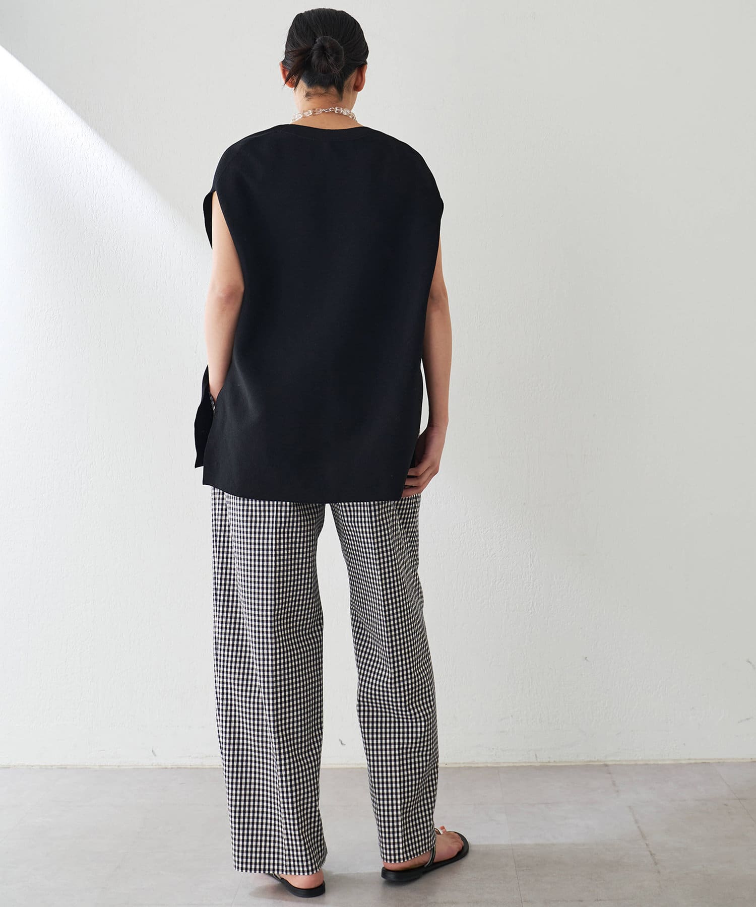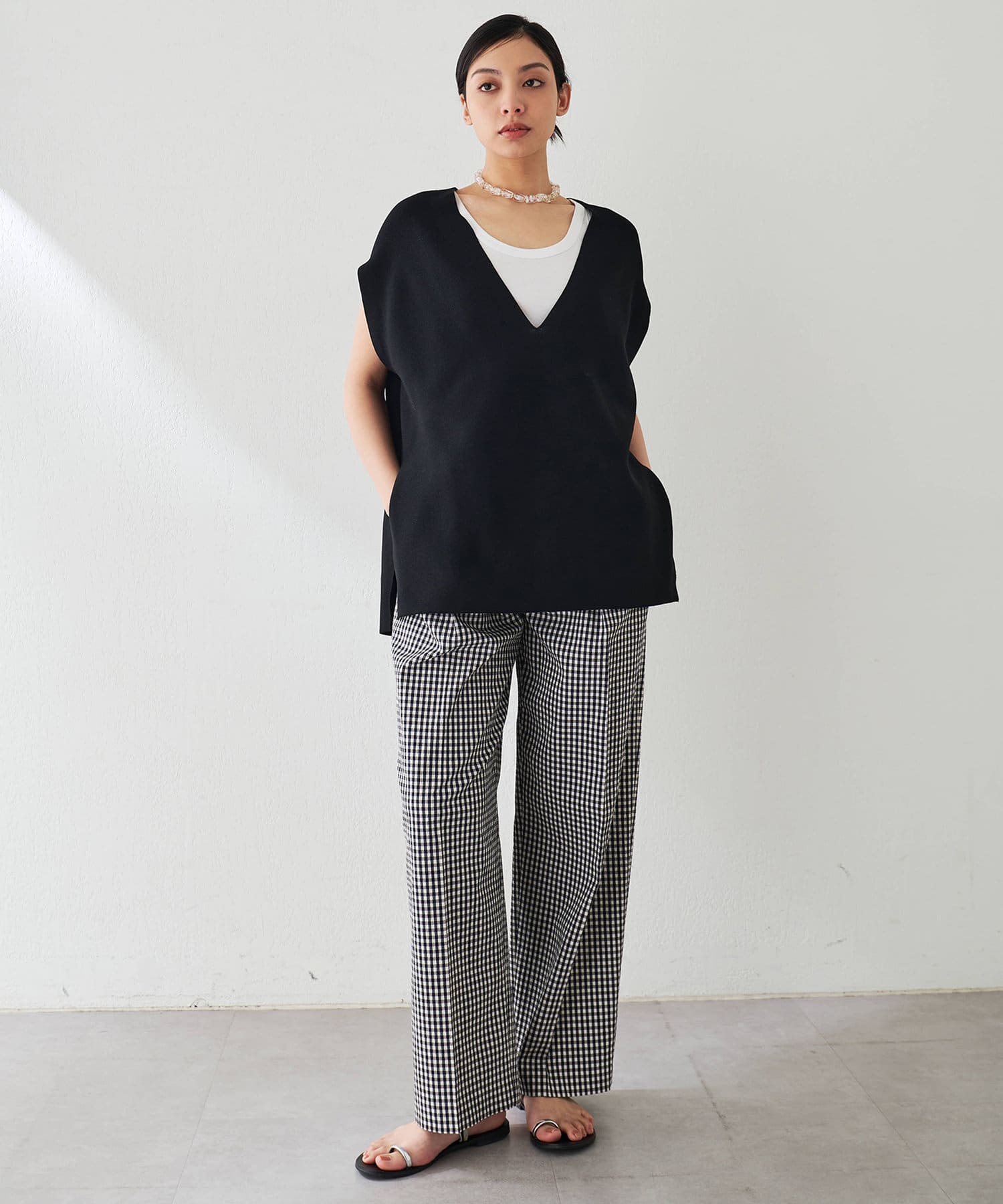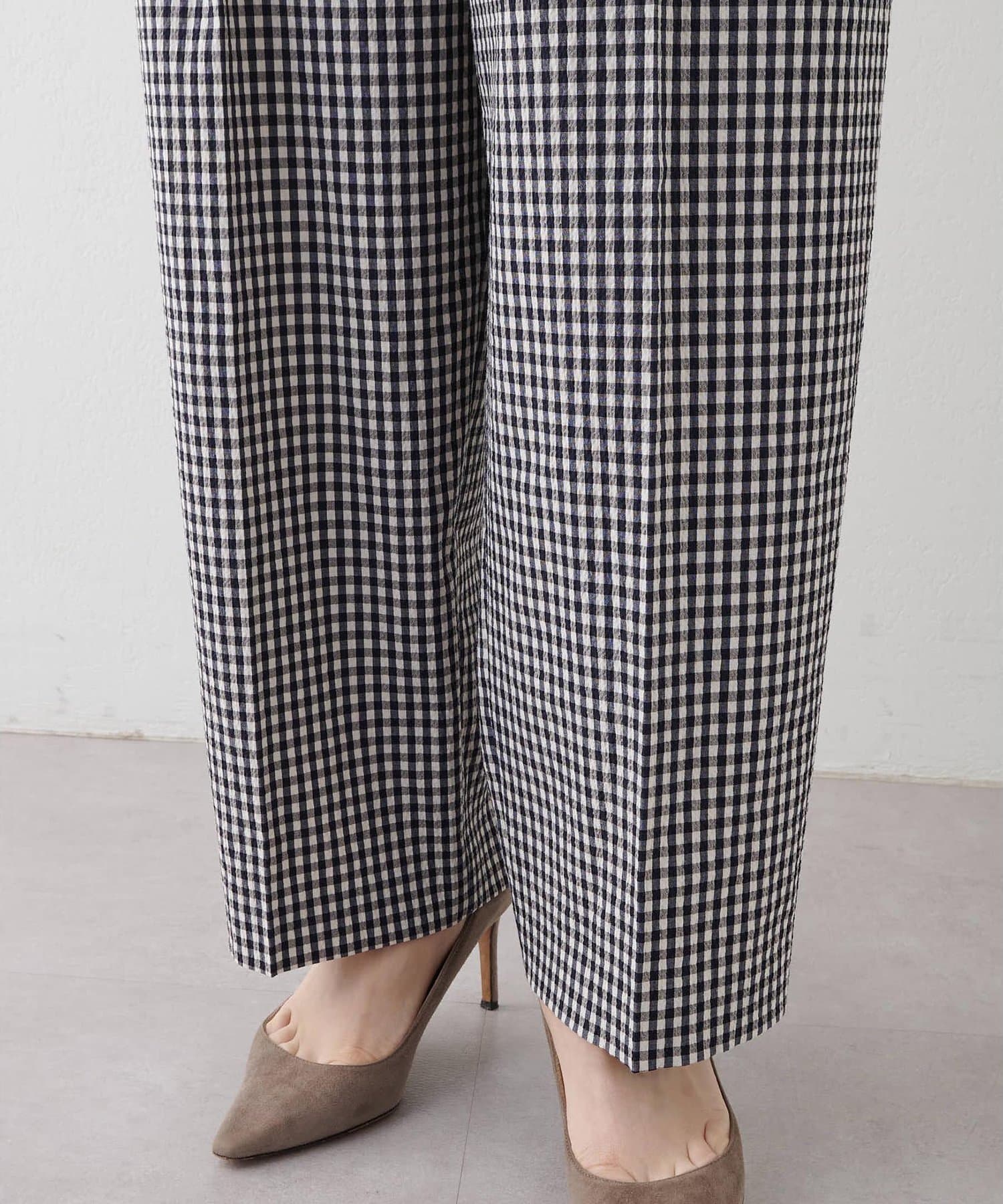 ■ラフな雰囲気のあるギンガムチェック生地もタックパンツ型でこなれた印象に。
