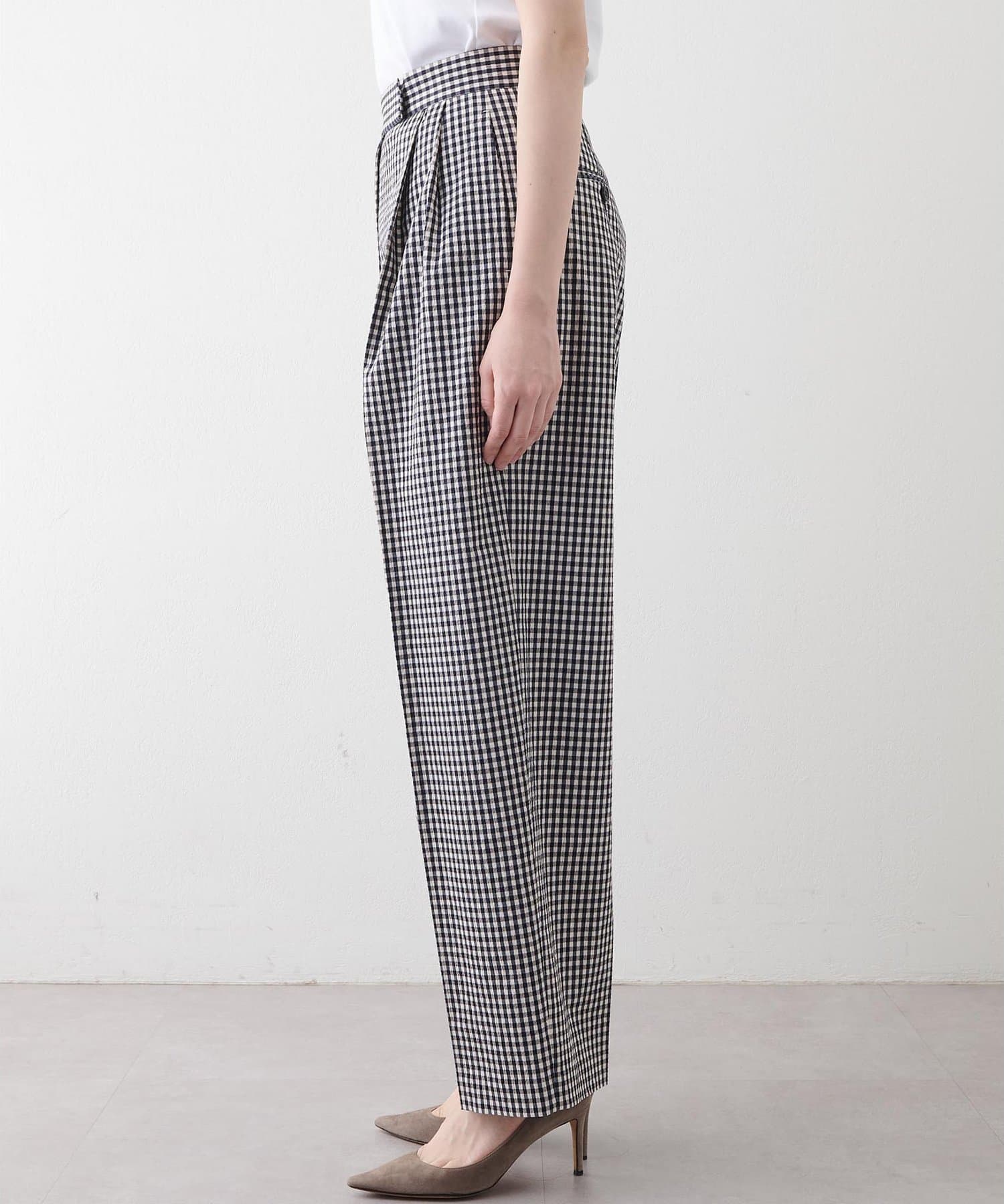 ■細かいギンガムチェック柄と表面感のある風合いが印象的なタックパンツ。