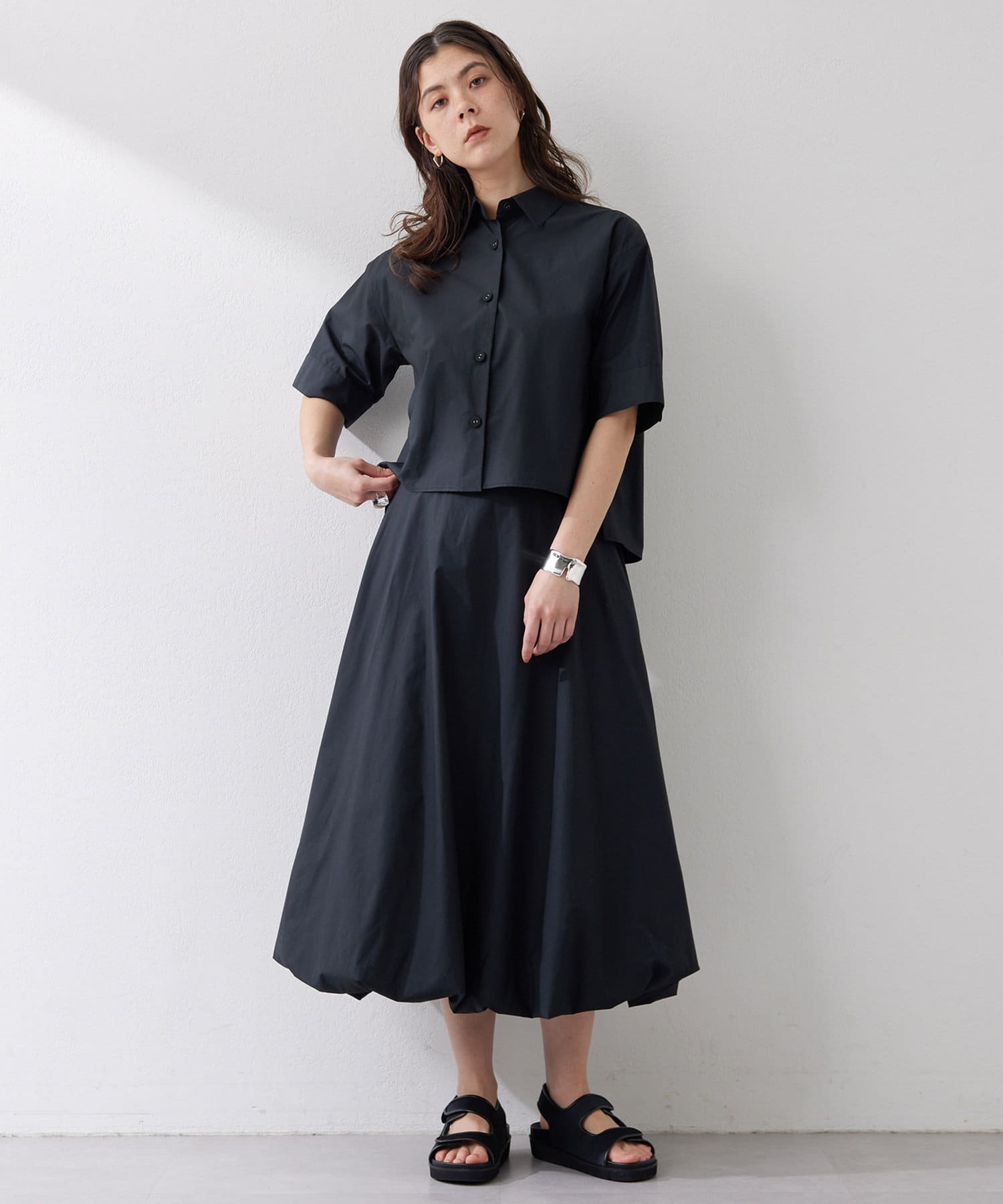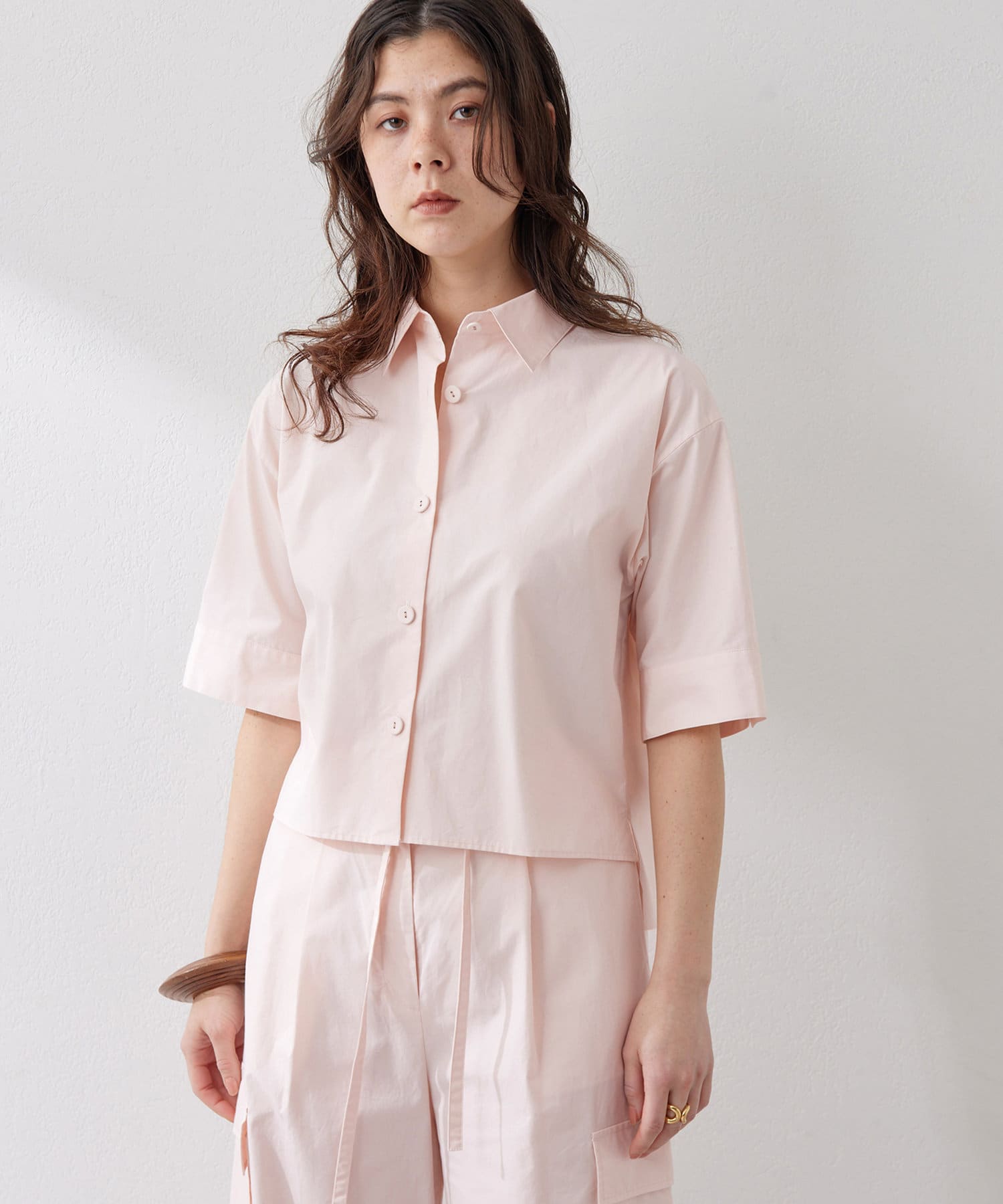 ■程よくゆとりのあるサイズ感と太めの袖が魅力のショート丈シャツ。