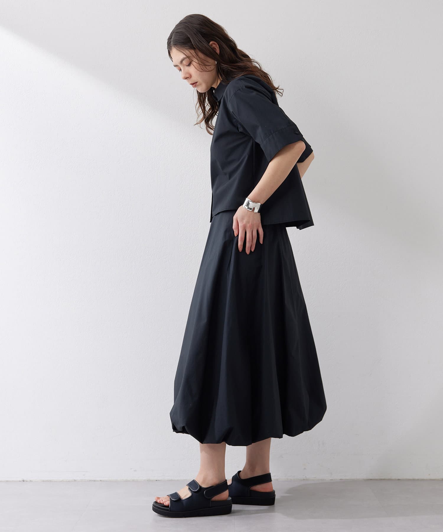 ■同シリーズのスカートやパンツとのセットアップを楽しむのもおすすめ。