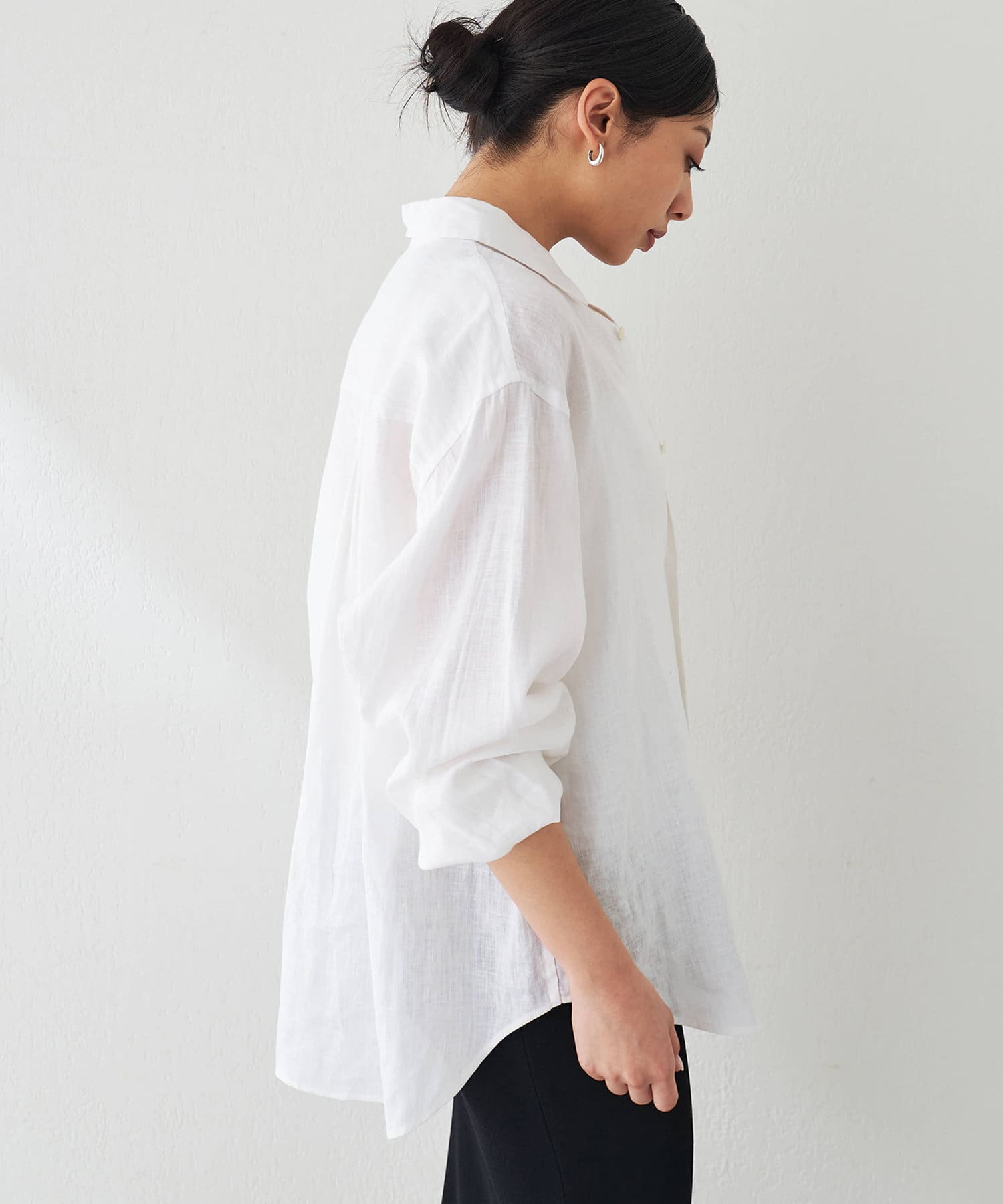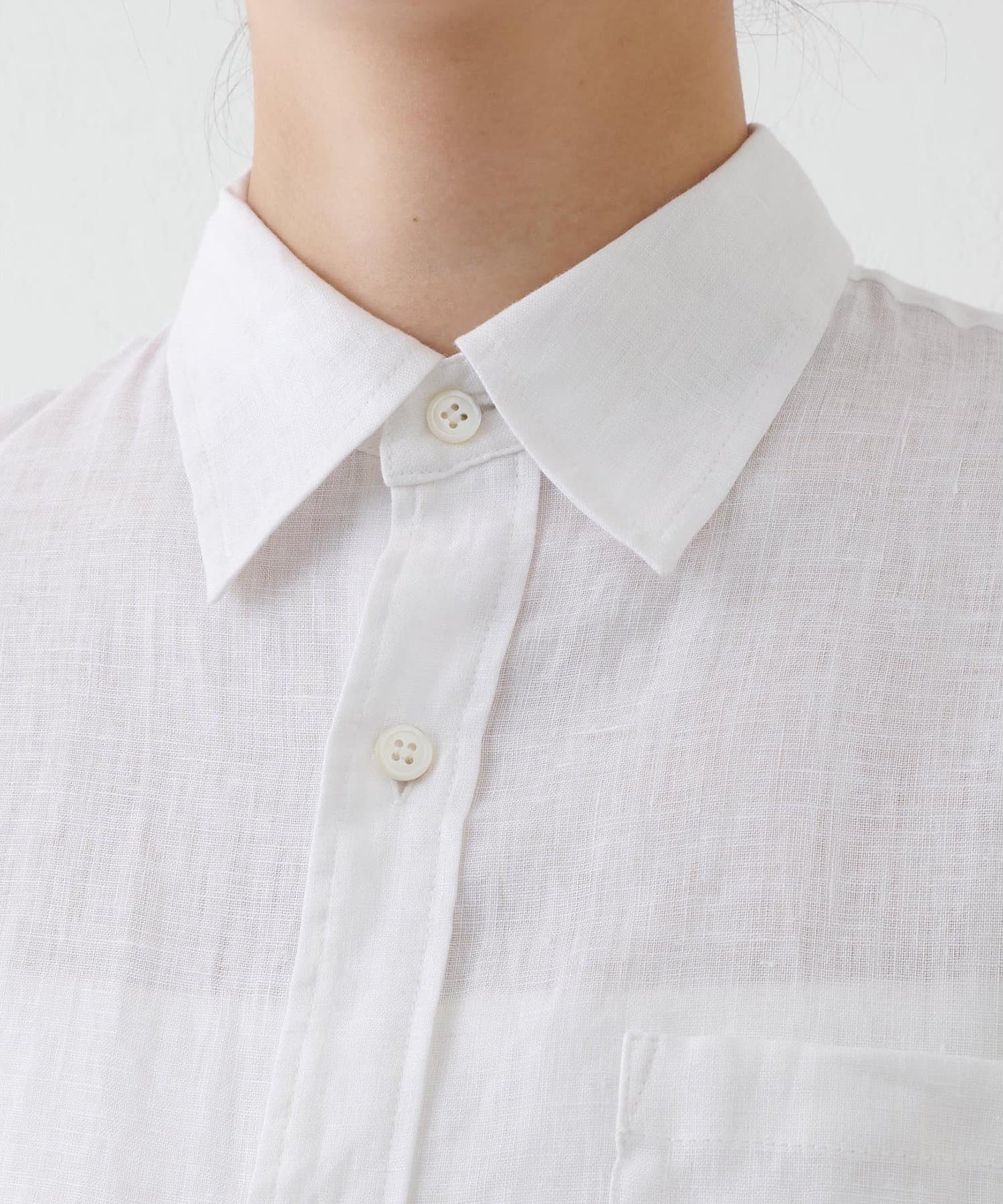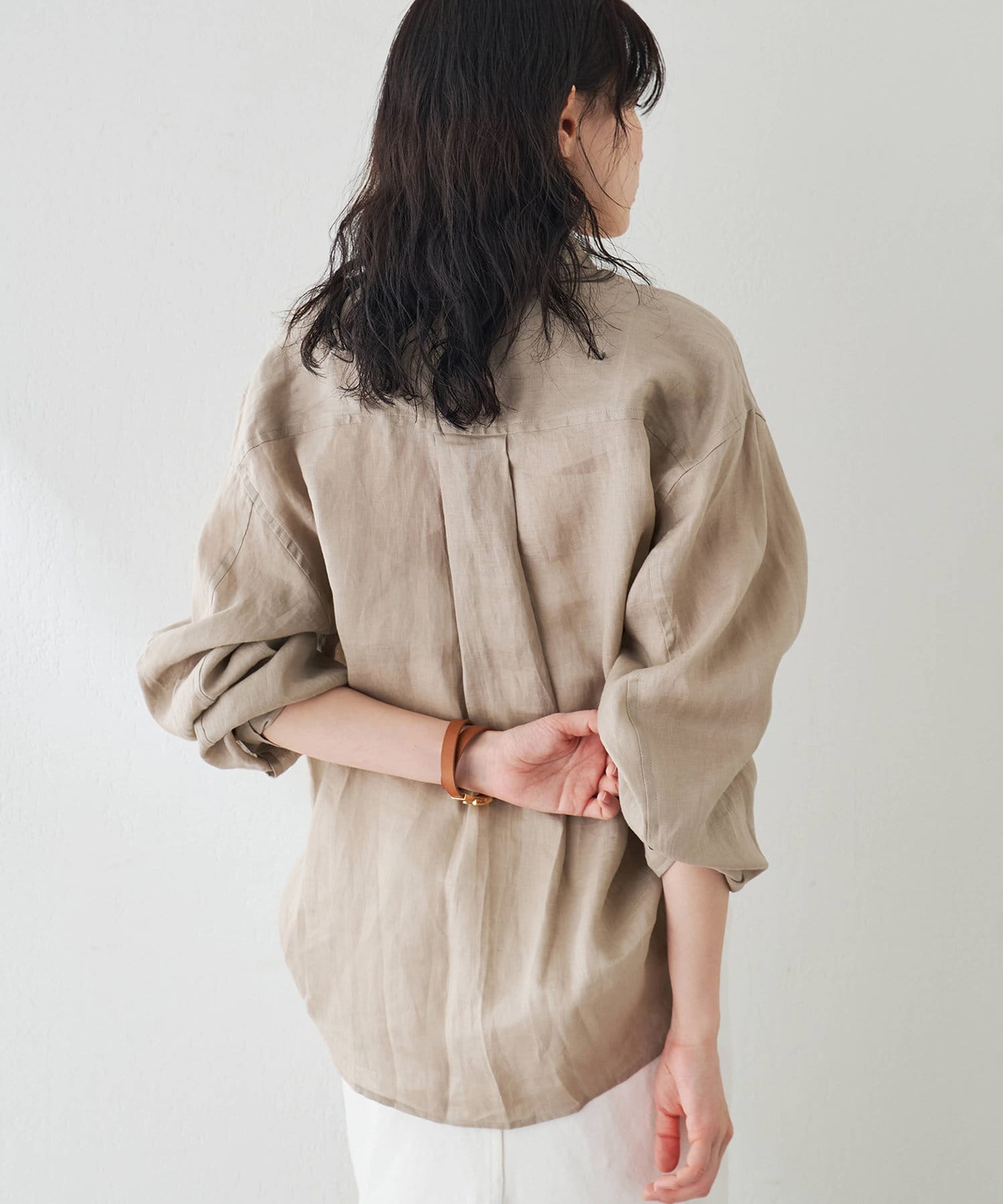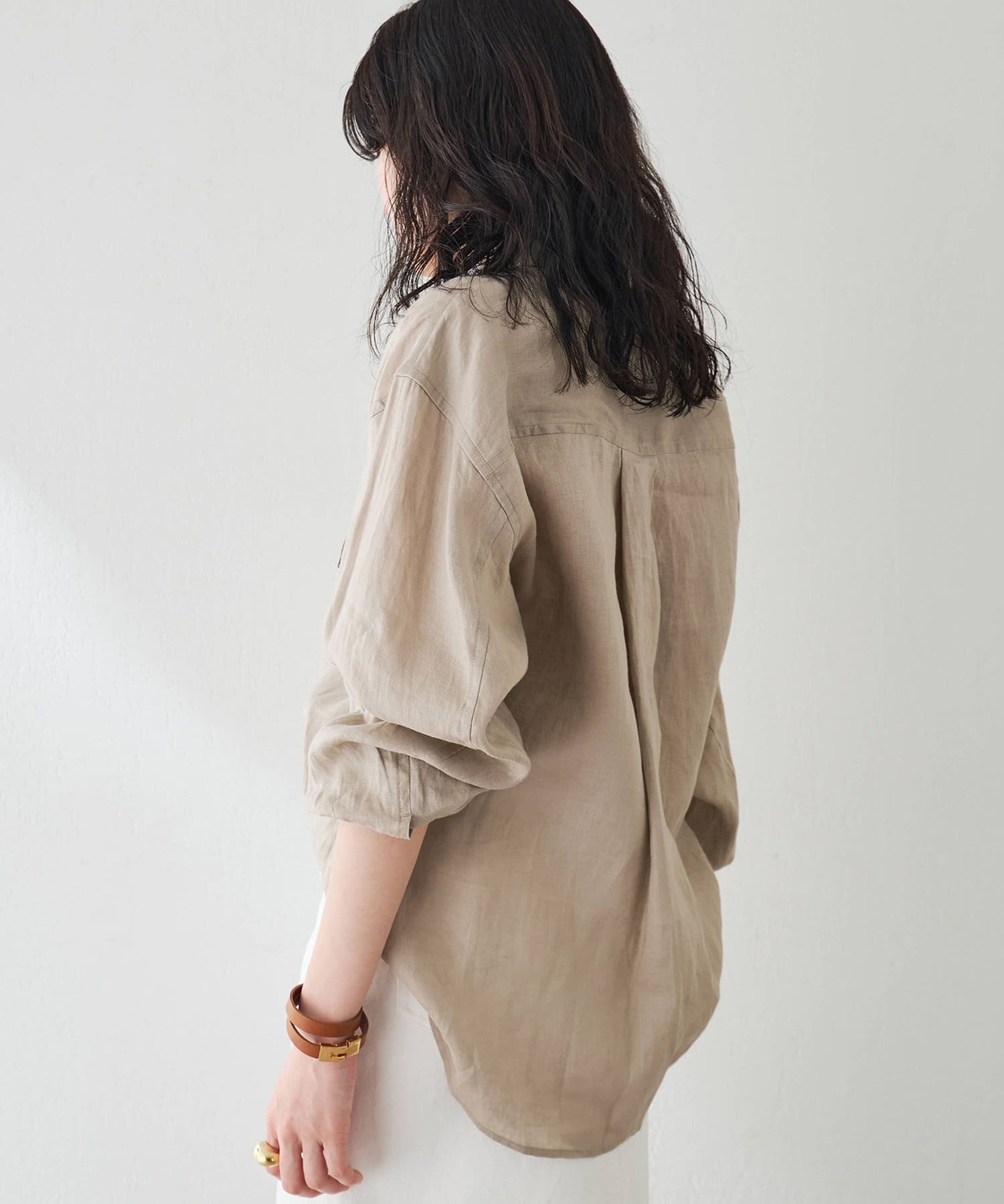 ■天日干しワッシャーのリネンキャンバス生地を使用したシャツ。