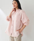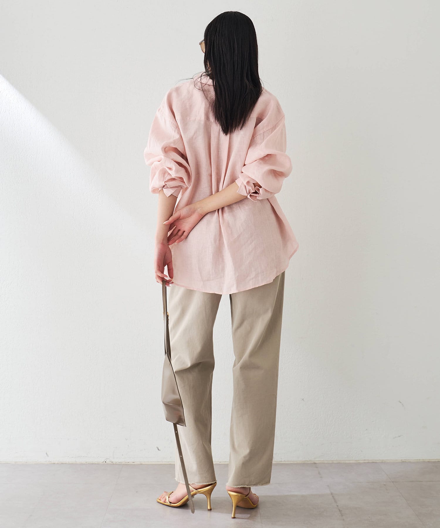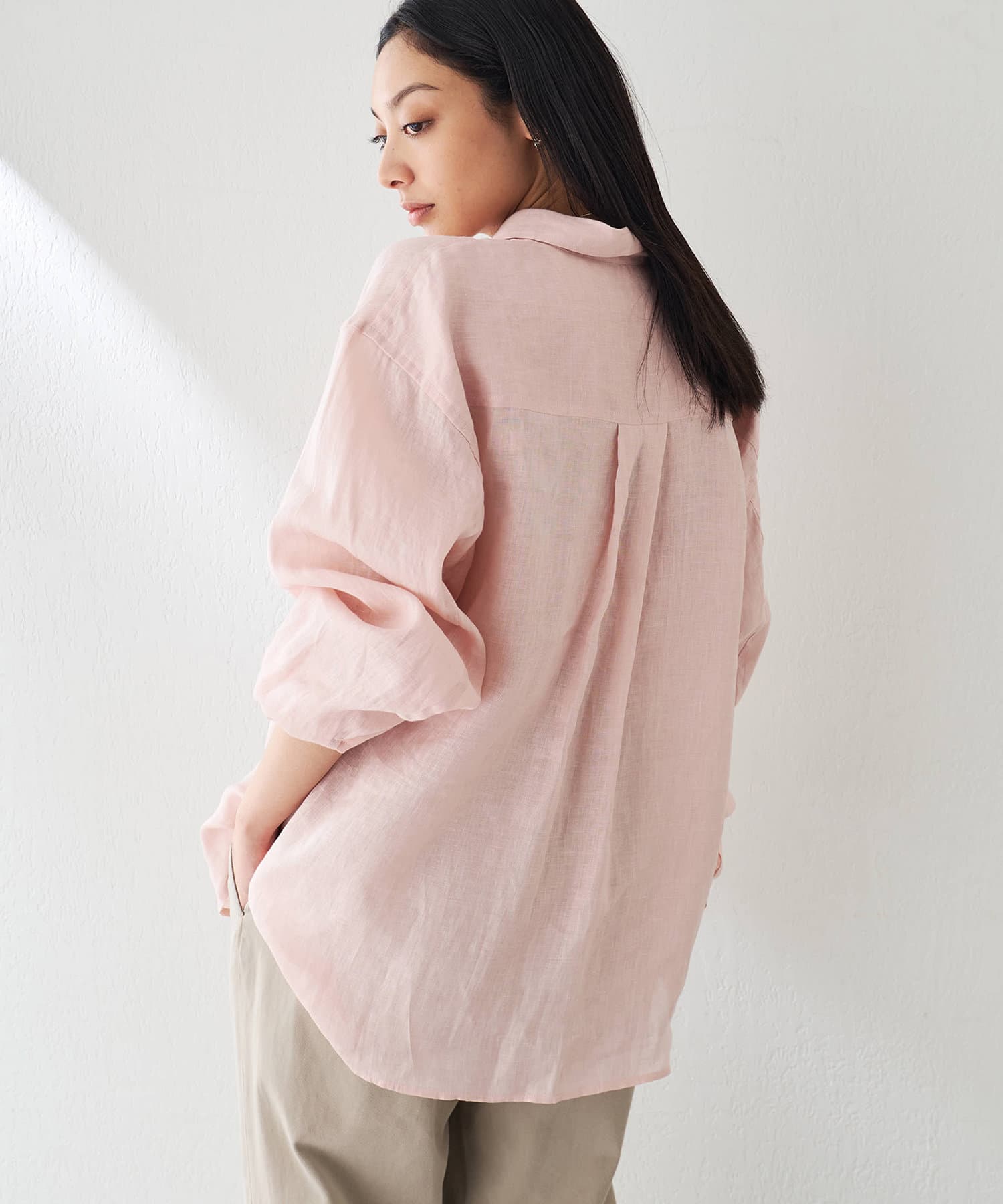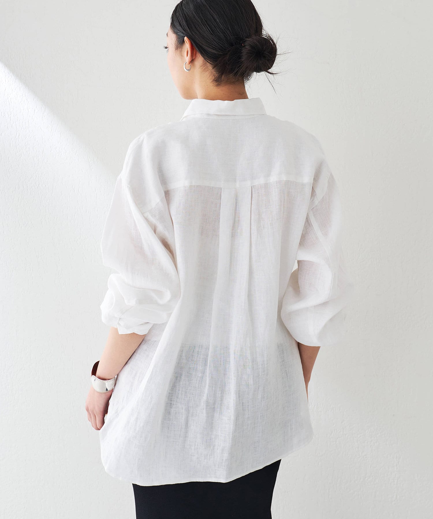 ■天日干しワッシャーのリネンキャンバス生地を使用したシャツ。