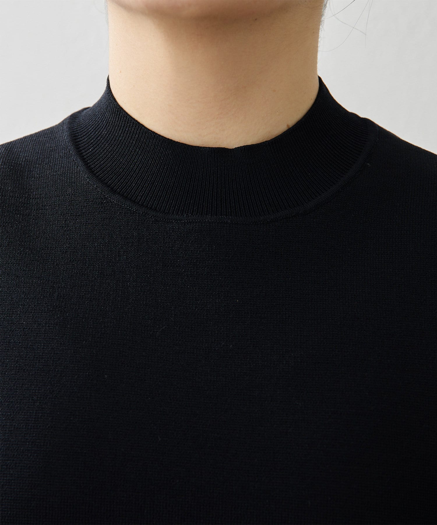 ■首元に沿う程よいハイネックがモードなニュアンスをプラスする一枚。