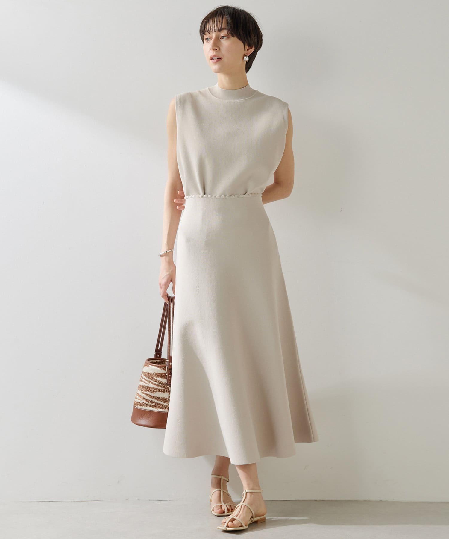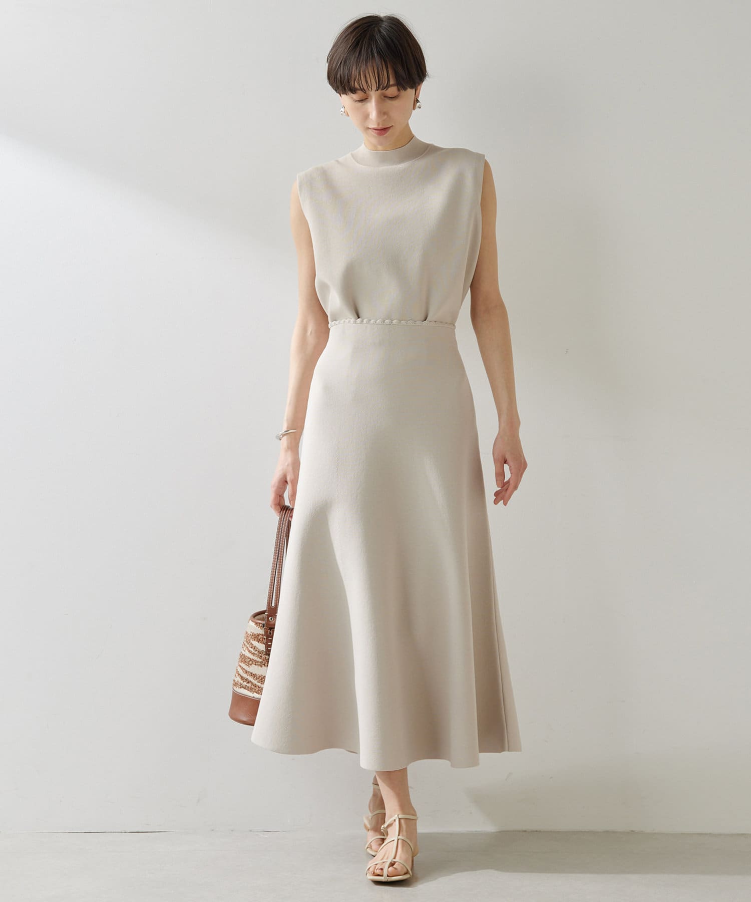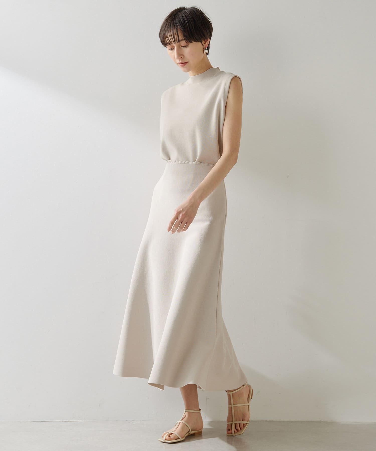 ■同素材のガーターニットフレアスカート(ブランド品番:WGZ1051301A0001)とのセットアップもおすすめ。
