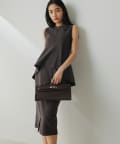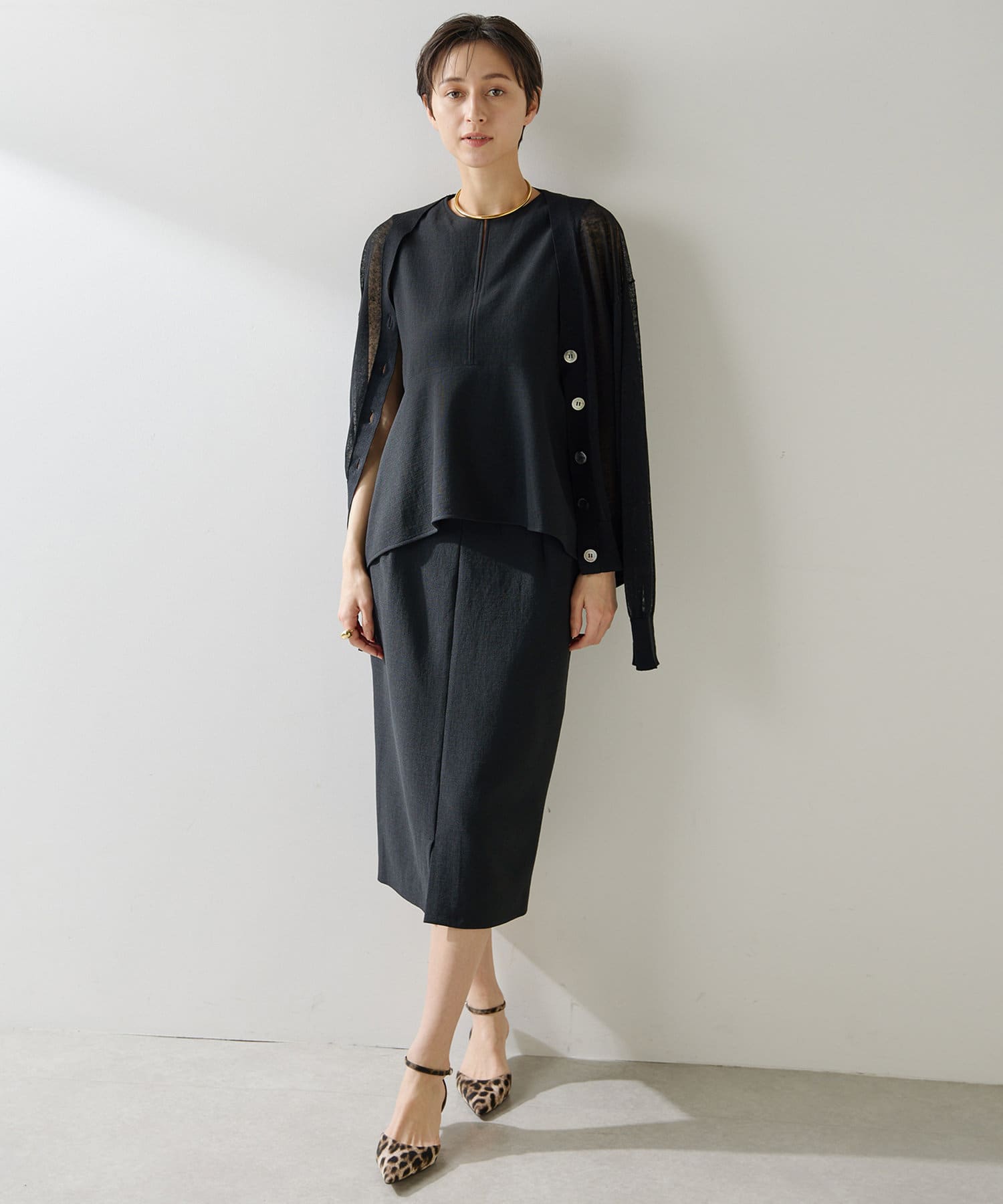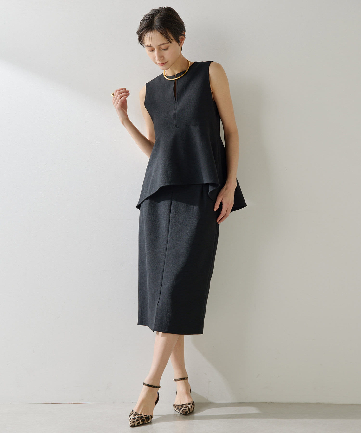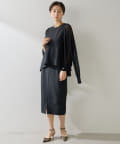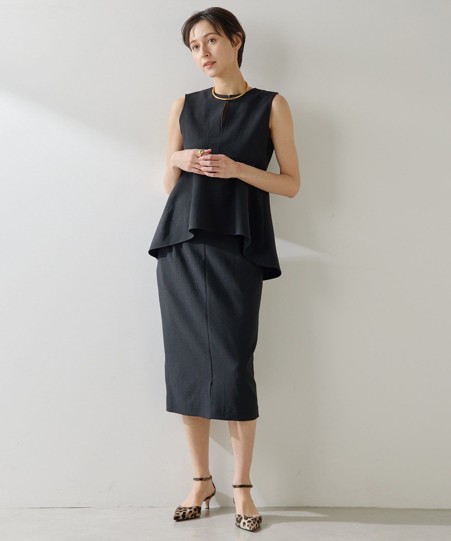 ■同素材のストレッチブッチャーペプラムブラウス(ブランド品番:WGZ1051404A0001)とのセットアップもおすすめ。