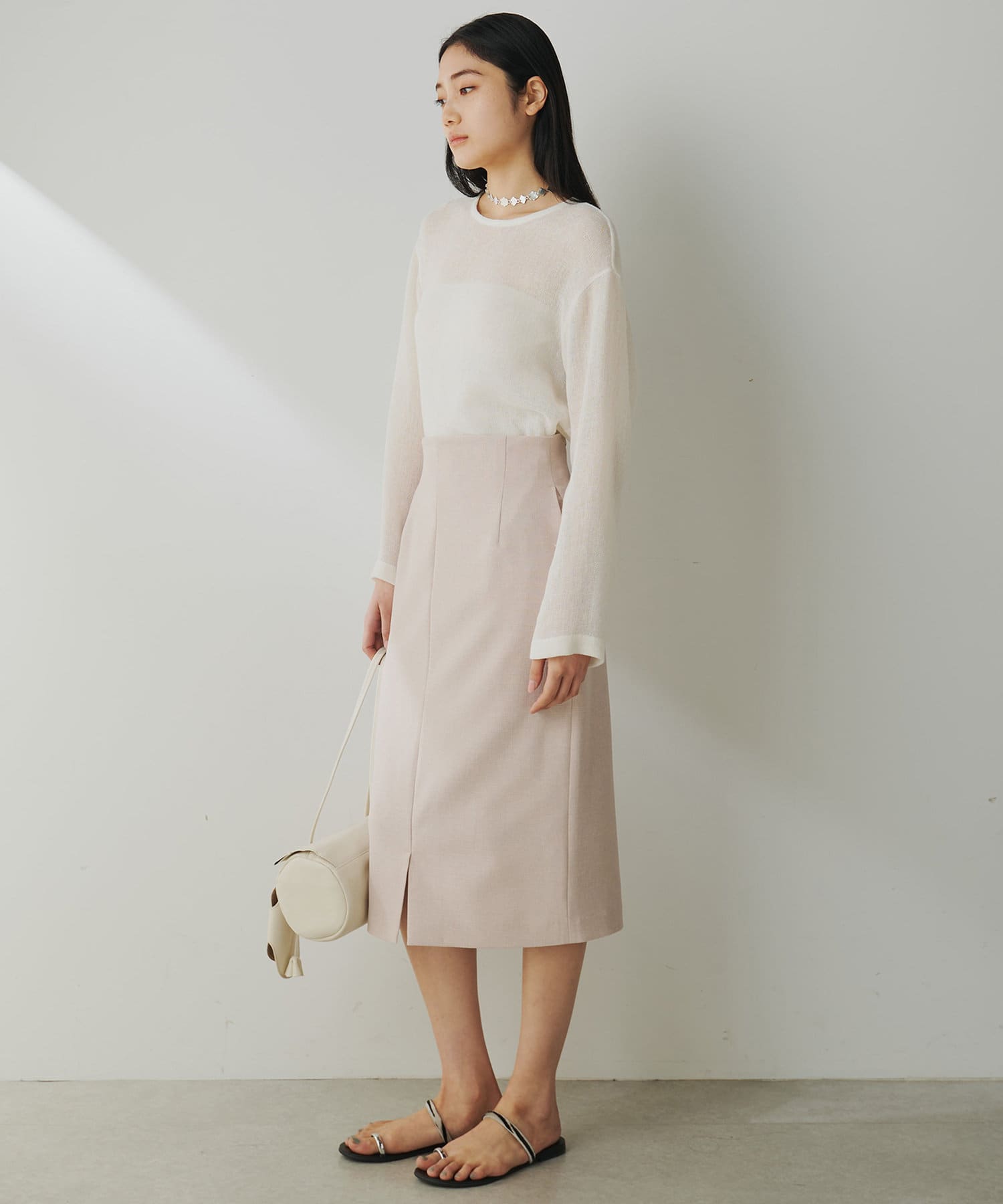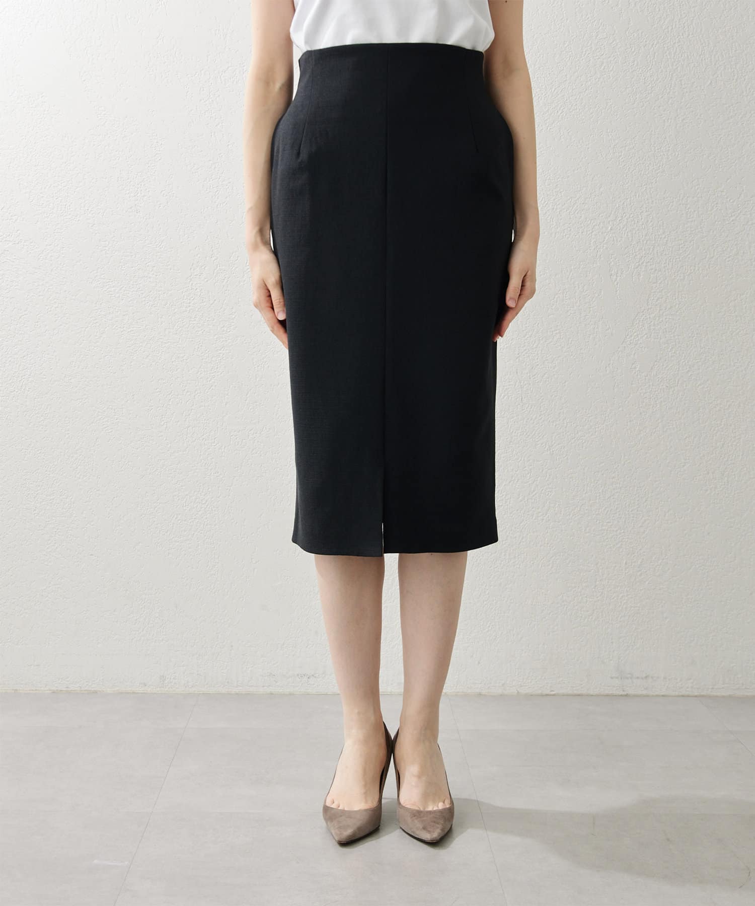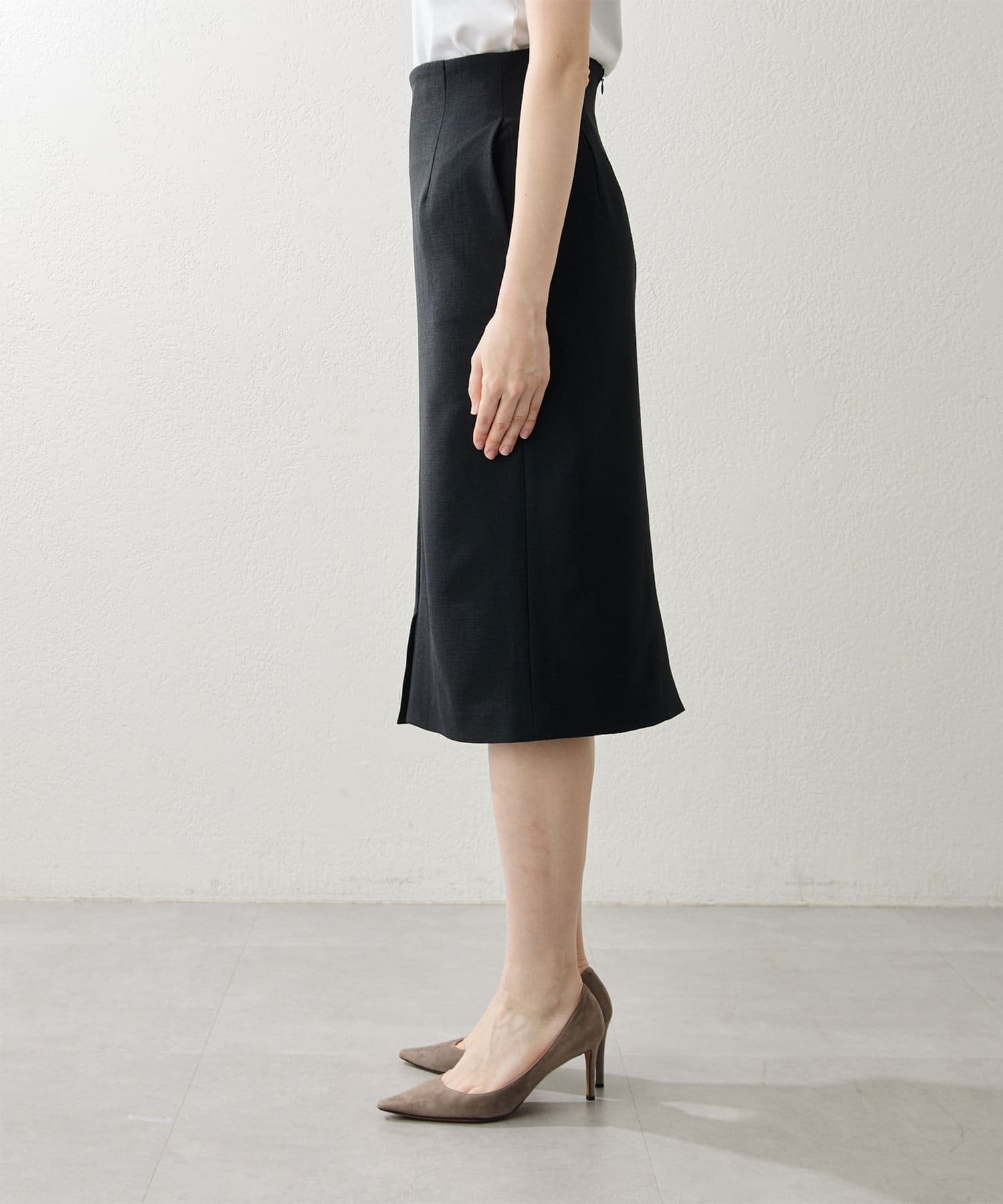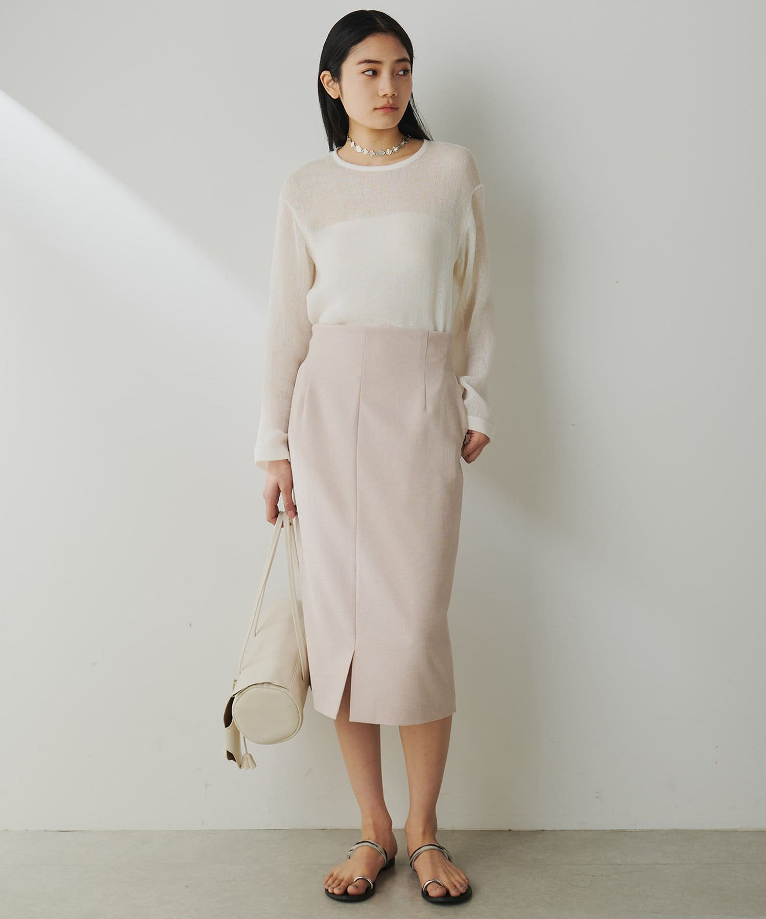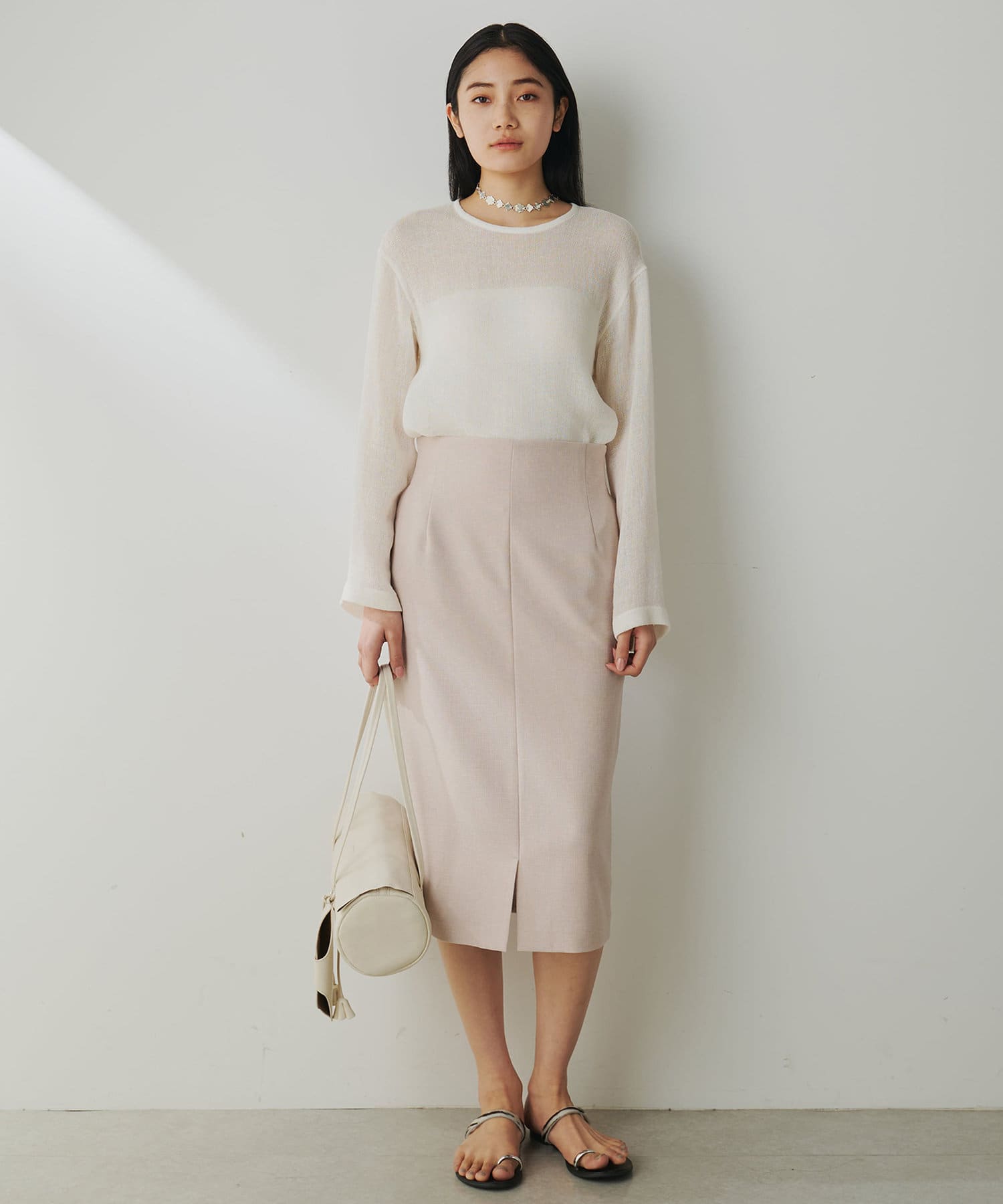 ■ミディ丈が着こなしの鮮度を上げてくれるタイトスカート。