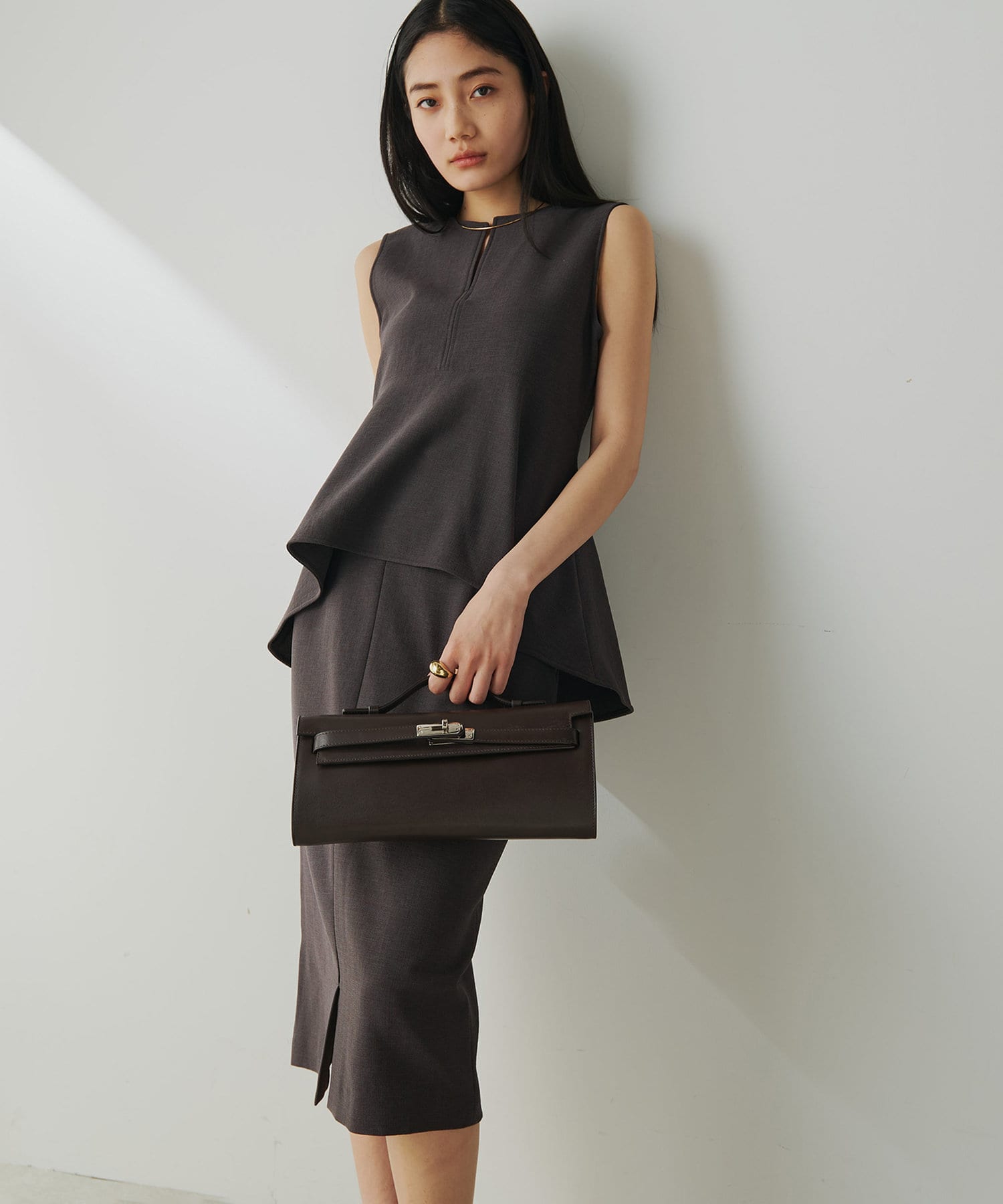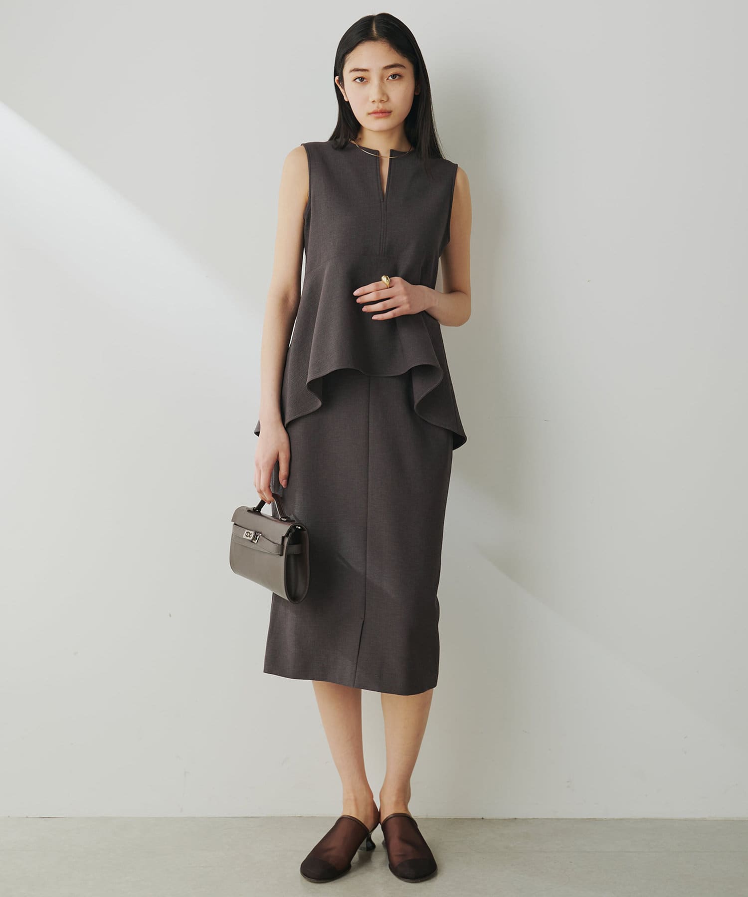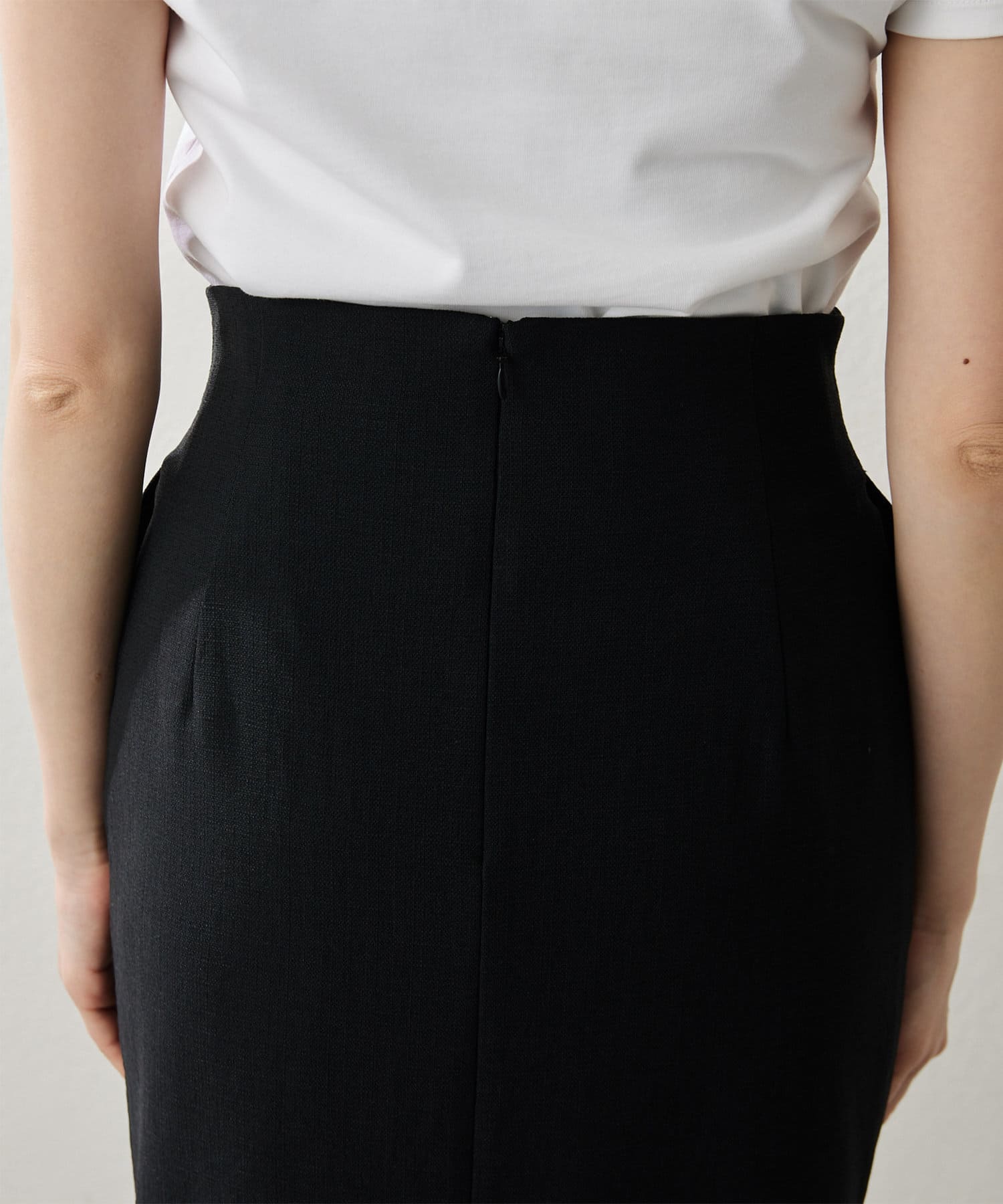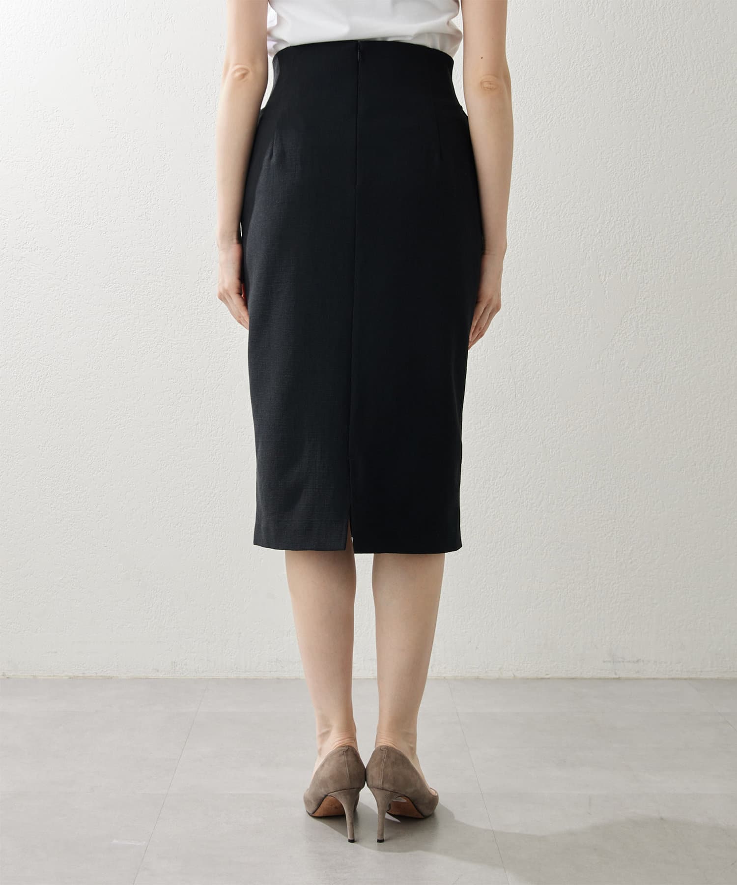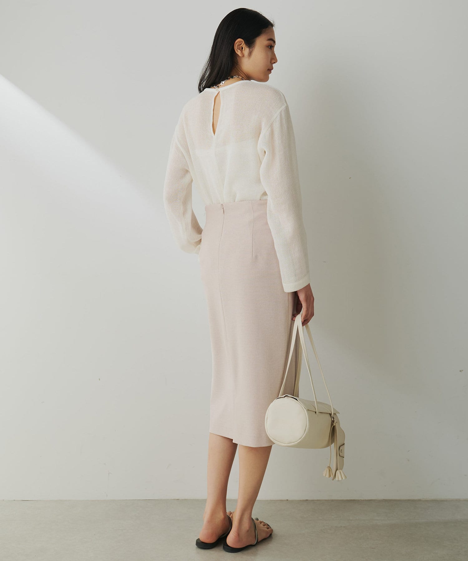 ■ミディ丈が着こなしの鮮度を上げてくれるタイトスカート。